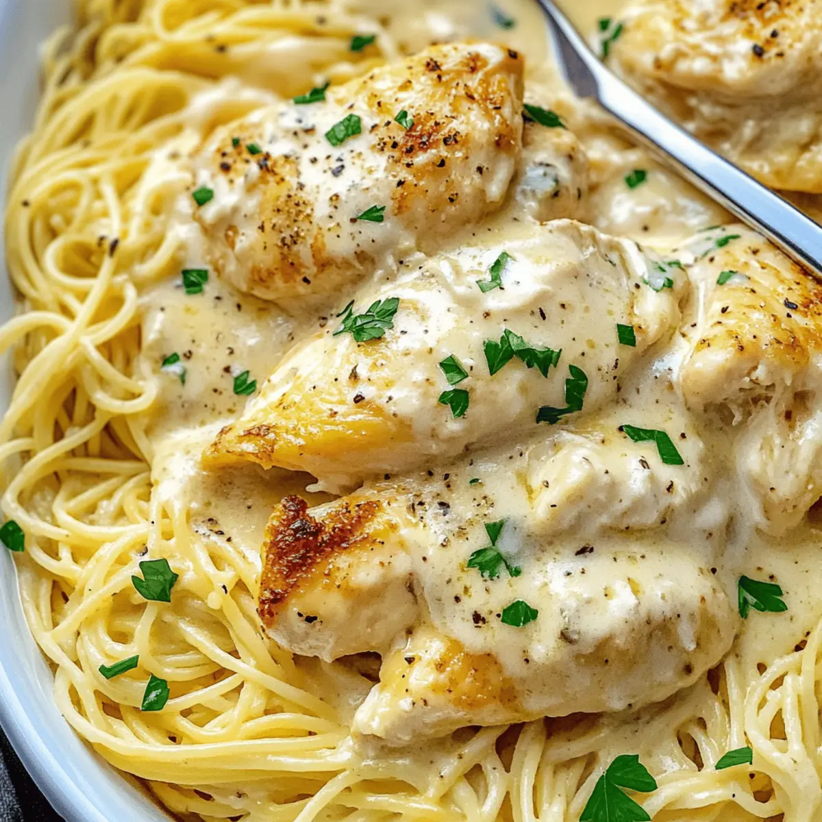 On a chilly evening, nothing warms the soul quite like a bowl of creamy goodness. Enter my Crock Pot Angel Chicken, a slow-cooked sensation that transforms simple chicken into a comforting feast your family will adore. This family-friendly recipe is a lifesaver for busy weeknights, where tender, juicy chicken breasts simmer away in a rich Italian-inspired sauce. What’s even better? It’s low-maintenance—just set it and forget it, allowing you to enjoy your day without the fuss of constant kitchen checks. Serve this delicious dish over angel hair pasta, rice, or mashed potatoes for a satisfying meal that feels like a hug in a bowl. Ready to discover how to make this delightful dish? Let’s dive in! Why is Crock Pot Angel Chicken a Must-Try? Ease of Preparation: This recipe takes just minutes to prepare, then your crock pot does the rest! Simply sear the chicken, mix the creamy sauce ingredients, and you’re set. Crowd-Pleasing Flavor: The rich, creamy sauce infused with Italian herbs will have everyone at the table asking for seconds. Versatile Serving Options: Serve over angel hair pasta, rice, or even mashed potatoes—there’s a perfect base for everyone! Perfect for Busy Nights: Set it in the morning and come home to a heartfelt meal, just like a warm embrace. Leftover Friendly: Enjoy the leftovers for lunch or dinner, making meal prep a breeze for the week! If you love comforting, family-friendly recipes, you might also enjoy Crock Pot Bourbon Chicken or Crock Pot Chicken Gnocchi Soup for more slow-cooked fun! Crock Pot Angel Chicken Ingredients Discover the essentials for creating this comforting dish. For the Sauce Vegetable Oil – Adds fat for searing chicken; olive oil or melted butter work as excellent alternatives. Cream Cheese – Provides creaminess and richness; ensure it’s softened for easier mixing. Unsalted Butter – Adds a nice richness; margarine can be used instead if needed. Cream of Chicken Soup – Forms the base of the sauce; opt for low or no-sodium versions for a healthier twist. Garlic – Fresh garlic gives essential flavor; garlic powder can be used if it’s what’s on hand. Chicken Broth – Enhances the sauce’s flavor; selecting lower sodium varieties is recommended. Dry Italian Salad Dressing Mix – Infuses the dish with Italian seasoning; homemade Italian seasoning is a great substitute. For the Chicken Boneless, Skinless Chicken Breasts – The main protein; about 2 large breasts (1.5 lbs); feel free to substitute with chicken thighs for moistness. For Serving Angel Hair Pasta – The wonderful base for the sauce; any pasta type will work, including fettuccine or linguine. Chopped Fresh Parsley – An optional garnish for a pop of color and freshness. Cracked Pepper or Grated Parmesan Cheese – Optional toppings to elevate flavor and finish the dish beautifully. Get ready to make your Crock Pot Angel Chicken a memorable family favorite! Step‑by‑Step Instructions for Crock Pot Angel Chicken Step 1: Sear the Chicken Start by heating a cast-iron skillet over medium-high heat, then add a splash of vegetable oil. Season both sides of the boneless, skinless chicken breasts generously with salt and pepper. Sear the chicken for 2–3 minutes on each side until golden brown, creating a nice crust. This step adds depth of flavor, ensuring your Crock Pot Angel Chicken is extra delicious. Step 2: Prepare the Sauce In a medium-sized bowl, whisk together the softened cream cheese and unsalted butter until smooth and creamy. Next, incorporate the cream of chicken soup, minced garlic, chicken broth, and dry Italian dressing mix. Stir until everything is fully combined and creamy, creating a luscious base for your Crock Pot Angel Chicken. Step 3: Assemble in the Crock Pot Spray the interior of your crock pot with non-stick cooking spray to prevent sticking. Carefully place the seared chicken breasts at the bottom of the pot. Pour the prepared creamy sauce mixture over the chicken, ensuring it’s well coated. This combination will simmer beautifully, creating a rich and comforting dish. Step 4: Cook the Chicken Cover the crock pot with its lid and set it to cook on LOW for 3–4 hours, allowing the flavors to meld. Keep an eye on the time, ensuring the chicken reaches an internal temperature of 165°F—this guarantees both safety and tenderness. Avoid cooking on high heat for the best texture! Step 5: Cook the Pasta About 10 minutes before serving, boil a pot of water and cook the angel hair pasta according to the package instructions until it reaches al dente. Drain the pasta well, setting it aside. This soft and delicate pasta will pair perfectly with your creamy Crock Pot Angel Chicken. Step 6: Serve and Garnish When ready to serve, carefully remove the chicken from the crock pot and either leave it whole or shred it. Place the tender chicken over the angel hair pasta and drizzle with the rich sauce. Garnish with chopped fresh parsley, cracked pepper, or grated Parmesan cheese for an added burst of flavor. Enjoy your comforting meal! Make Ahead Options Crock Pot Angel Chicken is an ideal choice for meal prep enthusiasts seeking to streamline their weeknight cooking! You can marinate and sear the chicken breasts up to 24 hours in advance, storing them in the fridge to maintain juiciness. Additionally, the creamy sauce can be whisked together and refrigerated for up to 3 days. When you’re ready to enjoy this comforting meal, simply place the prepped chicken in your slow cooker, pour the refrigerated sauce over it, and cook on LOW for 3-4 hours. This way, you’ll preserve the rich flavor and ensure the chicken is just as tender and delicious as if you had prepared it all at once. Enjoy the convenience and taste of homemade comfort on busy nights! Crock Pot Angel Chicken Variations Feel free to let your culinary creativity shine as you customize this delicious recipe to suit your taste! Thighs Instead of Breasts: Use chicken thighs for a juicier, 