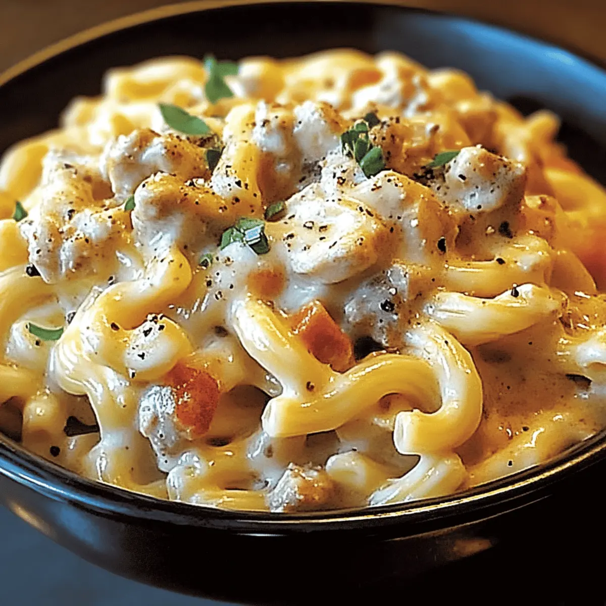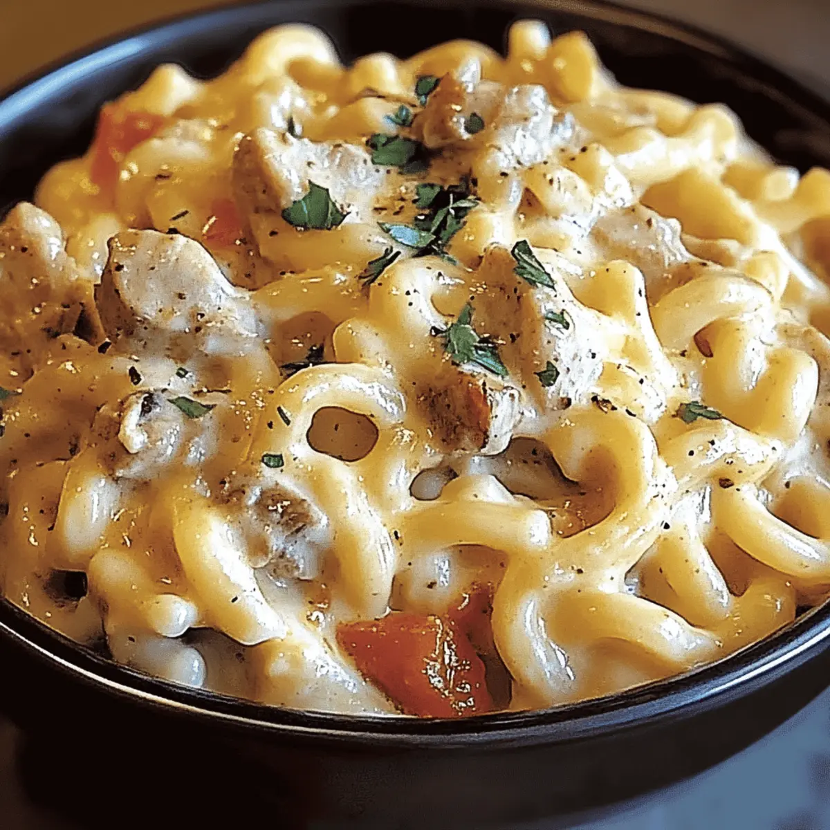 As I walked through the kitchen, the rich aroma of garlic mingled with creamy Parmesan seeped through the air, wrapping me in a warm hug of comfort. There’s something incredibly satisfying about preparing a meal like Crockpot Garlic Parmesan Chicken Pasta—a dish that’s not only effortless but also dishes out a burst of flavor that rivals any restaurant dish. This easy weeknight dinner transforms ordinary ingredients into an extraordinary experience, perfect for those hectic evenings when you crave a hearty meal without spending hours in the kitchen. Whether you’re gathered around the table with family or simply treating yourself, this comforting recipe promises juicy chicken and silky pasta enveloped in a dreamy sauce. Are you ready to bring this comforting classic to your dinner table? Why is this recipe a must-try? Flavor Explosion: This dish offers a delightful fusion of rich garlic and Parmesan that will leave your taste buds singing. Time-Saving Delight: With minimal prep and the slow cooker doing all the work, you’ll have time to unwind while dinner simmers. Adaptable Ingredients: Feel free to use chicken thighs for a richer flavor or opt for gluten-free pasta to suit dietary needs. Crowd-Pleasing Comfort: Perfect for family gatherings or cozy nights in, this comforting meal is sure to impress everyone at the table. Serve with Ease: Pair with a crisp green salad or garlic bread for a full-flavored meal that feels elevated yet remains effortless, just like my Garlic Roasted Chicken or Crockpot Chicken Gnocchi. Crockpot Garlic Parmesan Chicken Pasta Ingredients For the Chicken and Sauce • Boneless, Skinless Chicken Breasts – The main protein source; can substitute with chicken thighs for a richer flavor. • Garlic Powder – Adds depth of flavor; fresh minced garlic may enhance the aroma and freshness. • Onion Powder – Adds sweetness and complexity; optional if preferring a more straightforward garlic flavor. • Black Pepper – Provides subtle heat; adjust to your spice preference. • Salt – Essential for seasoning; use to taste, considering broth saltiness. • Chicken Broth – Provides moisture and flavor; substitute with vegetable broth for a lighter option. • Grated Parmesan Cheese – Key for the creamy sauce; use fresh for the best melt and taste. • Cream Cheese – Creates a rich, creamy texture; alternatives include mascarpone or ricotta. • Minced Garlic – Adds robust flavor; use more for a stronger garlic profile. For the Pasta • Pasta (Penne, Rotini) – Acts as the base; choose gluten-free pasta for dietary needs. • Heavy Cream or Half-and-Half – Provides creaminess and prevents sauce from curdling; milk can also be used for a lighter version. For the Finish • Chopped Parsley or Extra Parmesan – Optional garnish for added freshness and presentation. Bringing this Crockpot Garlic Parmesan Chicken Pasta to life will fill your home with cozy vibes and satisfy your cravings! Step‑by‑Step Instructions for Crockpot Garlic Parmesan Chicken Pasta Step 1: Prepare the Chicken Begin by placing the boneless, skinless chicken breasts in the bottom of your crockpot. Season them with garlic powder, onion powder, salt, and black pepper, ensuring an even coat. This combination will infuse the chicken with rich flavors, setting a delicious foundation for your Crockpot Garlic Parmesan Chicken Pasta. Step 2: Add the Broth and Cheeses Pour in the chicken broth over the seasoned chicken, allowing it to seep through the layers. Next, sprinkle the grated Parmesan cheese, dollop the cream cheese, and add the minced garlic atop the chicken. This creates a creamy, flavorful sauce as it cooks, transforming your dish into a comforting masterpiece. Step 3: Set the Cooking Time Cover the crockpot with its lid and set it to cook on low for 4-5 hours or on high for 2-3 hours. As it cooks, aromas of garlic and cheese will fill your kitchen, and the chicken will become tender and juicy. You’ll know it’s ready when the chicken easily shreds with a fork. Step 4: Shred the Chicken Once the cooking time is complete, carefully remove the lid. Using two forks, shred the chicken right in the crockpot, stirring it into the creamy sauce. This step is essential for incorporating the flavors of the Crockpot Garlic Parmesan Chicken Pasta, creating a deliciously unified dish. Step 5: Cook the Pasta While the chicken cooks, prepare your pasta separately according to the package instructions. Choose a shape like penne or rotini, and drain once al dente. Cooking the pasta separately ensures it maintains a perfect texture, avoiding any sogginess in your finished dish. Step 6: Combine the Pasta and Sauce Add the cooked, drained pasta into the crockpot, mixing it gently with the shredded chicken and creamy sauce. Stir until the pasta is well coated in the rich garlic Parmesan mixture, ensuring every bite of your Crockpot Garlic Parmesan Chicken Pasta is flavor-packed and satisfying. Step 7: Add the Cream To enhance the creaminess, stir in heavy cream or half-and-half until the pasta is luxuriously coated. This final step adds richness that elevates the entire dish, giving it that delightful, velvety finish that pairs beautifully with the savory chicken. Step 8: Serve and Garnish Once everything is combined, serve your sumptuous Crockpot Garlic Parmesan Chicken Pasta warm. For a touch of freshness, garnish with chopped parsley or an extra sprinkle of Parmesan cheese. Enjoy the comforting flavors that this dish brings to your dinner table! Crockpot Garlic Parmesan Chicken Pasta Variations Feel free to get creative with this recipe and make it your own with these delightful adaptations! Chicken Thighs: Use chicken thighs instead of breasts for a juicier, richer flavor that enhances the overall dish. Vegetable Boost: Add in fresh spinach or peas during the last hour of cooking for an extra burst of color and nutrients. Greek Yogurt: Swap cream cheese for Greek yogurt for a lighte