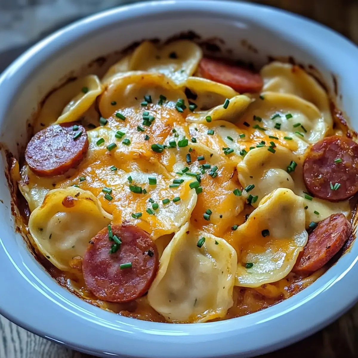 Facebook Twitter Pinterest LinkedInAs I stirred the bubbling cauldron of my slow cooker, the rich, smoky scent of kielbasa mingled with the creamy aroma of mushroom soup, instantly transporting me to my grandmother’s kitchen. There’s something magical about making a Crockpot Pierogi Casserole with Kielbasa that brings comfort and warmth to your home. This dish is the perfect answer for those busy weeknights when you crave hearty Eastern European cuisine without spending hours in the kitchen. Easy to prepare and utterly satisfying, it transforms humble ingredients into a crowd-pleaser for the entire family. With just a few layers and a sprinkle of cheese to keep things cozy, dinner has never been so delightful! Are you ready to join me in creating this scrumptious, effortless meal? Why is this casserole a must-try? Ease of Preparation: This Crockpot Pierogi Casserole is your ticket to turning simple ingredients into a hearty meal without fuss. Just layer and let the slow cooker do the work! Rich, Comforting Flavors: With smoky kielbasa and creamy mushroom sauce, every bite is a nostalgic hug for your taste buds. It’s a dish that delivers warmth and satisfaction in every serving. Family-Friendly Appeal: Even picky eaters will love this delicious casserole! Perfect for family dinners or gatherings, it’s sure to be a hit around the table. Versatile Variations: Feel free to mix things up! Whether adding veggies or opting for low-fat alternatives, the adaptability means everyone can enjoy their own twist. Make-Ahead Convenience: Prep this meal ahead of time and enjoy a stress-free dinner option. Just reheat and serve for a delightful meal that tastes like it took hours to prepare. You might also enjoy pairing it with a side of Southern Squash Casserole for an added layer of comfort! Crockpot Pierogi Casserole with Kielbasa Ingredients Get ready for a cozy meal! For the Casserole Frozen Pierogi – The base of the dish; these ready-made dumplings save time while providing great texture. Kielbasa – A flavorful sausage that adds a hearty twist; feel free to substitute with smoked sausage or bratwurst if you prefer. Sour Cream – Adds a creamy, tangy flavor that balances the richness; Greek yogurt works as a healthier alternative. Onion – Infuses the dish with sweet and aromatic flavors; consider using shallots for a milder touch. Condensed Cream of Mushroom Soup – The creamy heart of the casserole; cream of chicken or celery soup can be swapped in. Shredded Cheddar Cheese – Provides a gooey, cheesy layer; any melting cheese, like Monterey Jack, would be delicious too. Butter – Enriches the dish; omit for a lighter version or use olive oil for a healthier touch. Salt and Pepper – Key for enhancing flavors; be sure to adjust them to suit your taste. Chives – A fresh garnish to brighten the dish; you can replace them with parsley if chives aren’t available. Step‑by‑Step Instructions for Crockpot Pierogi Casserole with Kielbasa Step 1: Prepare the Crockpot Start by spraying the inside of your crockpot generously with non-stick cooking spray to prevent sticking. This will ensure easy cleanup later! If you have a larger crockpot, you may consider adjusting the layers. Lay out all your ingredients in preparation for a seamless assembly and make sure your setting is ready for slow cooking later. Step 2: Layer the First Pierogi Begin layering the frozen pierogi by placing half of them at the bottom of the crockpot. Arrange them evenly so they cover the surface. The pierogi should sit snugly, providing a hearty foundation for your Crockpot Pierogi Casserole with Kielbasa. This base layer will soak up flavors as it cooks, giving you a deliciously tender texture. Step 3: Add Kielbasa and Onion Next, sprinkle half of the sliced kielbasa and chopped onion over the first layer of pierogi. Aim for an even distribution to ensure every bite is packed with savory goodness. The aromas will start to waft through your kitchen, tempting you even more as the dish begins to take shape. Step 4: Mix the Creamy Sauce In a mixing bowl, combine the condensed cream of mushroom soup, sour cream, and melted butter. Stir thoroughly until the mixture is smooth and creamy, creating a luscious sauce that’ll bring everything together. This step adds richness to your casserole and balances the flavors beautifully, ensuring each bite is heavenly. Step 5: First Sauce Layer Spread half of the creamy sauce mixture over the first layered ingredients in the crockpot. Use a spatula or the back of a spoon to ensure it coats evenly over the pierogi and sausage. This will help infuse flavor and moisture, making the pierogi and kielbasa oh-so-tender and flavorful as they cook. Step 6: Repeat the Layers Now, repeat the layering process by placing the remaining frozen pierogi over the sauce, followed by the rest of the kielbasa and onion. Finish with another spread of the remaining creamy sauce on top. This second layer will add depth and flavor, marrying all the ingredients as they cook together. Step 7: Set to Cook Cover the crockpot with its lid and set it to cook on low for 4 to 5 hours. As the hours pass, you will enjoy the relaxing aromas filling your space, signaling the comfort soon to come. Check for doneness around the 4-hour mark—your pierogi should be tender and melded with the flavors of kielbasa. Step 8: Add the Cheddar About 30 minutes before serving, remove the lid and sprinkle the shredded cheddar cheese over the top. Replace the lid to allow the cheese to melt beautifully while the casserole continues to heat. The melted cheese will create a delightful, gooey layer that adds flavor and a comforting finish to your dish. Step 9: Serve and Garnish Your Crockpot Pierogi Casserole with Kielbasa is ready when the cheese is bubbly and melted. Serve warm and garnish with freshly chopped chives on top for a pop of color and freshness. Pair this casserole with a simple green salad or steamed veggies for a w