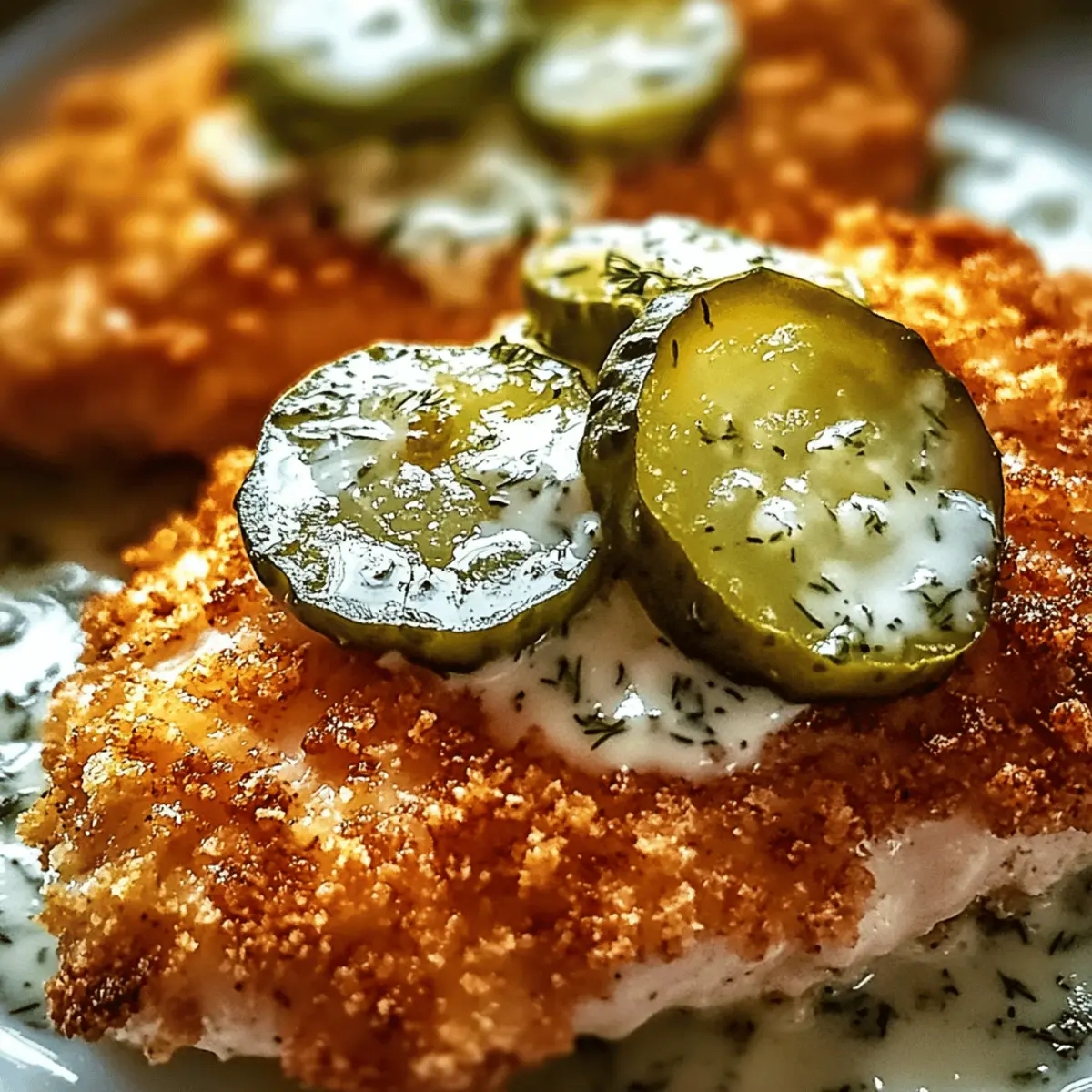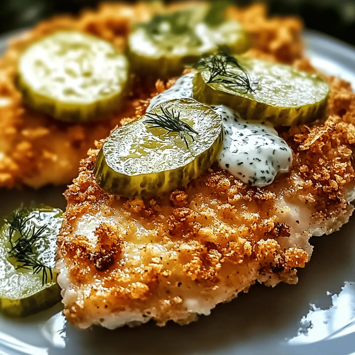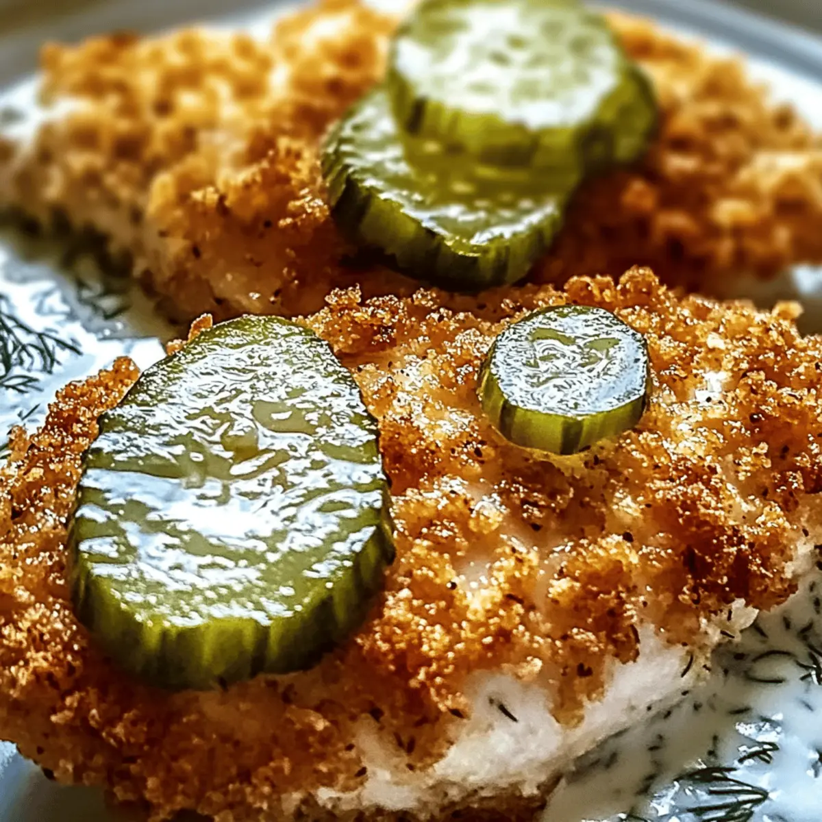 “Quick! What’s for dinner tonight?” The inevitable question hung in the air, inspiring a mini crisis of creativity in my kitchen. This is where the Crispy Dill Pickle Parmesan Chicken comes to the rescue. Not only does this dish whip up in under an hour, but it also delivers a delightful crunch that redefines the chicken experience. Imagine coating juicy chicken in a zesty dill pickle marinade, then crisping it to golden perfection with Parmesan and breadcrumbs. It’s a guaranteed crowd-pleaser that can easily be adapted for gluten-free diets or even made vegan with a few simple swaps. Whether you’re meal prepping for the week or entertaining friends, this recipe ensures hearty satisfaction with minimal effort. Ready to dive into the flavors of comfort and nostalgia? Let’s get started! Why is this Crispy Dill Pickle Chicken Amazing? Flavor Explosion: The unique blend of dill pickle juice and Parmesan creates a flavor that’s both tangy and savory, elevating your chicken from ordinary to extraordinary. Quick Prep: This recipe whips up in under an hour, perfect for busy weeknights when time is of the essence. Customizable Options: Want a gluten-free meal? Simply swap out the flour and breadcrumbs. Craving a vegan twist? Just replace the chicken with tofu! Crowd-Pleasing Dish: Its crunchy texture and zesty taste guarantee that everyone, from picky eaters to foodies, will come back for seconds! Meal Pairing Friendly: Serve it alongside tangy coleslaw or roasted veggies for a well-rounded meal, much like my Hawaiian Chicken Sheet that’s great for family gatherings. Get ready to impress your guests and family alike with this irresistible dish! Dill Pickle Parmesan Chicken Ingredients Get ready to whip up a crunchy delight! Here’s what you’ll need: For the Chicken Chicken Breasts – Use boneless, skinless for that juicy bite. Dill Pickle Juice – Adds tanginess and moisture; feel free to use homemade or store-bought. For the Breading All-Purpose Flour – Essential for coating; gluten-free flour makes a great substitute. Eggs – Helps bind everything together; opt for a flax egg for a vegan twist. Breadcrumbs – Provides that irresistible crunch; consider gluten-free options for sensitivities. Parmesan Cheese – Infuses flavor and aids in crispiness; Pecorino Romano works well as an alternative. For Seasoning Garlic Powder – Adds savory depth; fresh minced garlic can enhance the taste even further. Onion Powder – Complements flavors beautifully; fresh onions can also be used. Paprika – Introduces a smoky note; try smoked paprika for a different kick. Salt & Pepper – Fundamental for seasoning; adjust according to your taste whirls! For Cooking Cooking Oil – Necessary for frying; avocado oil is a healthier option that works wonderfully. Now that you have all the ingredients ready, let’s make some delicious Dill Pickle Parmesan Chicken that your family will adore! Step‑by‑Step Instructions for Crispy Dill Pickle Parmesan Chicken Step 1: Marinate Chicken Begin by placing boneless, skinless chicken breasts in a bowl and covering them with dill pickle juice. Ensure the chicken is fully submerged, then let it marinate in the refrigerator for at least 30 minutes. This step is crucial as it imparts flavor and moisture to the chicken, setting the foundation for your Crispy Dill Pickle Parmesan Chicken. Step 2: Prepare Breading Station Next, set up your breading station by arranging three bowls in a row. In the first bowl, combine all-purpose flour, garlic powder, onion powder, paprika, salt, and pepper. In the second bowl, beat a couple of eggs (or prepare a flax egg for a vegan version). In the third bowl, mix breadcrumbs with grated Parmesan cheese for that crunchy layer. This organized setup will streamline the breading process. Step 3: Heat Oil Heat a generous amount of cooking oil in a large skillet over medium heat. Allow it to warm for about 5-7 minutes until the oil shimmers and a breadcrumb sizzles immediately upon contact. This ensures your Crispy Dill Pickle Parmesan Chicken will develop that perfect golden-brown crust as it fries, achieving the desired crispiness. Step 4: Coat Chicken Once your marinated chicken is ready, remove it from the pickle juice. Start by dredging each breast in the seasoned flour until well coated, shaking off any excess. Dip it into the beaten eggs next, and finally roll it thoroughly in the breadcrumb and Parmesan mixture, pressing gently to ensure the coating adheres well. Repeat this process until all chicken breasts are coated and ready for frying. Step 5: Fry Chicken Carefully place the coated chicken breasts in the hot oil, ensuring not to overcrowd the pan. Fry each piece for 5-7 minutes on one side, or until golden brown, then flip and cook for an additional 5-7 minutes. The internal temperature should reach 165°F (75°C) to ensure it’s safely cooked. Keep an eye on visual cues; a beautifully crisp exterior means you’re right on track. Step 6: Drain and Rest Once the chicken is perfectly fried, use a slotted spatula to transfer it to a plate lined with paper towels. This will absorb any excess oil, keeping your Crispy Dill Pickle Parmesan Chicken light and crunchy. Allow the chicken to rest for 5-10 minutes before slicing, letting the juices redistribute for a juicy inside that will make each bite delightful. Expert Tips for Crispy Dill Pickle Parmesan Chicken Hot Oil Essential: Make sure your oil is sufficiently hot before frying; this ensures a golden, crispy texture that everyone craves. Don’t Overcrowd: Fry the chicken in batches if necessary. Overcrowding the pan can lead to steaming instead of frying, impacting that perfect crunch. Breading Troubles: If the breading doesn’t stick well, increase the marination time or add a little more flour to the chicken for better adherence. Herb Flexibility: Feel free to customize with fresh or dried herbs. A sprinkle of Italian seasoning can enhance the flavors in you