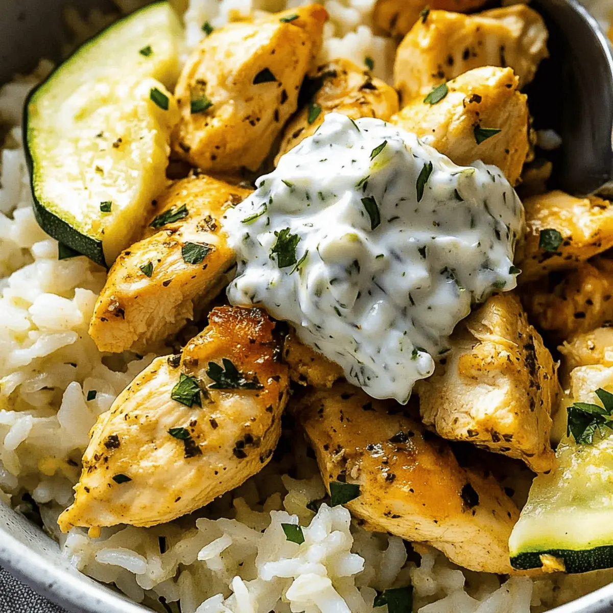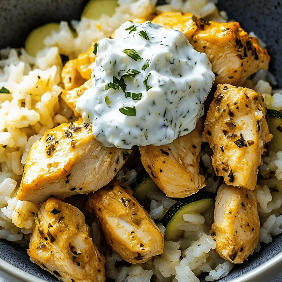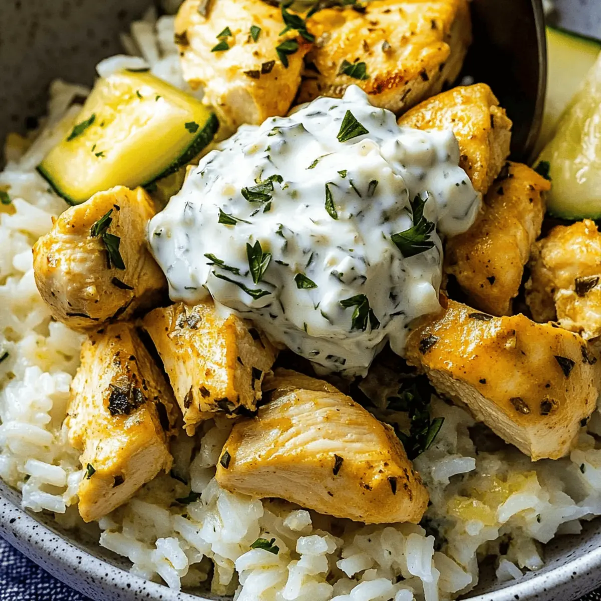 As I placed the sizzling baking dish on the table, the aroma of Mediterranean spices enveloped the room, instantly transporting me to a sun-soaked terrace overlooking the sea. This Easy Chicken Tzatziki Rice Bake is the perfect solution for those busy weeknights when you crave something hearty yet delightful. This one-pan dish combines tender chicken, fluffy rice, and a refreshing tzatziki sauce, all baked together to create a meal that not only satisfies but also fits gluten-free and dairy-free dietary needs. With minimal prep time and cleanup, it’s a stress-free way to treat your loved ones to a delicious homemade dinner. Are you ready to indulge in a Mediterranean-inspired feast that’s quick and bursting with flavor? Let’s dive in! Why is this Chicken Tzatziki Bake a must-try? Simplicity: This dish is an ideal choice for busy nights, requiring just a few minutes of prep before baking. Flavor Explosion: With a blend of aromatic Mediterranean spices and a creamy tzatziki finish, every bite bursts with freshness and taste. One-Pan Wonder: Enjoy all the flavors without the fuss of multiple pots; minimal cleanup means more time for you! Diet-Friendly: Perfectly gluten-free and dairy-free, it caters to a variety of dietary needs without compromising on flavor. Level Up Meals: Pair it with Bbq Chicken Rice for an exciting week of diverse dishes, or try it alongside Grilled Chicken Broccoli Bowls for healthier options! Dump-and-Bake Chicken Tzatziki Rice Ingredients For the Chicken and Rice • Chicken Breast/Thighs – Main protein, diced for even cooking; turkey or firm tofu are great substitutes for a lighter option. • Long Grain White Rice – Base of the dish that provides structure; quinoa is a nutritious alternative. • Zucchini – Adds moisture and nutrition; grated for seamless integration; yellow squash can also work well. • Chicken Broth – Enhances the flavor of the rice; use vegetable broth for a vegetarian-friendly choice. • Lemon Juice – Brightens the flavors; fresh is ideal but bottled works in a pinch. • Olive Oil – Adds richness and promotes browning; avocado oil is a suitable alternative. For the Seasoning • Fresh Herbs (Parsley, Oregano, Thyme) – Adds depth and freshness; replace with dried herbs if needed, using smaller amounts. • Smoked Paprika – Introduces warmth and subtle smokiness; regular paprika is a fine substitution. • Seasoned Salt – Provides a balanced saltiness base; adjust with regular salt based on taste. • Cumin, Onion Powder, Garlic Powder, Black Pepper, Turmeric, Cayenne Pepper – Elevates flavor complexity; adjust according to your spice preference. For Serving • Tzatziki Sauce – Provides coolness when served, either homemade or store-bought is acceptable; this sauce is key for your Chicken Tzatziki Rice. • Pita Bread – An optional but delightful side for scooping; it makes for a fun and tasty accompaniment. • Fresh Herbs (Dill, Basil, Parsley, Chives) – Adds beautiful garnish and flavor boost for presentation. Step‑by‑Step Instructions for Dump-and-Bake Chicken Tzatziki Rice Step 1: Preheat and Prepare Begin by preheating your oven to 375°F (190°C). As the oven heats, take a 9×13-inch baking dish and lightly grease it with olive oil to prevent sticking. This dish will be the heart of your Dump-and-Bake Chicken Tzatziki Rice, ensuring everything cooks evenly and absorbs all those delightful flavors. Step 2: Marinate the Chicken In the prepared baking dish, combine the diced chicken breast or thighs with fresh lemon juice, olive oil, and a medley of fresh herbs and spices. Mix until the chicken is well-coated and allow it to marinate for about 30 minutes. This step enhances the flavor profile and ensures that the chicken will be juicy when cooked. Step 3: Layer the Ingredients Once the chicken has marinated, add uncooked long grain white rice, grated zucchini, and rich chicken broth to the dish. Stir the mixture well until everything is combined, ensuring the rice is exposed evenly, as this is crucial for it to soak up the flavors while baking. Step 4: Bake Covered Cover the baking dish tightly with aluminum foil, creating a seal to trap steam and moisture. Place it in the oven and bake for 40 minutes. This process will help the rice cook through and absorb the chicken broth, creating a savory base for your Dump-and-Bake Chicken Tzatziki Rice. Step 5: Fluff and Season After baking, carefully remove the foil, being cautious of the steam. Use a fork to fluff the rice gently, and at this point, taste to adjust any seasonings if necessary. The rice should be tender, and the chicken thoroughly cooked, showcasing a lovely blend of Mediterranean spices in each fluffy bite. Step 6: Serve with Tzatziki To finish, serve your vibrant Dump-and-Bake Chicken Tzatziki Rice topped with generous dollops of cool tzatziki sauce and a sprinkle of fresh herbs. For a fun touch, consider adding fresh lemon juice for brightness, and enjoy this Mediterranean delight alongside warm pita bread for scooping. What to Serve with Easy Chicken Tzatziki Rice Bake? Pair your delightful Mediterranean dish with a variety of sides that elevate your meal experience and tantalize your taste buds. Creamy Mashed Potatoes: The velvety texture of mashed potatoes contrasts beautifully with the fluffy rice, creating a rich mouthfeel in every bite. Crisp Garden Salad: A fresh salad of mixed greens, cucumbers, and a light vinaigrette adds a refreshing crunch, balancing the dish’s warm flavors perfectly. Roasted Vegetables: Caramelized seasonal veggies like bell peppers and zucchini complement the chicken’s savory notes, bringing a sweet and smoky dimension to your plate. Garlic Bread: Warm, crusty garlic bread is perfect for scooping up the rice and tzatziki while adding a comforting, buttery flavor to your meal. Mediterranean Quinoa Salad: A light, zesty quinoa salad with chickpeas, tomatoes, and olives brings brightness and nutrition, enhanc
