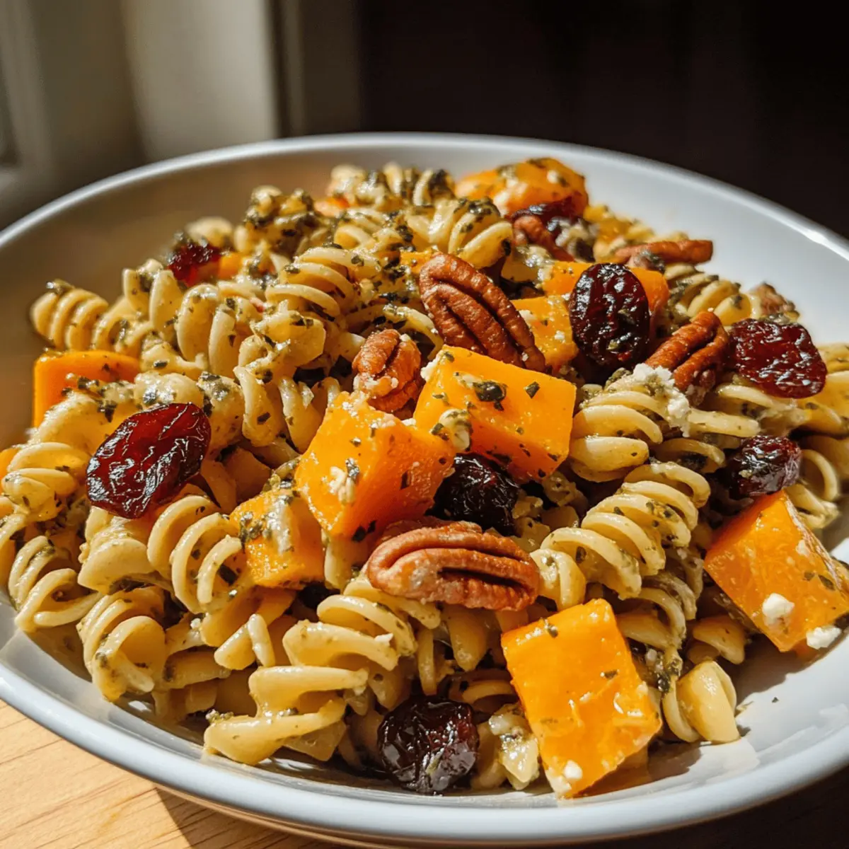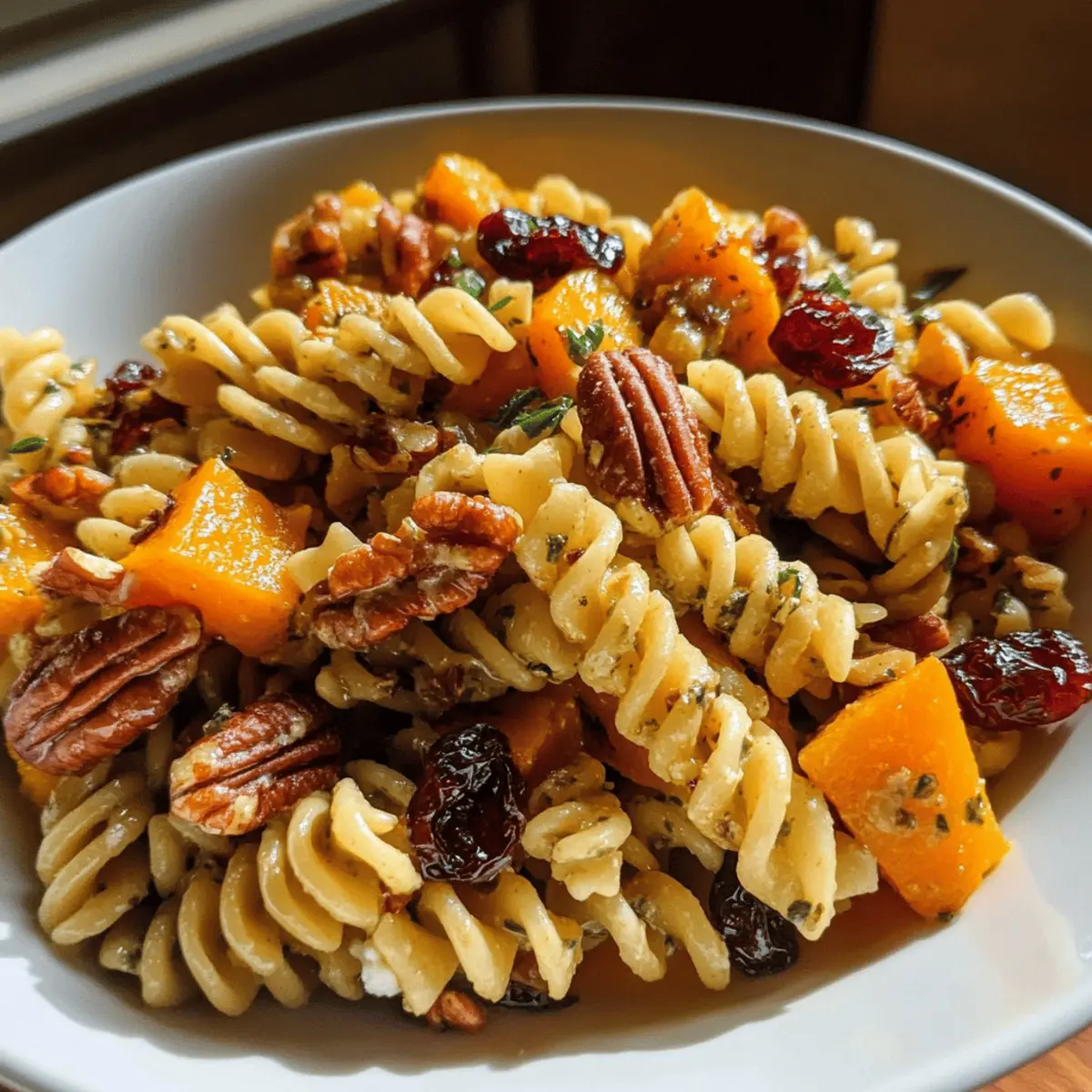 As the air turns crisp and leaves begin to paint the landscape in hues of gold and amber, I can’t help but crave the comforting dish that embodies autumn—the Fall Pasta Salad. This vibrant salad artfully combines sweet roasted butternut squash, tart cranberries, and a rich maple vinaigrette that dances on the palate. Not only is it a breeze to prepare, but it’s also a showstopper for gatherings, as it travels beautifully and can be made ahead of time, ensuring your days spend with loved ones are free from kitchen chaos. With its heartiness and seasonal flavors, this recipe will become a delightful staple on your table. Are you ready to bring the essence of fall to your dinner plate? Why is this Fall Pasta Salad a must-try? Celebration of Autumn: Bursting with rich fall flavors, this salad brings the essence of the season to your table. Effortless Preparation: With just a few simple steps, you can create a dish that’s both impressive and delicious. Versatile Ingredients: Customize it to your liking—swap out nuts or try different pasta shapes. Make-Ahead Friendly: Perfect for meal prep or taking to potlucks, this salad stays fresh for days. Experience something special like our Tortellini Pasta Salad or refreshing Pineapple Cucumber Salad alongside this comforting delight! Fall Pasta Salad Ingredients For the Salad Pasta – Use penne or rotini for better vinaigrette adherence; gluten-free pasta is a great option for those with dietary restrictions. Butternut Squash – Make sure it’s peeled, seeded, and cubed; this adds essential sweetness and autumn flavor. Dried Cranberries – These add tartness and sweetness; feel free to substitute with other dried fruits like cherries or raisins. Pecans or Walnuts – Toast them before adding for enhanced flavor and crunch; you can also use sunflower or pumpkin seeds for allergies. Fresh Parsley – Adds brightness and freshness; cilantro can serve as a lovely substitute if desired. Goat Cheese or Feta (optional) – Introduces a creamy element; can be omitted or replaced with a non-dairy cheese if preferred. For the Vinaigrette Olive Oil – This rich base for the dressing complements all the ingredients beautifully. Maple Syrup – Essential for the vinaigrette’s sweetness; honey or agave syrup can be swapped if necessary. Apple Cider Vinegar – Provides tanginess to balance the flavors; white wine vinegar is a suitable replacement. Dijon Mustard – Adds a flavorful kick to the dressing; yellow mustard can also be used in its place. This Fall Pasta Salad is not just a dish; it’s a celebration of the season that brings warmth to your table! Enjoy creating this comforting favorite! Step‑by‑Step Instructions for Fall Pasta Salad Step 1: Cook the Pasta Begin by bringing a large pot of salted water to a rolling boil. Add your chosen pasta, such as penne or rotini, and cook according to the package instructions until it reaches an al dente texture, usually about 8-10 minutes. Once done, drain the pasta in a colander and rinse it under cold water to halt the cooking process, ensuring it cools down before combining it in your Fall Pasta Salad. Step 2: Roast the Butternut Squash While the pasta is cooking, preheat your oven to 400°F (200°C). In a mixing bowl, toss the cubed butternut squash with olive oil, salt, and pepper until evenly coated. Spread the squash in a single layer on a lined baking sheet, and roast for 20-25 minutes, or until the pieces are tender and golden brown. This roasting step brings out the sweet, autumnal flavor that makes your Fall Pasta Salad shine. Step 3: Prepare the Vinaigrette In a small mixing bowl, whisk together olive oil, maple syrup, apple cider vinegar, Dijon mustard, and a pinch of salt and pepper. Whisk until the mixture is well-emulsified and slightly thickened, creating a delightful contrast to the roasted squash. This maple vinaigrette will beautifully tie together the flavors in your Fall Pasta Salad, adding a touch of sweetness and tang. Step 4: Combine the Salad Ingredients In a large mixing bowl, combine the cooled pasta with the roasted butternut squash, dried cranberries, toasted pecans or walnuts, and freshly chopped parsley. Gently toss the ingredients together using a spatula or large fork until they are well distributed and colorful. This careful assembling ensures that each bite of your Fall Pasta Salad bursts with flavor and texture. Step 5: Dress the Salad Pour the prepared maple vinaigrette over the combined salad ingredients in the bowl. Using a gentle hand, toss the salad again to ensure every component is nicely coated with the dressing. If you’re opting for cheese, sprinkle in crumbled goat cheese or feta at this stage for added creaminess. The vinaigrette will bring everything together harmoniously, enhancing the overall taste of your Fall Pasta Salad. Step 6: Chill and Serve To allow the flavors to meld beautifully, cover the bowl with plastic wrap or transfer the salad to an airtight container. Refrigerate for at least 30 minutes before serving. This chilling step not only enhances the flavors but also makes your Fall Pasta Salad a refreshing side dish, perfect for gatherings or meal prep for busy days ahead. How to Store and Freeze Fall Pasta Salad Fridge: Store your Fall Pasta Salad in an airtight container for up to 3 days. This will keep it fresh while the flavors meld together beautifully. Freezer: While not recommended for freezing due to the pasta’s texture, if needed, you can freeze the roasted butternut squash separately for up to 2 months. Make-Ahead Tips: Prepare the salad a day in advance and refrigerate. The flavors get even better after chilling overnight! Reheating: If you prefer serving warm, gently heat the squash in a microwave or sauté pan before tossing with the salad. Avoid reheating the dressed salad to maintain its freshness. Make Ahead Options This Fall Pasta Salad is an absolute lifesaver for busy weeknights or potluck gatherings! You can pre
