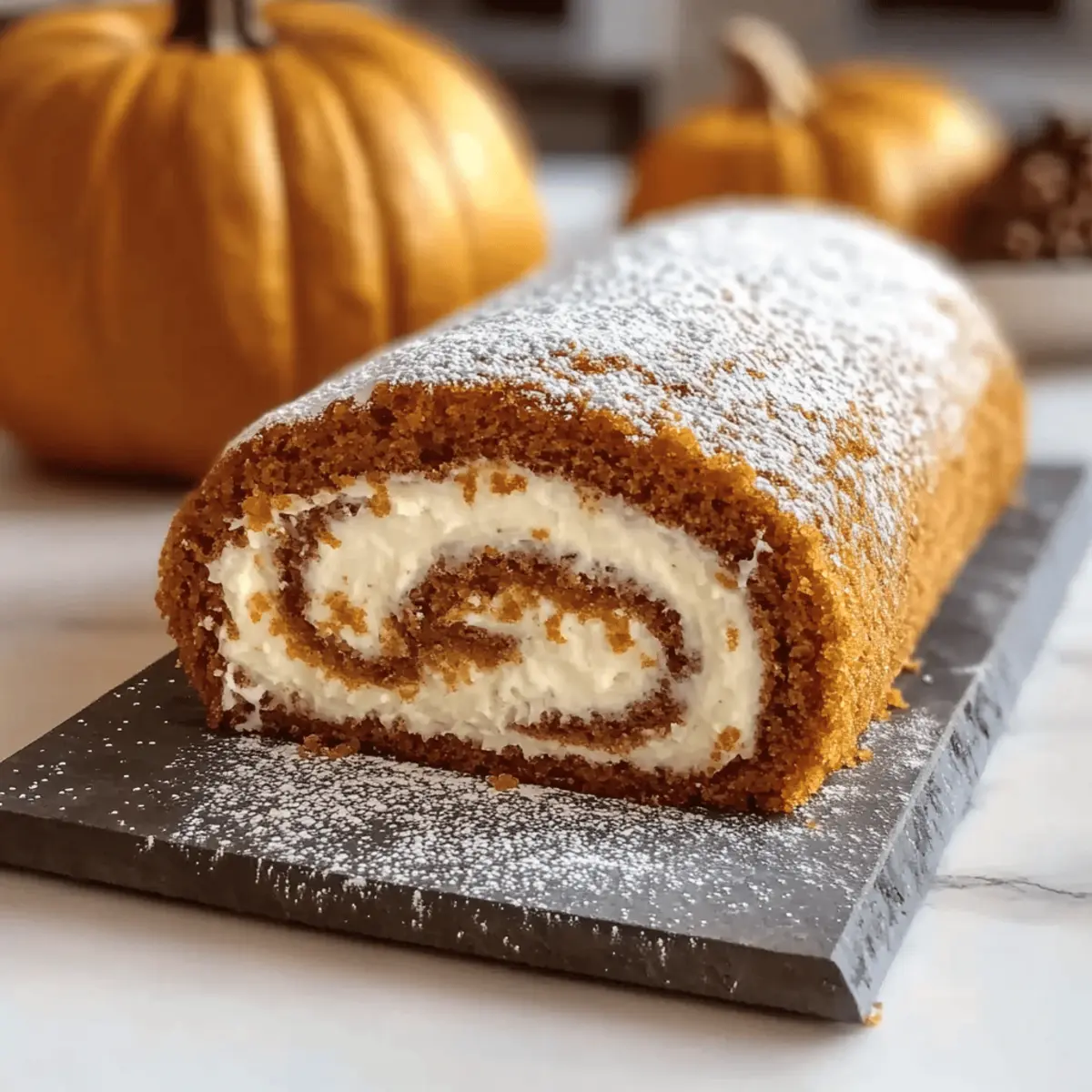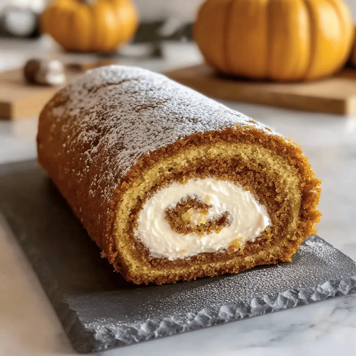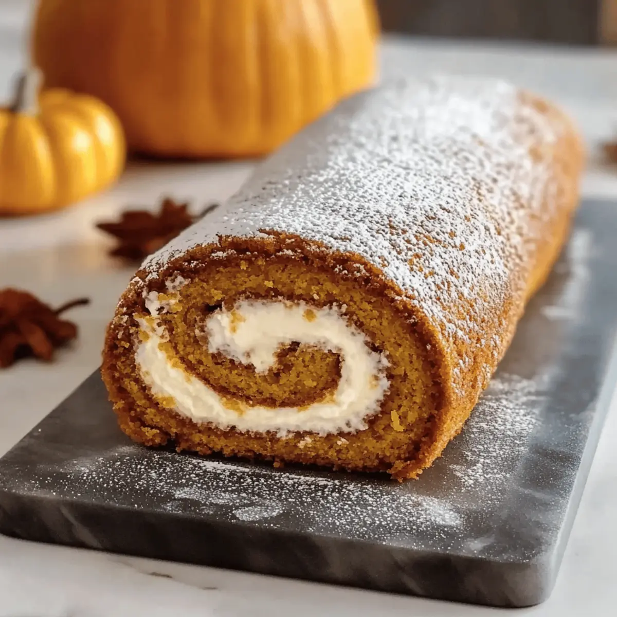 As the air turns crisp and leaves begin to dance in vibrant hues, there’s nothing that embodies the spirit of fall quite like baking a warm Pumpkin Spice Roll Cake with Cream Cheese Filling. This autumn dessert is not only visually stunning, but it also brings together the nostalgic flavors of the season in a soft, fluffy cake that envelops a creamy, rich filling. What’s more, it’s a family-friendly recipe that can be made ahead of time, making it perfect for those cozy gatherings when you want to impress without the stress. Ready to roll into fall with this delightful treat? Let’s get started! Why is this Pumpkin Spice Roll Cake special? Autumn Delight: This Pumpkin Spice Roll Cake captures the very essence of fall, bringing warmth and festive flavors to your table. Effortlessly Elegant: Its stunning appearance makes it a showstopper for gatherings, yet it’s surprisingly simple to prepare. Creamy Bliss: The rich cream cheese filling perfectly balances the spiced cake, creating a delicious harmony that everyone will adore. Make-Ahead Magic: Ideal for busy hosts, this dessert can be prepared in advance and simply chilled until it’s showtime, leaving you free to enjoy your guests. Versatile Treat: Whether enjoyed with coffee or paired with a scoop of vanilla ice cream, this cake complements any occasion—check out the delightful pairing with whipped cream for an extra touch! Family-Friendly: It’s a hit with both kids and adults alike, making it the perfect addition to family gatherings or festive celebrations. Fall Pumpkin Spice Roll Cake Ingredients For the Cake Pumpkin Puree – Provides moisture and flavor; ensure to use 100% pure pumpkin puree, not pie filling. All-Purpose Flour – Gives structure to the cake; can substitute with a gluten-free flour blend for dietary needs. Granulated Sugar – Sweetens the cake, balancing the warm spices perfectly. Eggs – Binds the ingredients together and adds moisture; use room temperature eggs for better aeration. Baking Powder & Baking Soda – Essential leavening agents that give the cake its light rise. Ground Cinnamon & Pumpkin Pie Spice – Adds that warm, cozy autumn flavor; don’t skimp on these spices! Salt – Enhances the overall flavor profile of the cake. For the Cream Cheese Filling Butter – Adds richness and creaminess to the filling; use unsalted and make sure it’s at room temperature. Cream Cheese – The base for the frosting; softening it will help avoid lumps for a smooth texture. Vanilla Extract – Boosts the flavor of the filling beautifully. Powdered Sugar – Sweetens and thickens the cream cheese filling; adjust based on your taste preference. For Dusting Powdered Sugar – A finishing touch to prevent the cake from sticking while rolling; dust generously! Step‑by‑Step Instructions for Fall Pumpkin Spice Roll Cake Step 1: Preheat the Oven Begin by preheating your oven to 375°F (190°C). While the oven heats up, prepare a 13×17” jellyroll pan by lining it with parchment paper and lightly greasing the paper. This step ensures that your Fall Pumpkin Spice Roll Cake releases easily once baked, giving you a smooth finish to work with. Step 2: Mix Dry Ingredients In a mixing bowl, combine your all-purpose flour, baking powder, baking soda, ground cinnamon, pumpkin pie spice, and salt. Whisk these ingredients together until evenly blended, creating a fragrant and spiced aroma that captures the essence of fall. Set this bowl aside while you prepare the wet ingredients to keep things organized. Step 3: Beat Eggs and Sugar In another large mixing bowl, beat together the room-temperature eggs and granulated sugar using a hand mixer on medium speed. Continue mixing until the mixture turns pale and fluffy, which should take about 2-3 minutes. Then, add the pumpkin puree and vanilla extract, mixing them in thoroughly to create a smooth and creamy base for your cake. Step 4: Combine Dry and Wet Ingredients Gently fold the dry mixture into the wet ingredients using a spatula or wooden spoon. Be careful not to overmix; you want to combine them just until no dry streaks remain in the batter. This careful folding helps to maintain the fluffy texture of your Fall Pumpkin Spice Roll Cake. Step 5: Spread the Batter Pour the batter into your prepared jellyroll pan, spreading it evenly across the surface. Use a spatula to ensure a uniform layer, which will help it bake evenly. Place the pan in the preheated oven and bake for 14-15 minutes, or until the cake is set and springs back when lightly touched in the center. Step 6: Roll the Cake Once baked, remove the cake from the oven and immediately turn it out onto a clean kitchen towel that has been generously dusted with powdered sugar. Carefully peel away the parchment paper and roll the cake up tightly while it’s still warm, using the towel to assist. Allow it to cool completely in this rolled shape to help maintain its form. Step 7: Prepare the Filling In a mixing bowl, beat the room-temperature butter and cream cheese together until smooth and creamy, about 2-3 minutes using a hand mixer. Next, add in the vanilla extract and gradually incorporate the powdered sugar, adjusting the sweetness to your preference. This creamy filling will complement your Fall Pumpkin Spice Roll Cake perfectly. Step 8: Unroll and Fill the Cake Once the cake is completely cooled, gently unroll it from the towel. Spread an even layer of the cream cheese filling across the top of the cake, ensuring it reaches the edges. Be gentle to avoid tearing the cake, and then re-roll the cake without the towel, starting from one end. This forms the beautiful spiral that defines your cake. Step 9: Chill Before Serving Wrap your rolled cake in plastic wrap and refrigerate it for at least 1 hour. Chilling allows the filling to set, making it easier to slice later. When ready to serve, remove it from the fridge, dust the exterior with powdered sugar for a lovely finish, and slice it into rounds. Enjoy t