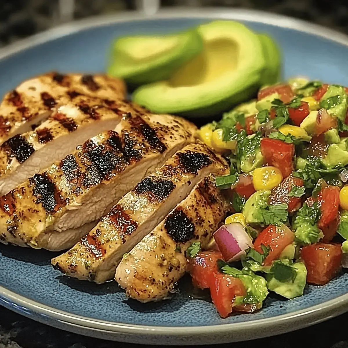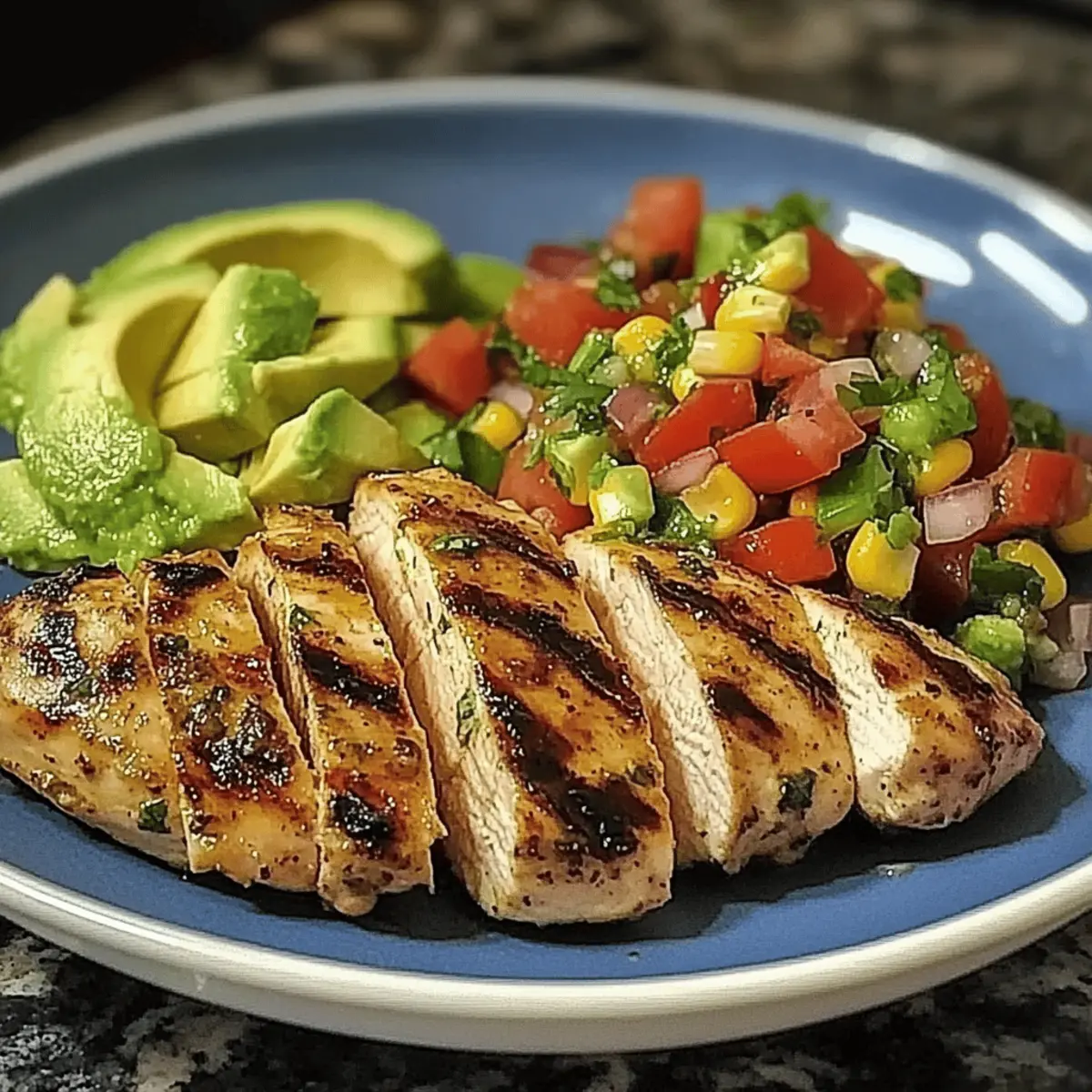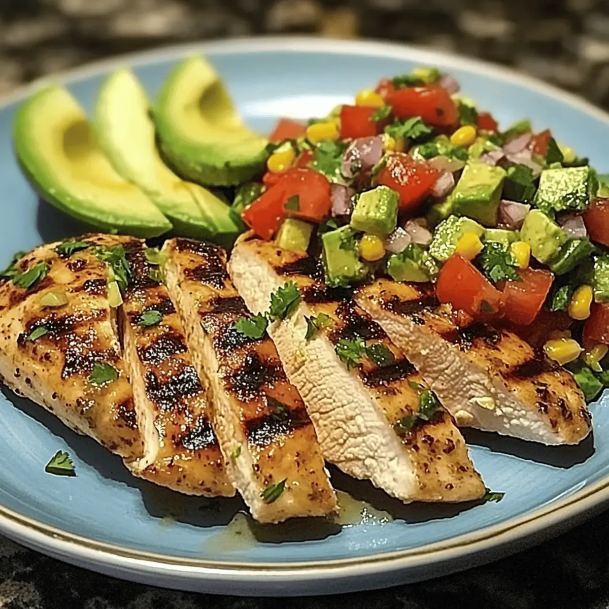 Stepping into the kitchen, I can almost hear the sizzle of the grill tempting my taste buds with vibrant summer vibes. This Fiesta Lime Chicken Recipe with Avocado is a celebration of flavor that brightens my weeknight meals effortlessly. Picture juicy chicken paired with a refreshing and creamy Avocado Corn Salsa, making this dish not only a feast for the eyes but also a joy to prepare. I love how quickly it comes together, turning ordinary evenings into something special without the fuss. It’s healthy and adaptable too—perfect for any cut of chicken on hand! Whether it’s for a family dinner or a last-minute gathering, this recipe promises satisfaction with minimal prep. Are you ready to dive into a plate that bursts with sunshine and zest? Let’s get cooking! Why Is This Fiesta Lime Chicken Unique? Simplicity at Its Finest: This vibrant recipe comes together in a flash, making it an ideal option for busy weeknights. Bursting with Flavor: The chili lime rub blends spices like cumin and smoked paprika, perfectly complimenting the juicy chicken. Versatile Options: Adapt the recipe for varying cuts of chicken or even switch it up with shrimp or tofu. Fresh Ingredients: The Avocado Corn Salsa adds a refreshing crunch and creamy texture, making each bite delightful. Quick Prep: With minimal time in the kitchen, you’ll have more moments to enjoy what truly matters—dinner with loved ones! Elevate your meal planning even further with delicious sides like Cilantro Lime Rice or healthy options like Chicken Avocado Wrap. Fiesta Lime Chicken Ingredients For the Chicken • Chicken – The star of the show, it can be breasts, thighs, legs, or wings for a delightful variety. • Olive Oil – This enriches the flavor and helps the rub stick. Substitute with avocado oil for a nutty touch. • Lime Juice – Brightens up the dish; fresh lime juice is best for maximum zing. • Chili Powder – Adds a warm kick to the rub. • Brown Sugar – Balances out the spice; honey or agave works as lighter alternatives. • Salt – Key for flavor enhancement and moisture retention. • Ground Cumin – Deepens the flavor profile of the rub. • Smoked Paprika – Infuses a delightful smokiness into the chicken. • Onion Powder/Garlic Powder – These elevate the savory essence of the rub. • Chipotle Chili Powder – Optional, but it brings the heat if you crave it. • Pepper – For that final seasoning touch. For the Avocado Corn Salsa • Avocados – Rich and creamy, they are essential for a luscious salsa; choose ripe but firm ones. • Cherry Tomatoes/Roma Tomatoes – Adds sweetness and acidity to brighten up the salsa. • Fresh Corn – Sweet and crunchy, it can be replaced with canned corn if fresh isn’t available. • Red Onion – Offers a sharp note; finely chop for even distribution. • Red Bell Pepper – Introduces sweetness and a satisfying crunch. • Jalapeño Pepper – For heat, just remember to remove seeds for a milder taste. • Cilantro – Freshness and aromatic brilliance in every spoonful of salsa. • Garlic Clove – Sharp flavor that can be switched with garlic powder if need be. • Additional Lime Juice – Helps adjust the salsa’s tanginess to your liking. • Ground Cumin and Salt – Finish off the seasoning for that perfect fresh taste. With this Fiesta Lime Chicken Recipe with Avocado, you’re set to create a colorful, satisfying dish that bursts with fresh flavors and makes your dinner table shine! Step‑by‑Step Instructions for Fiesta Lime Chicken Recipe with Avocado Step 1: Prepare the Chili Lime Rub In a mixing bowl, whisk together olive oil, lime juice, chili powder, brown sugar, salt, cumin, smoked paprika, onion powder, garlic powder, chipotle chili powder, and pepper until smooth and well combined. This aromatic rub sets the stage for our Fiesta Lime Chicken, infusing it with zesty flavor. Step 2: Coat the Chicken Next, generously slather the chili lime rub evenly over the chicken pieces, ensuring every surface is well coated. Allow the chicken to rest at room temperature for 15-30 minutes. This marinating process enhances the flavor absorption, helping you achieve juicy, tender meat bursting with taste. Step 3: Heat the Skillet While your chicken marinates, heat a large skillet over medium-high heat for about 2 minutes. Once hot, add a splash of olive oil to the pan, coating the bottom well. This prepares the skillet for searing the chicken, creating a beautifully browned crust that locks in moisture. Step 4: Cook the Chicken on the Stovetop Carefully place the marinated chicken into the skillet and cook undisturbed for 3-5 minutes until it develops a golden-brown exterior. Flip the chicken over, cover, and continue cooking for an additional 5-7 minutes. Use a meat thermometer to ensure an internal temperature of 165°F for perfectly cooked Fiesta Lime Chicken. Step 5: Grill the Chicken (Optional) If you prefer grilling, preheat your grill to medium heat, about 375-400°F. Grill each chicken piece for 5-7 minutes per side until thoroughly cooked and having beautiful grill marks. This method imparts a smokey flavor, making your Fiesta Lime Chicken even more delightful. Step 6: Let the Chicken Rest Once cooked, transfer the chicken from heat and let it rest for 5 minutes before slicing. This crucial resting period allows the juices to redistribute within the chicken, ensuring each bite is moist and flavorful. Step 7: Prepare the Avocado Corn Salsa In a separate bowl, combine diced tomatoes, fresh corn, chopped red onion, red bell pepper, jalapeño, cilantro, minced garlic, lime juice, cumin, and salt. Mix well to blend the flavors. Just before serving, gently fold in the diced avocados to retain their integrity and creaminess in the salsa. Step 8: Serve the Dish To serve, slice the rest chicken and plate the pieces generously topped with the creamy Avocado Corn Salsa. Garnish with extra lime wedges if desired. Not only does this Fiesta Lime Chi