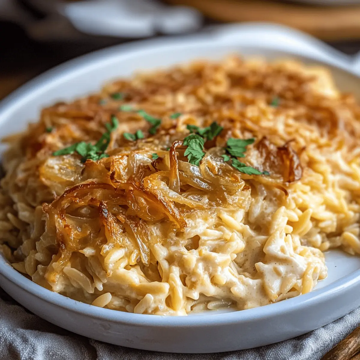 Creamy French Onion Orzo Bake for Cozy Comfort Food Nights