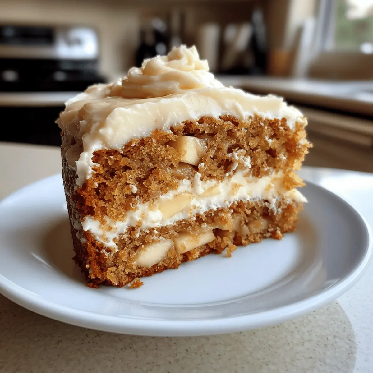 As I pulled the warm Fresh Apple Cake from the oven, the sweet scent of cinnamon and baked apples wrapped around me like a cozy blanket. This isn’t just another dessert; it’s the star of your fall gatherings, complete with a luscious cream cheese frosting that adds a delightful tang. Not only does this cake come together in a snap, but it also boasts a moist crumb that’s packed with fresh apples, creating a comforting dessert that will have your friends and family asking for seconds. Whether you’re hosting a festive dinner or simply craving something special, this cake does it all. Curious how to bring this seasonal delight to life in your kitchen? Let’s dive into the recipe! Why is this Fresh Apple Cake special? Irresistible Flavor: Fresh apples mingle with warm cinnamon, creating a cozy aroma and taste that’s quintessentially autumn. Creamy Frosting: The cream cheese frosting adds a luscious, tangy balance to the sweetness of the cake, elevating each bite. Simple Preparation: With minimal steps, this recipe is designed for all skill levels, making it perfect for anyone looking to impress without stress. Versatile Options: Want to switch things up? You can add walnuts for crunch or even swirl in caramel for an extra treat. Perfectly Moist: This cake stays moist and tender, ensuring every slice is a delightful indulgence, whether served warm or at room temperature. Crowd-Pleasing Dessert: Whether it’s for a holiday gathering or a weekend treat, this cake charms everyone, leaving them asking for the recipe. Fresh Apple Cake with Cream Cheese Frosting Ingredients For the Cake All-Purpose Flour – Provides structure and stability to ensure a perfect texture in your Fresh Apple Cake. Baking Soda – Helps the cake rise, creating a light and fluffy crumb. Salt – Enhances the overall flavor, balancing the sweetness. Ground Cinnamon – Adds the warm, comforting spice that makes this dessert feel like fall. Unsalted Butter – Creates a rich taste and moistness; for a denser cake, you can substitute with vegetable oil (1/2 cup). Granulated Sugar – Sweetens the cake; for a deeper flavor, you can use brown sugar. Large Eggs – Essential for binding the ingredients and helping the cake rise. Vanilla Extract – Adds a lovely fragrance and depth of flavor. Grated Apples – The star ingredient that brings natural moisture and sweetness; be sure to squeeze out excess moisture to avoid a soggy cake. Chopped Walnuts (optional) – Adds delightful crunch and nuttiness; pecans can be a tasty substitute. For the Cream Cheese Frosting Cream Cheese – The key ingredient for a rich and tangy frosting; ensure it’s softened for a smooth mix. Unsalted Butter (for frosting) – Adds creaminess and enhances flavor; should also be at room temperature. Powdered Sugar – Sweetens and thickens the frosting; sifting before mixing helps avoid lumps. Vanilla Extract (for frosting) – Boosts the flavor profile of the frosting. Milk – Optional for adjusting the consistency of the frosting to your liking. Now, with these ingredients all lined up, you’re one step closer to crafting a delightful Fresh Apple Cake with Cream Cheese Frosting that’s sure to be a hit! Step‑by‑Step Instructions for Fresh Apple Cake with Cream Cheese Frosting Step 1: Preheat and Prepare Begin by preheating your oven to 350°F (175°C). While the oven warms up, take a 9×13-inch baking pan and grease it with butter or non-stick spray to ensure your Fresh Apple Cake releases easily once baked. Set it aside and make sure all your ingredients are at room temperature for the best results. Step 2: Mix Dry Ingredients In a medium bowl, whisk together 2 cups of all-purpose flour, 1 teaspoon of baking soda, 1/2 teaspoon of salt, and 2 teaspoons of ground cinnamon. As you mix, take in the fragrant aroma of the cinnamon. This mixture will be the backbone of your cake, providing structure and flavor, so whisk thoroughly to combine all ingredients evenly. Step 3: Cream Butter and Sugar In a large mixing bowl, cream together 1/2 cup of softened unsalted butter and 1 cup of granulated sugar using a hand mixer on medium speed until the mixture is pale and fluffy, about 2 minutes. This step is crucial as it incorporates air, resulting in a light texture for your Fresh Apple Cake. Scrape down the sides of the bowl as needed for a smooth consistency. Step 4: Incorporate Wet Ingredients Add 2 large eggs, one at a time, mixing well after each addition to ensure they’re fully incorporated. Follow that by blending in 1 teaspoon of vanilla extract. The mixture should become creamy and well-combined, adding moisture and richness to the cake batter. Step 5: Combine Wet and Dry Mixtures Gradually stir the dry ingredient mixture into the wet ingredients, mixing on low speed until just combined. Be careful not to overmix; the batter should be slightly lumpy, preserving the moist texture of your Fresh Apple Cake. Remember, a gentle hand often yields the best results! Step 6: Fold in Apples and Nuts Using a spatula, gently fold in 2 cups of grated apples and, if desired, 1/2 cup of chopped walnuts. This step adds delightful texture and flavor bursts to each bite of your cake. Ensure the apples are evenly distributed throughout the batter, promoting a uniform bake. Step 7: Bake the Cake Pour the batter into your prepared baking pan, smoothing the top with a spatula. Place in the preheated oven and bake for 30-35 minutes. The cake is done when it’s golden brown and a toothpick inserted in the center comes out with moist crumbs attached. Keep an eye on it towards the end to avoid overbaking. Step 8: Cool the Cake Once baked, remove the Fresh Apple Cake from the oven and let it cool in the pan for about 10 minutes. After that, carefully transfer it to a wire rack to cool completely, which will take around 1 hour. This cooling step is essential for ensuring the perfect frosting application later on. Step 9: Prepare the Cream Cheese Frosting Whi
