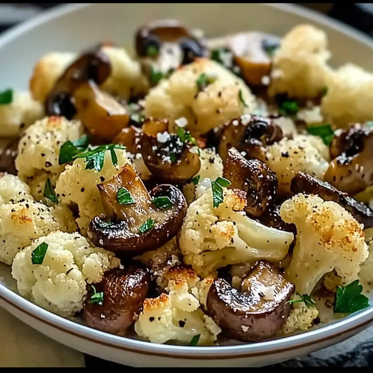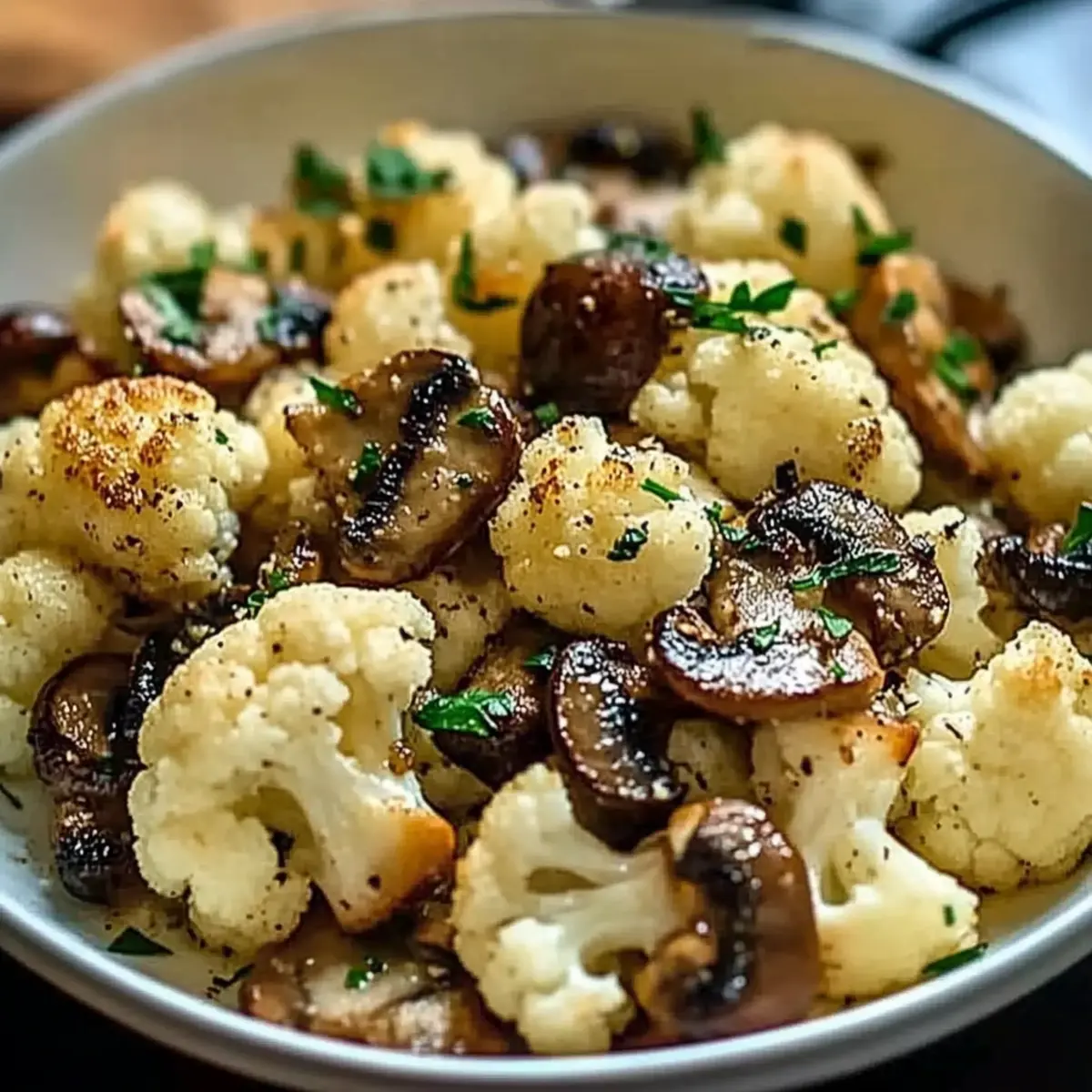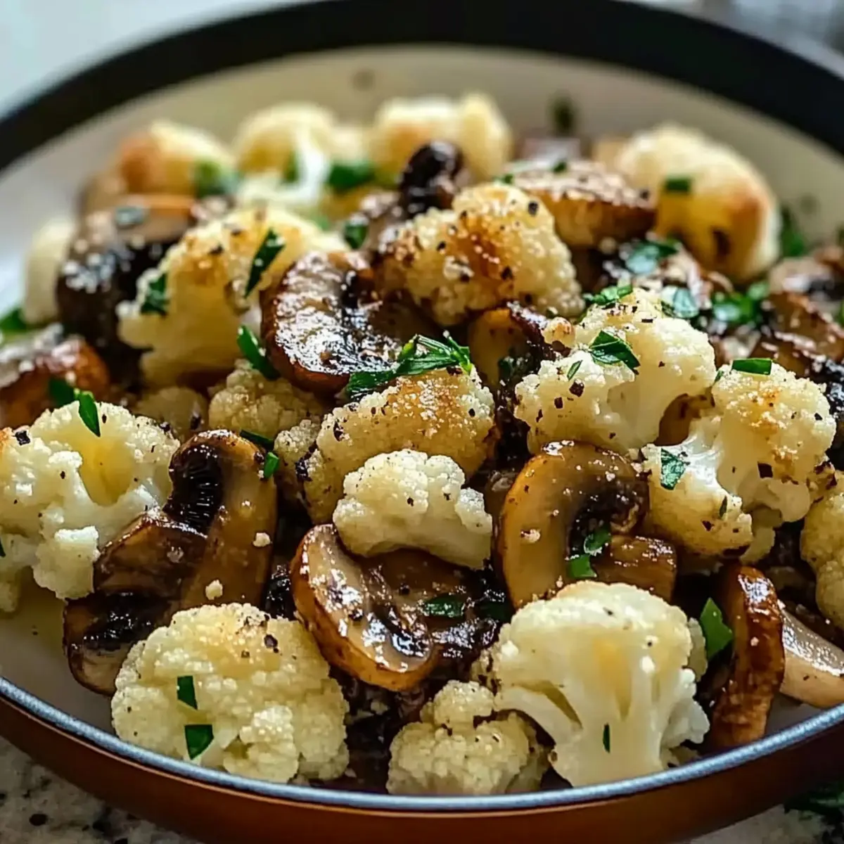 Facebook Twitter Pinterest LinkedInAmidst the whirlwind of weeknight dinners, the Garlic Cauliflower Mushroom Skillet has become my go-to hero. Picture that magical moment when garlic meets sizzling veggies, releasing an aromatic embrace that nudges you to pause and appreciate your culinary triumph. This quick and healthy dish is a delightful way to indulge in comfort while packing a nutritious punch, making it perfect for those craving homemade goodness without the fuss. With its gluten-free and vegan-friendly options, you can easily customize it to suit every dietary preference. Imagine tossing in your favorite veggies or a protein boost to create your unique masterpiece! What will you add to elevate your skillet experience? Why is this skillet recipe a must-try? Simplicity: This Garlic Cauliflower Mushroom Skillet is incredibly easy to whip up, making it perfect for busy weeknights when you crave a homemade meal. Flavor Explosion: Each bite bursts with savory garlic and umami-rich mushrooms, creating a comforting experience that’s hard to resist. Customization Galore: With endless variations, you can tailor the recipe to your taste—add bell peppers, beans, or even toss in some Parmesan Chicken Garlic for a heartier option. Health Focused: Packing a nutritional punch, this dish is both low-carb and gluten-free, catering to a variety of dietary needs. Crowd-Pleaser: Whether it’s a family dinner or a casual gathering with friends, the vibrant colors and delightful aromas will have everyone asking for seconds! Garlic Cauliflower Mushroom Skillet Ingredients For the Skillet Cauliflower – provides bulk and texture; fresh heads without brown spots are best; can substitute with broccoli for variation. Mushrooms – adds umami flavor and richness; variety options include cremini, shiitake, or button mushrooms; use any fresh mushrooms available. Garlic – delivers aromatic flavor; freshly minced garlic preferred over pre-minced for optimal flavor. Olive Oil – a healthy cooking fat source; can substitute with coconut oil for a different flavor profile. Salt & Pepper – basic seasoning that enhances flavors; adjust to taste. Paprika (optional) – adds a touch of smokiness; red pepper flakes can be used for heat. Lemon Juice (optional) – brightens flavors at the end; can substitute with vinegar if lemon is unavailable. Parmesan (optional) – adds richness and savory depth; for a dairy-free option, omit or use nutritional yeast instead. Fresh Herbs (optional) – enhances flavor and presentation; options include parsley, thyme, or basil. This Garlic Cauliflower Mushroom Skillet brings together a beautiful medley of ingredients that not only satisfy the taste buds but also align with dietary themes. Happy cooking! Step‑by‑Step Instructions for Garlic Cauliflower Mushroom Skillet Step 1: Prep Ingredients Start by cleaning the fresh cauliflower and cutting it into uniform florets for even cooking. Next, slice your mushrooms into even pieces, and mince several cloves of garlic for that aromatic touch. Gather all your ingredients on the countertop, ensuring you have everything ready to make the Garlic Cauliflower Mushroom Skillet a breeze. Step 2: Heat Skillet Place a large skillet over medium heat and add a splash of olive oil along with a knob of butter. Allow the oil and butter to warm for about a minute until shimmering and fragrant, ensuring it’s at the right temperature to sauté the vegetables without burning. This sets the foundation for flavor in your Garlic Cauliflower Mushroom Skillet. Step 3: Sauté Cauliflower Add the prepared cauliflower florets to the hot skillet, spreading them out for even cooking. Sauté them for 5-7 minutes until they begin to turn slightly golden and tender. Keep an eye on them, stirring occasionally, to create a lovely caramelization that enhances their natural sweetness in the Garlic Cauliflower Mushroom Skillet. Step 4: Include Mushrooms Next, stir in the sliced mushrooms, mixing well with the sautéed cauliflower. Continue cooking for another 4-5 minutes until the mushrooms are tender and have released their juices, melding their rich umami flavor with the cauliflower. This step adds depth to your Garlic Cauliflower Mushroom Skillet and creates a delicious aroma. Step 5: Add Garlic & Seasoning Now, it’s time to brighten the dish! Mix in the minced garlic, along with a pinch of salt, pepper, and optional paprika for a hint of smokiness. Cook for an additional 2-3 minutes until the garlic becomes fragrant and just starts to turn golden, filling your kitchen with irresistible scents and elevating the Garlic Cauliflower Mushroom Skillet flavor profile. Step 6: Finish & Serve To finish your Garlic Cauliflower Mushroom Skillet, drizzle with fresh lemon juice for brightness and sprinkle with Parmesan cheese, if desired. Toss gently to combine, then garnish with your choice of fresh herbs for a pop of color. Serve this delightful dish immediately, allowing everyone to enjoy the vibrant flavors and appealing presentation right at the table. Make Ahead Options Preparing your Garlic Cauliflower Mushroom Skillet ahead of time can save precious minutes during those busy weeknights. You can chop the cauliflower and slice the mushrooms up to 24 hours in advance, storing them in airtight containers in the refrigerator to maintain their freshness. If you’re feeling extra organized, you can also mince the garlic ahead of time—just be sure to store it covered to prevent browning. When you’re ready to enjoy this dish, simply heat your skillet and follow the sautéing steps for a quick finish! This way, you’ll have a delicious meal on the table with minimal effort, allowing you to savor quality time with your loved ones. Expert Tips for Garlic Cauliflower Mushroom Skillet Fresh Ingredients: Always use fresh cauliflower and mushrooms for the best flavor and texture; avoid those with blemishes for a dish you’ll love. Watch the Heat: Pay attention to sk