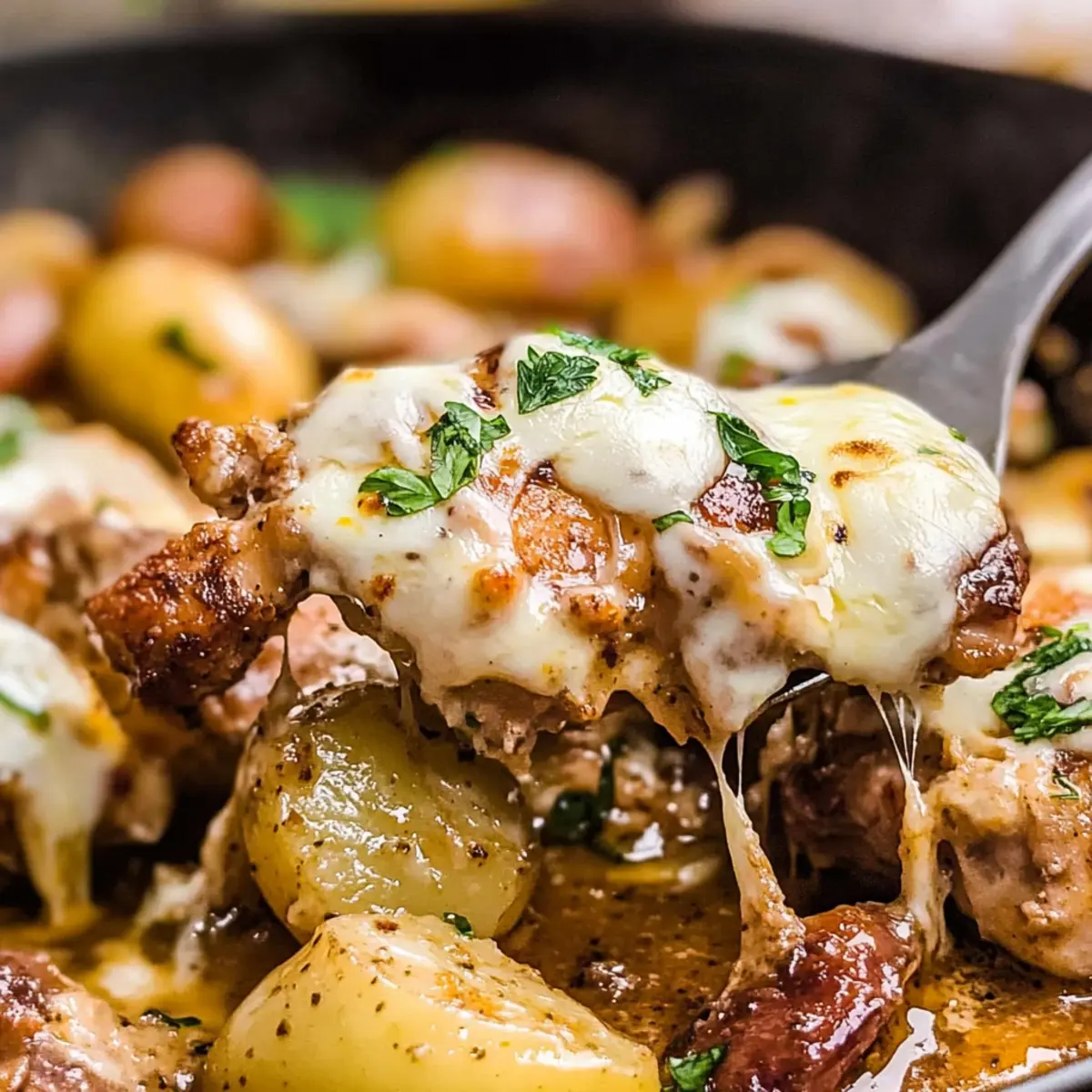 Garlic Parmesan Chicken and Potatoes in One Skillet Bliss
