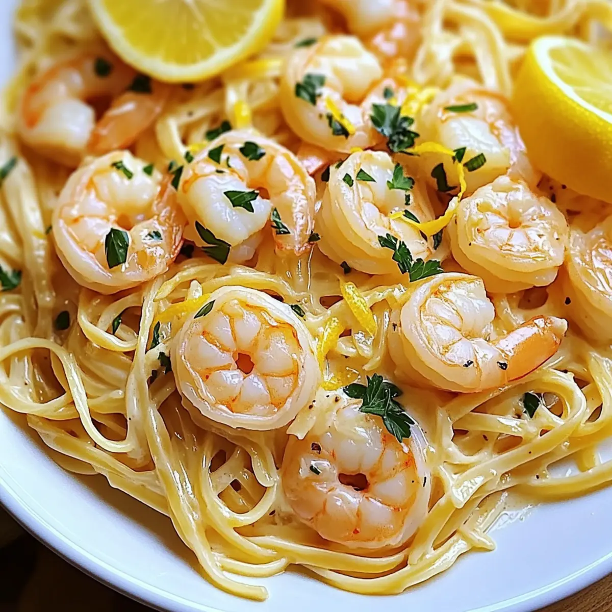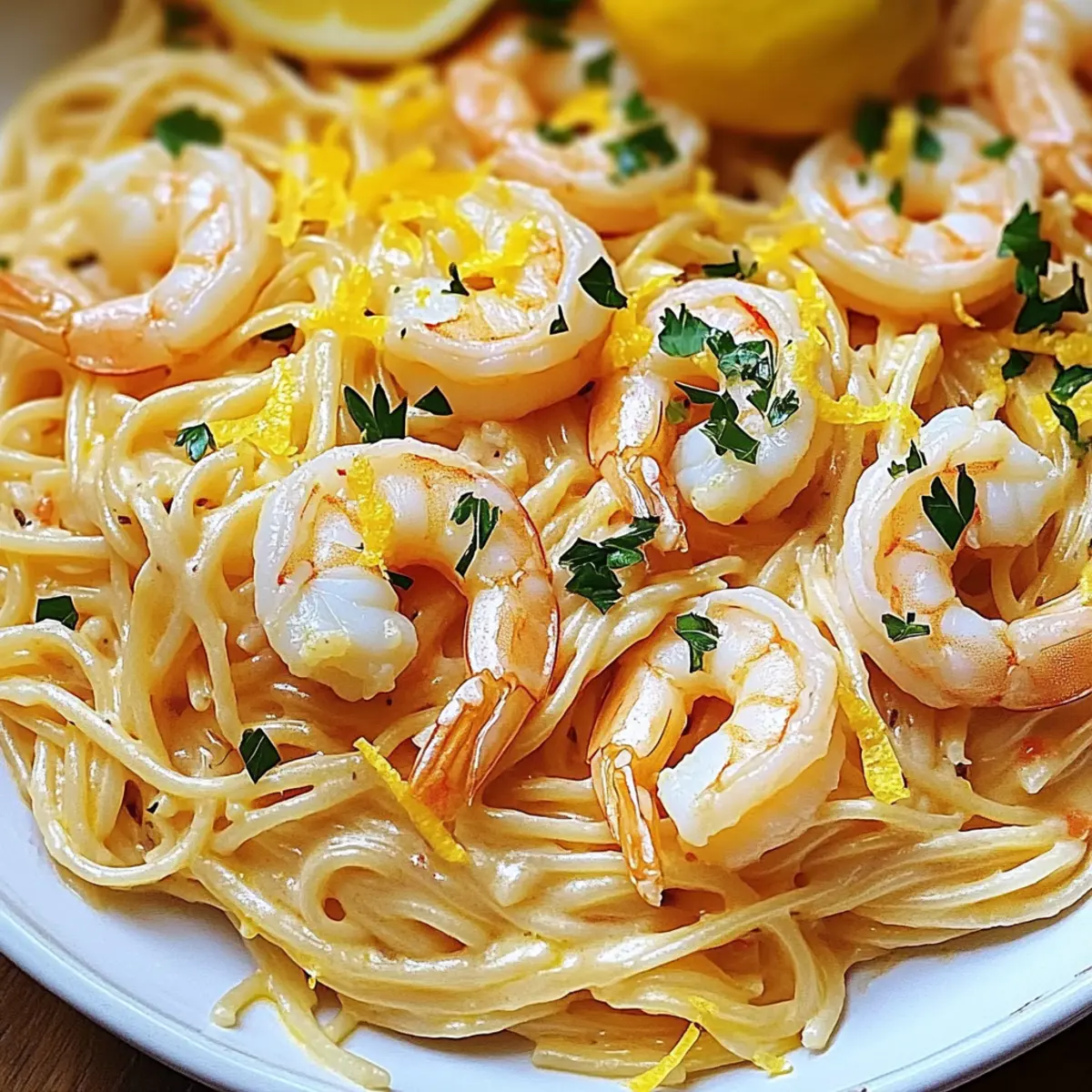 A quick and flavorful dish featuring shrimp and pasta in a zesty garlic and lemon sauce, inspired by Gordon Ramsay.