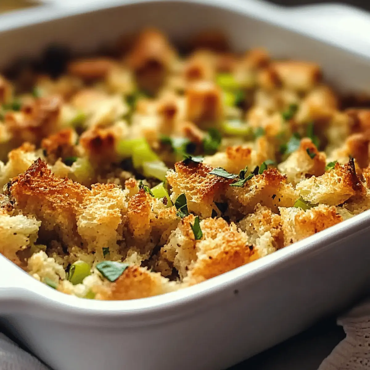 Reheating: To refresh the stuffing, reheat in the oven at 350°F (175°C) for about 20-25 minutes, covered with foil to retain moisture before uncovering for a crisp top in the last 5 minutes.