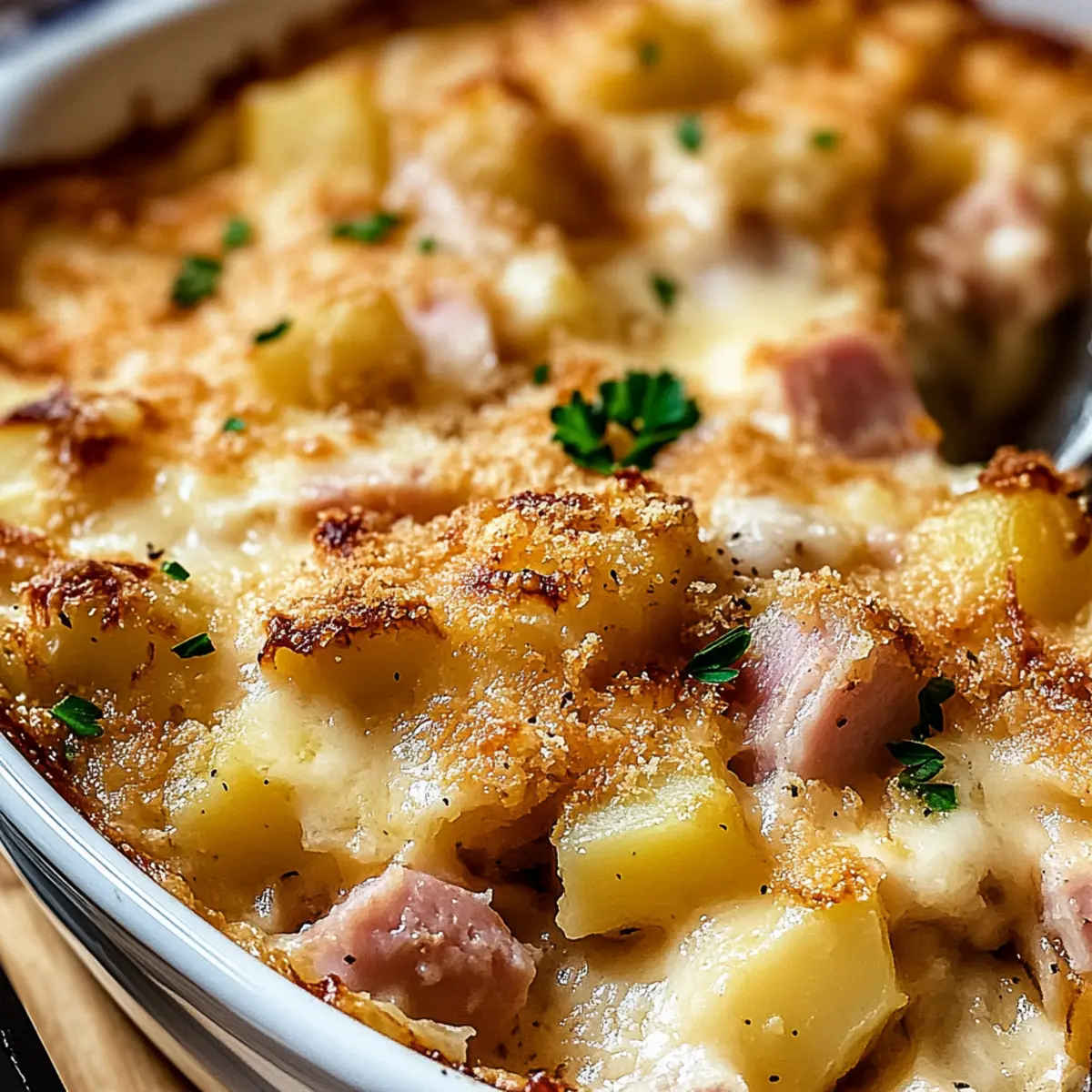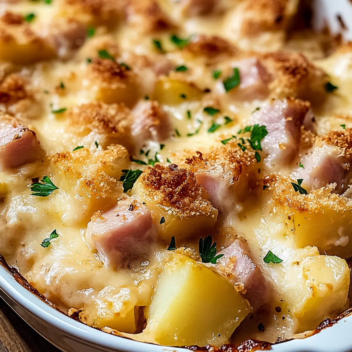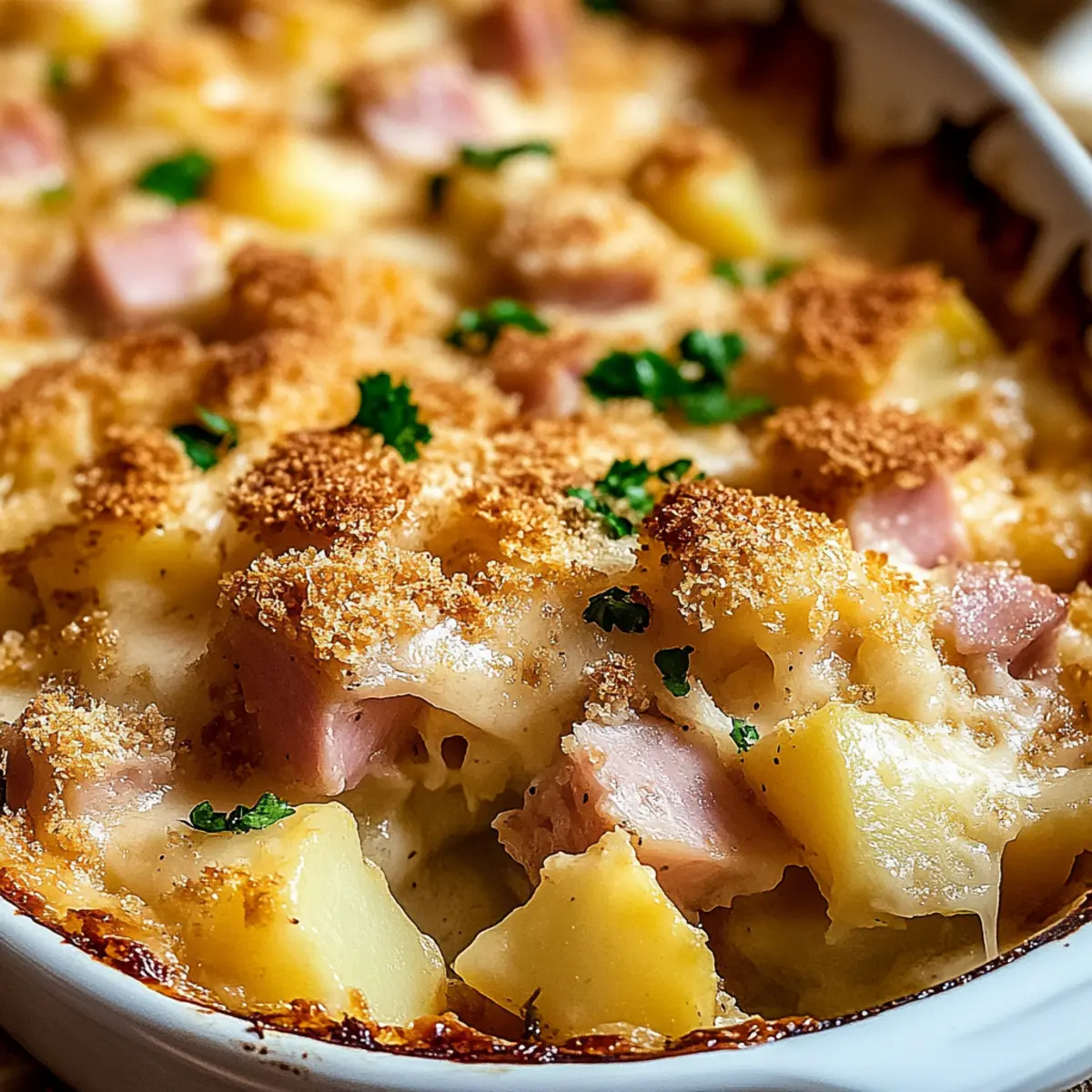 Facebook Twitter Pinterest LinkedInThe aroma of bubbling cheese and tender potatoes fills the kitchen as I pull this creamy ham and potato casserole from the oven. It’s that perfect comfort food, ideal for a cozy night in or a lively family gathering. With the satisfying layers of succulent ham and creamy potatoes, this dish comes together in under two hours, making it an easy crowd-pleaser that appeals to both kids and adults alike. Plus, with its cheesy goodness, you can’t go wrong in turning leftovers into tomorrow’s lunch or even prepping it a day ahead. Are you curious about how to whip up this delightful dish and bring warmth to your table? Let’s dive in! Why is Ham and Potato Casserole a Hit? Comforting flavors wrap you in warmth as you take your first bite, making it the ultimate cozy meal. Easy preparation means you don’t have to fuss all day; perfect for busy weeknights! Versatile variations allow for creativity with ingredients, so feel free to swap in your favorite veggies or cheeses. Crowd-pleaser appeal comes from its cheesy, rich layers that delight both kids and adults alike. Plus, it’s quick to bake – just pop it in the oven and get ready while it cooks away! Whether you serve it with a side salad or crusty bread, this dish shines on any table. Ham and Potato Casserole Ingredients • Here’s everything you need for a deliciously cheesy Ham and Potato Casserole! For the Sauce Unsalted Butter – Adds richness and flavor; feel free to use salted if that’s what you have. Yellow Onion – Provides aromatic sweetness; shallots can be a great milder substitute. All-Purpose Flour – Essential for thickening the sauce; swap with gluten-free flour if desired. Whole Milk or Half-and-Half – Creates that creamy texture; low-fat milk is a lighter option. Chicken Stock/Broth – Adds depth of flavor; use vegetable stock for a vegetarian version. Fine Sea Salt – Enhances overall flavor; adjust based on whether your broth is salted. Ground Black Pepper – Offers essential seasoning; freshly ground provides amazing flavor. Garlic Powder – Adds savory depth; fresh minced garlic can also be an excellent alternative. For the Casserole Russet Potatoes – The main ingredient providing texture; Yukon Gold will give a creamier finish. Diced Cooked Ham – This is your primary protein; substitute with cooked turkey for a lighter dish. Shredded White Cheddar Cheese – Offers a rich, melty topping; any sharp cheese works perfectly for added flavor. Optional Add-Ins Vegetables – Add peas or carrots for extra nutrition and color. Spices – Incorporate paprika or thyme for a delightful flavor twist. Now, gather these ingredients and get ready to create a meal that brings everyone together around the table with your delightful Ham and Potato Casserole! Step‑by‑Step Instructions for Ham and Potato Casserole Step 1: Preheat the Oven Begin by preheating your oven to 400°F (204°C) to ensure it’s perfectly heated for the casserole. While the oven warms up, grab a 9×13-inch baking dish and grease it with a bit of unsalted butter or cooking spray. This will help prevent your delicious ham and potato casserole from sticking! Step 2: Cook the Onions In a medium saucepan, melt 4 tablespoons of unsalted butter over medium heat. Once melted, add the diced yellow onion and sauté for about 5 minutes until they become translucent and fragrant. The onions will add a delightful sweetness to your creamy sauce, setting the stage for the layers of flavor in your ham and potato casserole. Step 3: Make the Sauce Next, sprinkle in 1/4 cup of all-purpose flour, stirring constantly to create a roux. Gradually add 1 cup of whole milk and 1 cup of chicken stock while stirring until the mixture starts to thicken, about 4-5 minutes. You’ll know it’s ready when the sauce coats the back of a spoon. Season it with fine sea salt, ground black pepper, and garlic powder for robust flavor. Step 4: Assemble the Casserole Now it’s time to layer! Place half of the diced Russet potatoes in the greased baking dish, followed by the diced cooked ham. Pour half of the creamy sauce over the potatoes and ham, ensuring an even coating. Repeat with the remaining potatoes, ham, and pour the rest of the sauce on top. This layering technique ensures every bite of your ham and potato casserole is bursting with flavor. Step 5: Bake Cover your baking dish tightly with aluminum foil and bake in the preheated oven for 40-45 minutes. This allows the potatoes to cook and absorb all the flavors. You’ll know it’s time to uncover when the potatoes are tender; you can check by piercing them with a fork. Step 6: Add Cheese and Finish Baking After the initial baking time, carefully remove the foil and sprinkle 1 ½ cups of shredded white cheddar cheese evenly over the top of the casserole. Return the dish to the oven and bake uncovered for an additional 10-15 minutes, or until the cheese is melted, bubbly, and golden brown. This irresistible topping will make your ham and potato casserole even more divine. Step 7: Serve Once baked to perfection, take the casserole out of the oven and let it cool for about 5-10 minutes. This resting time allows the flavors to meld together beautifully. Serve warm to your family, and consider garnishing with fresh herbs for an added touch. Your cozy ham and potato casserole is now ready to enjoy! Ham and Potato Casserole Variations Feel free to sprinkle your culinary magic on this classic dish to suit your taste buds and dietary needs! Cheese Swap: Use mozzarella instead of cheddar for a milder, gooey experience. This creates a lovely cheese pull that kids will love! Veggie Boost: Mix in some peas or diced carrots for added nutrition and a pop of color to brighten up every bite. These veggies can bring a fresh touch without overwhelming the dish. Creamier Option: Swap in cream of mushroom soup for a richer, earthier flavor that complements the ham beautifully. It adds a delightful t