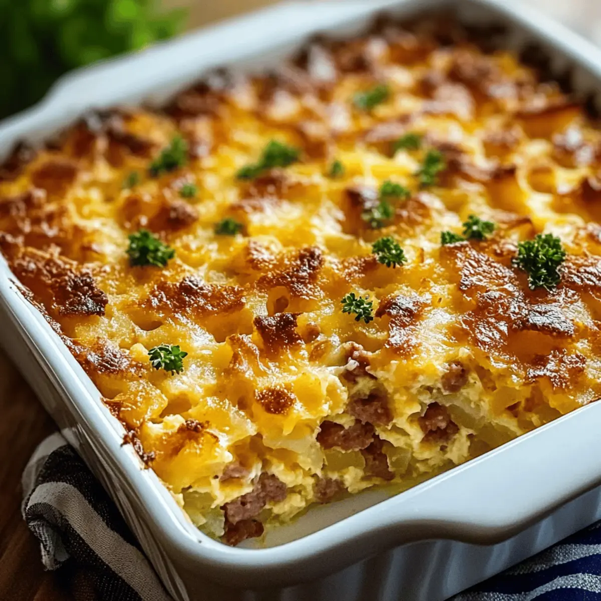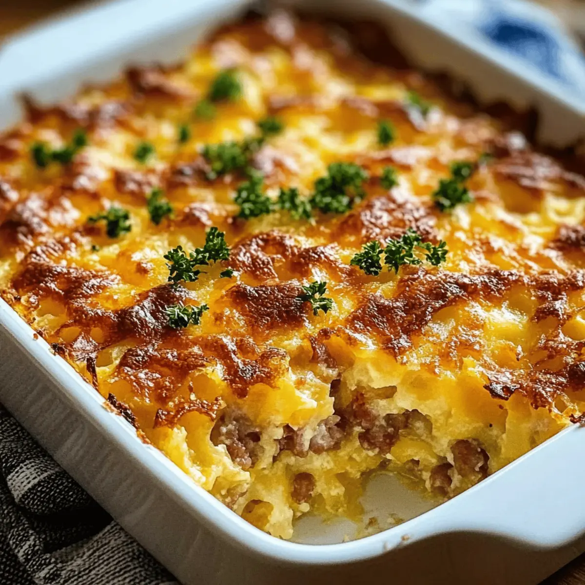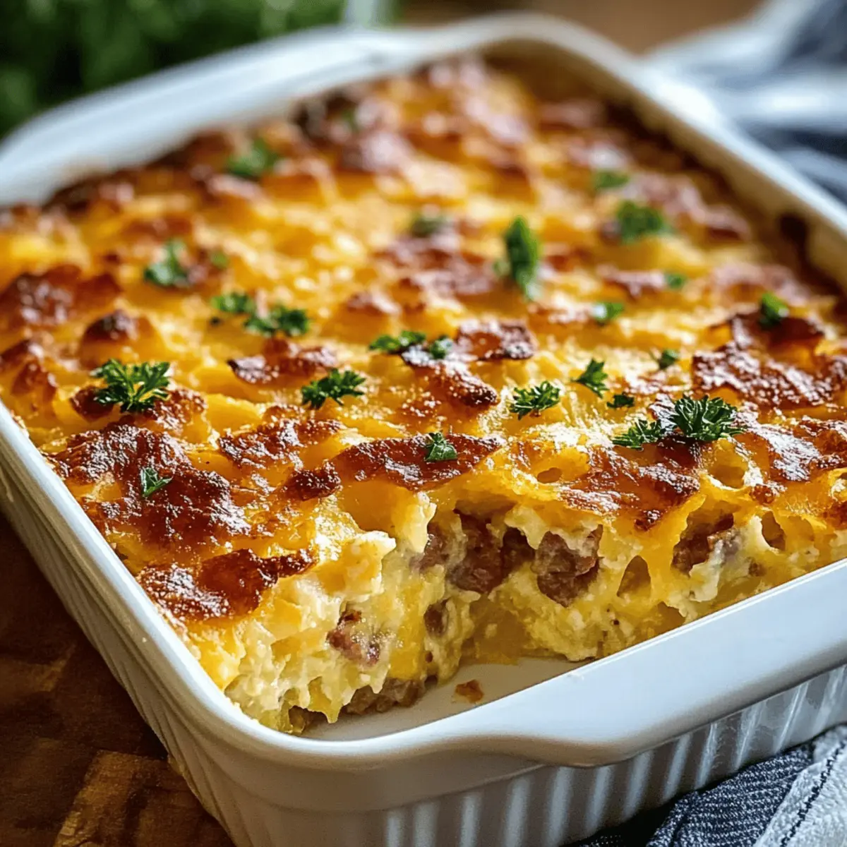 As I flipped through my brunch recipe book on a lazy Sunday morning, I stumbled upon something that felt like a warm hug—the Ultimate Hashbrown Breakfast Casserole. This dish promises to be the star of any gathering, packed with savory sausage, a melty medley of cheese, and crispy hashbrowns that meld together in perfect harmony. Not only is it an approachable recipe, but it also makes for a satisfying, hearty meal that can secretly lift the spirits of everyone at the table. With simple steps and customizable ingredients, it’s ideal for busy mornings when you’re itching for something comforting. Are you ready to transform your brunch game with this cheese-laden delight? Let’s dive in! Why is This Hashbrown Casserole Irresistible? Comforting and Hearty: There’s nothing quite like a warm casserole that envelops you in cozy flavors—perfect for breakfast or brunch. Flavor-Packed: The combination of savory sausage and a medley of melted cheeses locates rich taste in every bite. Versatile: Customize with your choice of veggies or protein, from bell peppers to bacon, accommodating every palate. Easy to Make: With straightforward prep steps, this dish is a breeze, giving you more time to enjoy with family and friends. Crowd-Pleaser: Serve it at gatherings or family brunches, and watch as it quickly disappears—everyone will want seconds! Plus, if you’re keen on more hearty breakfast ideas, check out my Hawaiian Roll Breakfast or Cheesy Hamburger Rice recipes for added variety! Hashbrown Breakfast Casserole Ingredients Get ready to fill your kitchen with the warm, comforting aroma of this delicious dish! For the Casserole • Frozen Hashbrowns – The sturdy base of the casserole that gives it heartiness; fresh potatoes can be used if you’re feeling adventurous. • Breakfast Sausage – Adds savory flavor and protein; try swapping it with turkey or plant-based sausage for a lighter alternative. • Cheddar Cheese – Brings sharp flavor and creaminess; Monterey Jack or a dairy-free cheese serve as suitable substitutes for allergies. • Mozzarella Cheese – Melts beautifully and adds gooeyness; if preferred, use provolone or a vegan cheese alternative. • Large Eggs – Essential for binding the casserole together; replace with flaxseed meal or a commercial egg replacer if needed. • Milk – Enhances the dish’s creaminess; alternatives like almond or oat milk work just as well. • Salt – Elevates the flavors; consider reducing the amount if using salted sausage or cheese. • Black Pepper – Provides mild heat; white pepper offers a subtler alternative. • Garlic Powder – Infuses a delightful taste; fresh minced garlic can also be a wonderful addition. • Bell Peppers (optional) – Brings color and sweetness to the dish; feel free to swap with zucchini or spinach based on preference. • Onions (optional) – Deepens the flavor profile; shallots or green onions can also be used. • Fresh Parsley (optional) – For a final garnish; use chives instead or omit for simplicity. Prepare these ingredients, and your Hashbrown Breakfast Casserole will be a hit at any table! Step‑by‑Step Instructions for Hashbrown Breakfast Casserole Step 1: Preheat the Oven Begin by preheating your oven to 350°F (175°C). This temperature is ideal for allowing your Hashbrown Breakfast Casserole to bake evenly, achieving that perfect balance of crispy top and creamy interior. Make sure to prepare your baking dish while the oven heats up so you can proceed seamlessly. Step 2: Prepare the Baking Dish Grease a 9×13-inch baking dish using cooking spray or a generous pat of butter. This step ensures your casserole releases easily after baking and keeps each bite wonderfully intact. A well-prepped dish makes all the difference in the final presentation of your delicious Hashbrown Breakfast Casserole. Step 3: Layer the Hashbrowns Spread the thawed hashbrowns evenly across the bottom of your greased baking dish. Ensure they’re evenly distributed, creating a solid base for your casserole. The hashbrowns will form the heart of this dish, providing the delightful texture and structure. Step 4: Add the Sausage Crumble the breakfast sausage over the layer of hashbrowns, distributing it evenly. This savory layer infuses the casserole with flavor, complementing the comforting ingredients. The sausage should be cooked beforehand for maximum flavor and safety, ensuring that every bite is packed with richness. Step 5: Mix the Cheese In a mixing bowl, combine half of the cheddar and mozzarella cheeses, creating a gooey, flavorful blend. Sprinkle this cheesy mix generously over the sausage layer. This step enhances the casserole’s richness and adds delicious melty goodness that elevates your Hashbrown Breakfast Casserole to new heights. Step 6: Whisk the Eggs In a separate bowl, whisk together the large eggs, milk, salt, pepper, and garlic powder until smooth and well combined. This egg mixture will act as the binding agent for your casserole, bringing all the delightful layers together as they bake, ensuring each slice holds together beautifully. Step 7: Pour the Egg Mixture Pour the whisked egg mixture evenly over the layered ingredients in the baking dish. Take your time to ensure all layers get a good coating, which will help the flavors meld as your Hashbrown Breakfast Casserole bakes. You’ll see the mixture seep through the layers, creating a cohesive dish. Step 8: Top with Remaining Cheese Sprinkle the remaining cheddar and mozzarella cheeses on top of the casserole. This cheesy topping will create a beautifully golden crust as it bakes, ensuring your casserole not only tastes great but looks tempting and inviting when it comes out of the oven. Step 9: Add Vegetables if Desired If you’re incorporating vegetables such as bell peppers or onions, scatter them over the cheese layer now. This adds freshness and flavor, enriching your Hashbrown Breakfast Casserole with delightful textures and c
