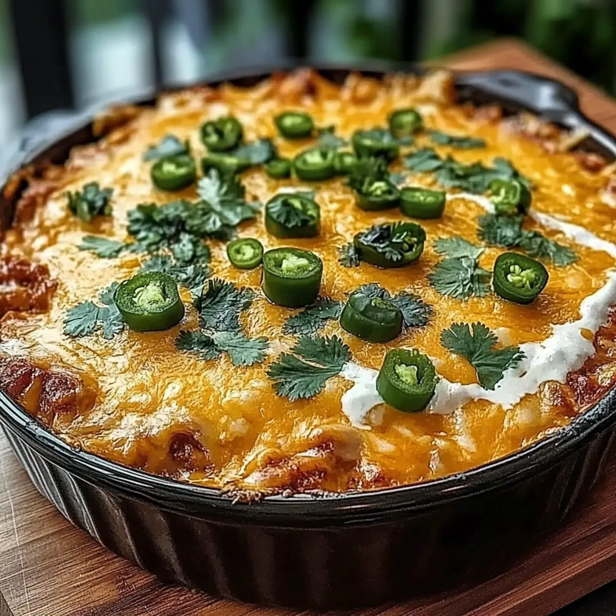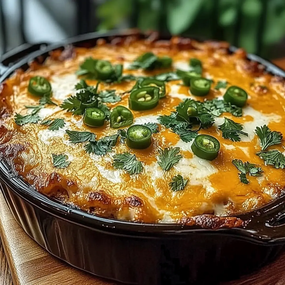 Once baked, carefully remove the skillet from the oven and let the Hatch Chili Chicken Queso Bake rest for about 5 minutes. This resting period allows the flavors to meld and the chicken to retain its juices, resulting in a more satisfying dish. Garnish with freshly chopped cilantro and a squeeze of lime juice before serving to add a refreshing finish.