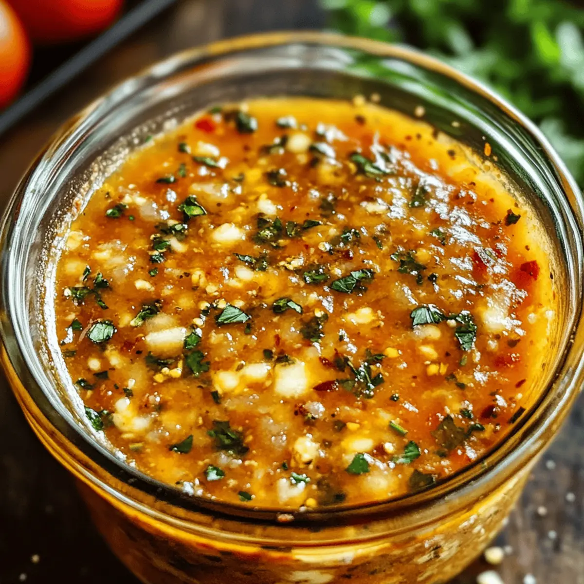 As I stood in my kitchen, a savory aroma filled the air, teasing my senses and drawing me closer to the stove. This was no ordinary evening; I was about to create something special—Heavenly Garlic Pizza Sauce. This luscious sauce transforms a simple pizza into a masterpiece, marrying the vibrant essence of fresh garlic with the richness of butter and olive oil. Quick to prepare, it’s the perfect solution for both busy weeknights and gatherings with friends. Not only is it versatile enough to elevate pasta or bruschetta, but it also means saying goodbye to bland, store-bought sauces forever. So, are you ready to dive into this garlic-infused delight? Let’s get cooking! Why is garlic the secret ingredient? Rich, Aromatic Bliss: This Heavenly Garlic Pizza Sauce brings an irresistible aroma to your kitchen that will have everyone racing to the table. Versatile Wonder: Use it not just for pizzas, but as a memorable dip for bread or an enhancement for pastas. It’s a real crowd-pleaser! Quick and Easy: Perfect for busy weeknights, it only takes a few minutes to whip up, leaving you more time to enjoy with family or friends. Preservative-Free: Unlike store-bought options, this homemade sauce allows you to control quality and freshness, ensuring each bite is as wholesome as can be. Flavor Packed: Sautéed to perfection, the garlic melds beautifully with the rich butter and olive oil, creating a truly divine taste sensation that’ll make your meals unforgettable. For a delightful pairing, try serving it alongside a warm loaf of Cheesy Garlic Bread for a complete culinary experience! Heavenly Garlic Pizza Sauce Ingredients For the Sauce • Fresh Garlic – Essential for flavor; raw garlic brings a robust taste, making this homemade sauce truly heavenly. • Olive Oil (Extra Virgin) – Provides richness; enhances flavor profile, but swapping regular olive oil will result in a milder taste. • Unsalted Butter – Adds creaminess, allowing for flavor control; use vegan butter for a dairy-free alternative. • Sea Salt – Enhances overall flavors; adjust according to your personal taste preferences. • Black Pepper – Balances the richness of the sauce with subtle heat, perfect for enhancing the garlic. • Dried Oregano – A traditional pizza herb that contributes an earthy flavor; consider fresh oregano for a brighter taste. • Red Pepper Flakes (Optional) – Adds spice; adjust according to preference or omit for a milder sauce. • Fresh Parsley – For garnish; it adds a pop of color and freshness, or swap with fresh basil for a different herbaceous note. • Lemon Juice – Brightens the sauce; best added at the end to retain its freshness, though lime juice works as an alternative. Step‑by‑Step Instructions for Heavenly Garlic Pizza Sauce Step 1: Prepare Garlic Start by peeling and finely mincing about 1 cup of fresh garlic, which should be around 10-12 cloves. This step is crucial for achieving that rich flavor; the smaller the pieces, the better the garlic will meld into the sauce. Set the minced garlic aside as you prepare to create the sauce. Step 2: Melt Butter In a medium saucepan, place ¼ cup of unsalted butter and heat it over medium heat. Stir occasionally until the butter melts completely and begins to bubble gently, which should take about 2-3 minutes. The melted butter will serve as a luscious base for your Heavenly Garlic Pizza Sauce. Step 3: Add Olive Oil Once the butter is melted and bubbling, stir in ½ cup of extra virgin olive oil. Mix them well to combine, allowing the flavors to marry together beautifully. This fusion will enhance the sauce’s richness, providing a silky texture perfect for coating your pizza. Step 4: Sauté Garlic With the butter and olive oil mixture ready, add the minced garlic to the saucepan. Sauté on low heat for 1-2 minutes, stirring frequently, until the garlic is fragrant and golden but not burnt. This careful cooking is essential to bring out the best flavors of your Heavenly Garlic Pizza Sauce. Step 5: Season the Sauce Next, stir in 1 teaspoon each of sea salt, black pepper, and dried oregano. If you enjoy a bit of spice, add a pinch of red pepper flakes at this stage. Allow the sauce to simmer on low heat for about 5 minutes, letting the seasonings meld beautifully with the garlic and fats. Step 6: Finish with Lemon Juice Remove the saucepan from heat and carefully stir in 1 tablespoon of fresh lemon juice. This addition will brighten the overall flavor of your Heavenly Garlic Pizza Sauce, balancing the richness from the butter and olive oil. Make sure to mix it thoroughly for even distribution. Step 7: Garnish and Cool Let the sauce cool in the saucepan for a few minutes before transferring it to a serving bowl or an airtight container. If desired, garnish with freshly chopped parsley for a pop of color and freshness. Allow it to cool completely before using or storing for optimal flavor retention. Storage Tips for Heavenly Garlic Pizza Sauce Fridge: Store your Heavenly Garlic Pizza Sauce in an airtight container for up to one week. Let it cool completely before sealing to avoid condensation that can spoil the sauce. Freezer: For longer storage, freeze the sauce in ice cube trays for easy portioning. It can last up to three months in the freezer, making it perfect for quick meals. Reheating: When ready to use, simply thaw in the fridge overnight or heat directly from frozen in a saucepan over low heat, stirring until warmed through. Avoiding Spoilage: To maximize freshness, keep the sauce covered and refrain from introducing contaminants, ensuring every spoonful maintains its rich flavor and quality. Expert Tips for Heavenly Garlic Pizza Sauce • Fresh Garlic Matters: Always use fresh garlic to achieve the best flavor; pre-minced options lack that vibrant punch and aroma essential for this sauce. • Sauté Wisely: To prevent bitterness, sauté garlic on low heat and stay vigilant—remove it from heat once it’s golden,