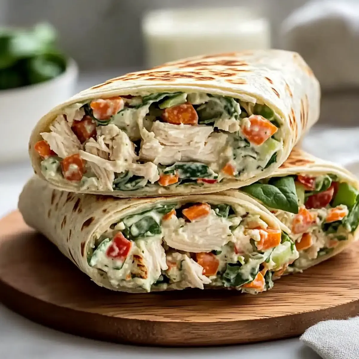 • Mind the Fill: Stick to 1-1.5 cups of chicken salad per tortilla to avoid spills. Overfilling can make rolling and eating a messy experience.