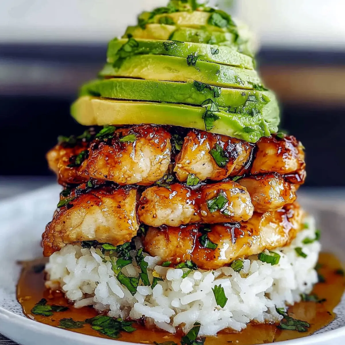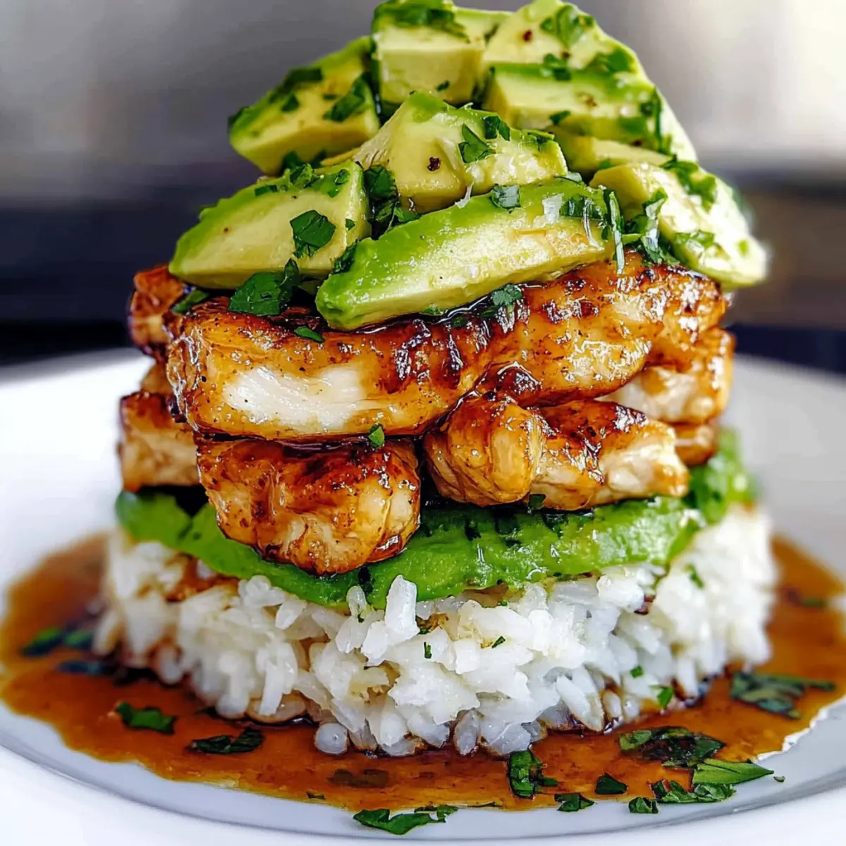 Facebook Twitter Pinterest LinkedInAs I sliced into the tender, caramelized chicken, the sweet aroma of honey and zesty lime filled my kitchen, transporting me to a sunny tropical getaway. This Honey Lime Chicken & Avocado Rice Stack is not just a dish; it’s an experience that beautifully combines vibrant flavors and stunning presentation. It’s perfect for anyone tired of fast food, offering a healthy, gluten-free option that’s surprisingly simple to whip up at home. With just a few ingredients, you can impress your loved ones with restaurant-quality plating that feels like a culinary triumph. Plus, the rich, creamy avocado adds a delightful contrast to the zesty rice and savory chicken. So, are you ready to elevate your dinner game with this colorful stack? Why Is This Dish So Special? Vibrant flavors explode in every bite with the delightful combination of honey and lime that will transport you to a sun-soaked paradise. Easily accessible ingredients mean you can create this restaurant-quality meal right at home without fuss. Healthy indulgence is key here; it’s gluten-free, protein-packed, and a feast for both the eyes and the palate. Visual appeal takes center stage with its elegant layering, making dinner feel extra special. For a quick meal prep, you can make it in advance and just assemble when ready. Pair it with a light salad or try it alongside a flavorful Chicken Avocado Melt for a delicious dinner experience. Honey Lime Chicken & Avocado Rice Stack Ingredients For the Chicken Boneless Skinless Chicken Breasts – The key protein source, delivering a satisfying bite; for more juiciness, opt for chicken thighs. Honey – Contributes sweetness and helps achieve a delicious caramelized glaze; substitute with maple syrup for a vegan twist. Lime Juice – Adds fresh acidity that brightens the dish’s flavor; fresh lime juice is preferred for optimal taste. Lime Zest – Intensifies the lime essence and aroma; use zest from organic limes to avoid pesticides. Garlic Cloves – Adds depth to the glaze’s flavor profile; fresh garlic is best, but garlic powder can work in a pinch. Salt and Pepper – Essential for enhancing flavors; adjust to your taste preferences. For the Rice Cooked Rice – Acts as a hearty base; choose white rice, brown rice, or quinoa for a gluten-free alternative. Fresh Coriander – Infuses dish with herbaceous freshness; parsley makes a suitable substitute if needed. For the Topping Ripe Avocados – Adds creamy texture that balances the dish; ensure they are ripe for the best experience. Assemble this vibrant Honey Lime Chicken & Avocado Rice Stack for a dinner-worthy look that tastes as good as it appears! Step‑by‑Step Instructions for Honey Lime Chicken & Avocado Rice Stack Step 1: Season the Chicken Begin by generously seasoning both sides of the boneless skinless chicken breasts with salt and pepper. Let them sit for about 10 minutes at room temperature to enhance their flavor and ensure they cook evenly. This initial step sets the stage for the scrumptious Honey Lime Chicken & Avocado Rice Stack you’re about to create. Step 2: Prepare the Honey Lime Glaze In a small mixing bowl, whisk together honey, freshly squeezed lime juice, lime zest, and minced garlic until smooth. The glaze should have a balanced sweetness and a zesty tang. This flavorful mixture will add a delicious caramelization to the chicken as it cooks, elevating your Honey Lime Chicken & Avocado Rice Stack with a glossy finish. Step 3: Cook the Chicken Heat a skillet over medium-high heat and add a drizzle of neutral oil, swirling to coat the pan. Once hot, carefully place the seasoned chicken breasts in the skillet. Cook for about 6-7 minutes on each side, until they are golden brown and have an internal temperature of 71°C (165°F). This step ensures your chicken is juicy and has a lovely sear for the stack. Step 4: Glaze the Chicken In the final 2 minutes of cooking, generously brush the honey lime glaze over the chicken breasts. This will create a beautiful caramelized layer that enhances the flavors and appearance. Turn the chicken occasionally to ensure even coating and prevent burning on the skillet. The enticing aroma of the glaze will fill your kitchen and signal that your Honey Lime Chicken is nearly ready. Step 5: Let It Rest Once cooked, remove the chicken from the skillet and place it on a cutting board. Allow it to rest for 5 minutes; this step helps the juices redistribute, making for more succulent slices. Meanwhile, this provides the perfect opportunity to prepare the rice and avocado for your Honey Lime Chicken & Avocado Rice Stack. Step 6: Prepare the Rice While the chicken rests, combine your cooked rice with chopped fresh coriander and a squeeze of lime juice in a mixing bowl. Season with salt to taste, mixing well to combine all the bright flavors. The seasoned rice will be the base layer of your savory and vibrant Honey Lime Chicken & Avocado Rice Stack. Step 7: Slice the Avocados Take your ripe avocados and carefully slice them in half, remove the pit, and scoop the flesh out. Slice the avocado into thin pieces and lightly toss them with a bit of lime juice, salt, and pepper to maintain their color and enhance their creaminess. The avocado will add a delightful texture contrast to the stack. Step 8: Assemble the Stack Using a ring mold or a large cookie cutter, start assembling your Honey Lime Chicken & Avocado Rice Stack. Begin with a layer of the flavorful rice, followed by the sliced avocados, and finally, add the sliced honey lime chicken on top. Carefully remove the mold and drizzle any remaining glaze around the plate for a beautiful presentation. Step 9: Serve Immediately Once assembled, serve your stunning Honey Lime Chicken & Avocado Rice Stack immediately for the best experience. The combination of the caramelized chicken, creamy avocado, and zesty rice creates a mouthwatering dish that you and your loved ones will enjoy. Don’t forget to r