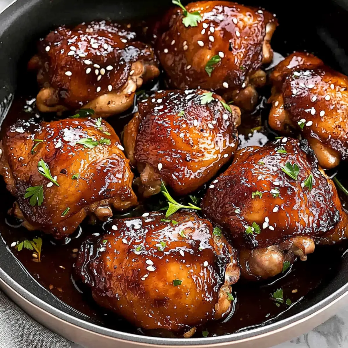 Facebook Twitter Pinterest LinkedInAs I stood in my kitchen, a delightful aroma wafted through the air, wrapping itself around me like a warm hug. That’s when I realized I was in for a treat: Honey Soy Baked Chicken Thighs! This quick dinner recipe transforms mere chicken into a sticky, savory masterpiece that your family will adore. Perfect for those bustling weeknights, you can have this juicy dish on the table in under 30 minutes. With the option to swap in chicken breasts if you prefer, and a marinade that infuses each bite with mouthwatering flavor, this is not just a meal; it’s a proclamation of love for homemade food. Ready to impress your taste buds and reclaim your evenings from fast food? Let’s dive into this approachably delicious recipe! Why You’ll Crave These Chicken Thighs? Quick & Easy: This recipe allows you to whip up tender chicken in just 30 minutes, perfect for busy weeknights! Flavor Explosion: The honey soy marinade creates a delicious balance of sweet and savory that will have you savoring every bite. Versatile Options: Easily substitute chicken thighs for breasts or drumsticks, adapting the recipe to your taste and what you have on hand. Healthy Twist: Enjoy a low-sodium option using tamari, making this dish a wholesome choice for your family. Crowd-Pleaser: Whether it’s a cozy family dinner or a gathering, these thighs will surely wow your guests and leave them asking for seconds. Pair with a refreshing salad or some garlic butter rice for a complete meal that feels special yet requires minimal effort! Honey Soy Baked Chicken Thighs Ingredients • To create this mouthwatering dish, gather these simple yet vital ingredients! For the Marinade Honey – A natural sweetener that enhances the chicken’s glaze; substitute with agave or maple syrup for a twist. Low Sodium Soy Sauce – Provides that essential umami flavor without overly high sodium; tamari is a good gluten-free alternative. Green Onions – Offers a mild onion flavor, bringing a fresh note; finely chopped shallots can work as a substitute. Cooking Oil (Vegetable or Canola) – This keeps the chicken moist while baking; use olive oil or coconut oil for a different taste. Garlic (minced) – Infuses every piece with rich flavor; feel free to up the amount if you’re a garlic lover! White Vinegar (Optional) – Brightens the marinade; apple cider vinegar can be used, or simply skip it for less tang. Sesame Oil (Optional) – Adds an enticing nuttiness and depth; omit if you don’t have any on hand. Fresh Minced Ginger – Gives a lovely aromatic kick; ground ginger can serve as a good alternative when fresh isn’t available. For the Chicken Skinless Boneless Chicken Thighs (2.5 lbs) – The star of the show, these stay juicy and flavorful; chicken breasts work but may dry out. Salt & Pepper – Essential for seasoning; adjust to taste for perfectly balanced flavor. For Garnish Fresh Parsley – Adds a pop of color and freshness; swap for cilantro or green onions if you like! Now that you have all the ingredients needed for these scrumptious Honey Soy Baked Chicken Thighs, let’s move on to putting this delightful dish together! Step‑by‑Step Instructions for Honey Soy Baked Chicken Thighs Step 1: Combine Marinade In a mixing bowl, whisk together ½ cup honey, ¼ cup low sodium soy sauce, 2 chopped green onions, 1 tablespoon vegetable oil, 3 cloves minced garlic, 1 tablespoon white vinegar (if using), 1 tablespoon sesame oil (optional), and 1 tablespoon fresh minced ginger. This flavorful honey soy marinade will infuse your chicken thighs with sweetness and zest. Set aside while you prepare the chicken. Step 2: Prepare Chicken Take 2.5 pounds of skinless boneless chicken thighs and pat them dry with paper towels. Trim any excess fat, then season generously with salt and pepper. Place the chicken in a large resealable plastic bag or shallow dish, pouring the honey soy marinade over it. Ensure the chicken is thoroughly coated, and marinate for at least 30 minutes—longer if possible for richer flavor; overnight is ideal. Step 3: Preheat Oven Preheat your oven to 425°F (220°C). This high temperature is essential for achieving those perfectly baked, juicy Honey Soy Baked Chicken Thighs with a caramelized exterior. As the oven heats, let the marinating chicken come to room temperature for even cooking. Step 4: Bake Chicken Transfer the marinated chicken thighs along with the sauce to a cast-iron skillet or a baking dish. Spread them out in a single layer to ensure even cooking. Bake in the preheated oven for 20-25 minutes, flipping the chicken thighs halfway through to maintain moisture. The internal temperature should reach 165°F (70°C) when perfectly cooked. Step 5: Broil for Finish Once baked, switch your oven to broil on high and broil the chicken for an additional 5 minutes. Keep a close eye on them as they cook, allowing the chicken to caramelize beautifully, developing a golden-brown color with slightly charred edges. This step enhances the sticky glaze of your Honey Soy Baked Chicken Thighs. Step 6: Serve and Garnish Remove the chicken from the oven and let it rest for a few minutes before serving. Garnish with freshly chopped parsley for a touch of color and flavor. Serve your mouthwatering Honey Soy Baked Chicken Thighs over steamed rice, cauliflower rice, or mashed potatoes, drizzling with the delicious pan juices to elevate every bite. Honey Soy Baked Chicken Thighs Variations Feel free to get creative with this recipe and tailor it to suit your taste buds! Dairy-Free: Replace any butter or cream with olive or coconut oil to keep it dairy-free without losing flavor. Nutritional Boost: Add a tablespoon of chia seeds to the marinade for an extra dose of fiber and omega-3 fatty acids. Spicy Kick: For some heat, incorporate chili flakes or a dash of Sriracha into the marinade, elevating the flavor profile significantly! Different Cuts: Swap out the chicken thighs for tender drumst