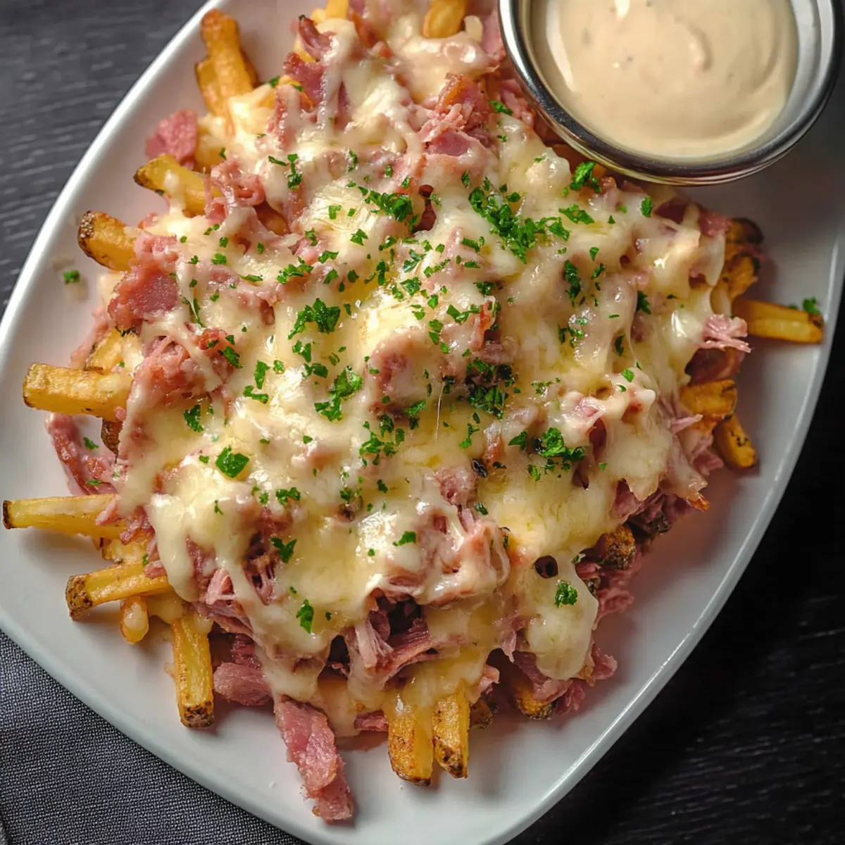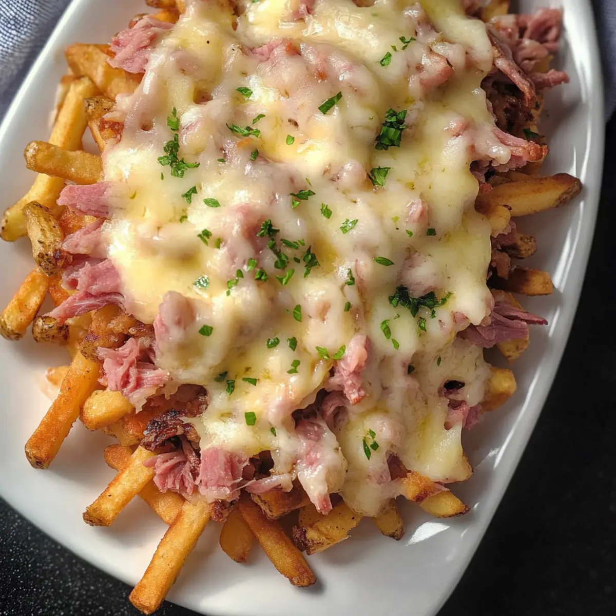 Facebook Twitter Pinterest LinkedInAs I tossed around ideas for a festive gathering, my kitchen was infused with the inviting aroma of corned beef and melting cheese. What better way to honor St. Patrick’s Day than by putting a playful twist on a beloved classic? Enter my Irish Nachos, featuring crisp waffle fries instead of traditional tortilla chips, piled high with savory corned beef, zesty sauerkraut, and rich Emmental Swiss cheese. This recipe not only celebrates the comforts of home-cooked food, but it also whisks you away on a delightful culinary journey that’s quick to prepare—perfect for spontaneous get-togethers or cozy nights in. Whether you’re looking for a unique party appetizer or a fun way to utilize those corned beef leftovers, these nachos are bound to impress. Ready to elevate your snack game? Let’s dive into this mouthwatering creation! Why Try These Irish Nachos? Unique Twist: Instead of standard tortilla chips, crispy waffle fries create a playful and exciting base that will surprise your guests. Savory Goodness: The savory corned beef combined with tangy sauerkraut and melty cheese promises to be a flavor explosion—a taste of comfort in every bite. Party Ready: This dish is perfect for gatherings; quick to assemble and customize, it’s sure to delight everyone around the table. Festive Appeal: Ideal for St. Patrick’s Day, these nachos celebrate tradition while offering a fun, modern update. Easy Preparation: With just a few steps, these nachos transform from ordinary to extraordinary, making them a go-to for last-minute snacking. Whether you’re looking to impress at a party or enjoy a cozy evening, this recipe is a fantastic way to enjoy your leftover corned beef! To make your event even more special, check out our tips on party appetizers. Irish Nachos Ingredients For the Base Waffle Fries – A crispy foundation that provides delightful texture; for best results, use Alexia brand. For the Toppings Corned Beef – This savory protein adds rich flavor and is perfect for using up leftovers from traditional meals. Sauerkraut – A tangy addition that balances the richness of corned beef and cheese; choose any brand to suit your taste. Emmental Swiss Cheese – Melts beautifully with a mild, buttery flavor; Gruyère can be substituted for a stronger taste. For the Dressing Homemade Thousand Island Dressing – Brings all the flavors together, enhancing the Reuben theme; store-bought can work in a pinch. Embrace this delightful creation of Irish Nachos for a unique appetizer that promises to liven up any gathering! Step‑by‑Step Instructions for Irish Nachos Step 1: Prepare Fries Start by preheating your oven to 425°F (220°C). Spread the waffle fries in a single layer on a baking sheet lined with parchment paper. Bake according to the package instructions until they’re golden brown and crispy, usually around 20-25 minutes. Keep an eye on them, giving a gentle shake halfway through for even cooking. Step 2: Layer Ingredients Once your waffle fries are cooked to perfection, remove them from the oven and immediately top them with generous portions of chopped corned beef and sauerkraut. Spread the toppings evenly across the fries, ensuring each bite is packed with flavor. The heat from the fries will help warm the toppings slightly, merging the tastes beautifully. Step 3: Add Cheese Now, it’s time to sprinkle a hearty layer of shredded Emmental Swiss cheese over your corned beef and sauerkraut. Aim for an even distribution to ensure the cheese melts perfectly, creating a creamy topping for your Irish nachos. You’ll want to use enough cheese to cover the ingredients without overwhelming them—about 1-2 cups should do the trick nicely. Step 4: Melt Cheese Return the loaded baking sheet back to the oven for an additional 5-7 minutes, or until the cheese is melted, bubbly, and slightly golden. Keep a close watch to avoid burning the cheese; it should be ooey-gooey and inviting. As it cooks, you’ll notice that wonderful aroma filling your kitchen, signaling that your Irish nachos are nearly ready. Step 5: Serve with Dressing Once the cheese has reached that perfect state of melty goodness, carefully take the nachos out of the oven. Drizzle your homemade Thousand Island dressing generously over the hot nachos, adding that tangy finish that complements the flavors. Allow the dish to cool for just a minute or two before serving to avoid any spills. Step 6: Garnish and Enjoy For an extra touch, consider garnishing with chopped chives or green onions for a pop of color and added flavor. Serve your Irish nachos warm and fresh, inviting everyone to dig in and enjoy this creative twist on a comfort food classic! Make Ahead Options These Irish Nachos are perfect for meal prep, allowing you to save valuable time during busy weeknights or festive gatherings! You can assemble the waffle fries, corned beef, and sauerkraut up to 24 hours in advance. Just layer the fries on a baking sheet, then top with the corned beef and sauerkraut; cover and refrigerate to keep everything fresh. The key to maintaining quality is to sprinkle the cheese just before baking, ensuring it melts beautifully. When you’re ready to serve, simply add the cheese and bake in a preheated oven for 5-7 minutes until bubbly and golden—resulting in delicious, stress-free Irish Nachos that everyone will love! How to Store and Freeze Irish Nachos Room Temperature: Enjoy your Irish nachos fresh from the oven for the best flavor and texture. If leftovers remain, they can sit at room temperature for no more than 2 hours. Fridge: Store leftovers in an airtight container in the refrigerator for up to 3 days. To reheat, place them on a baking sheet in the oven at 350°F (175°C) until warmed through and cheese is melted. Freezer: For longer storage, freeze assembled but unbaked nachos wrapped tightly in plastic wrap and aluminum foil for up to 2 months. Bake directly from the freezer, allowing for 