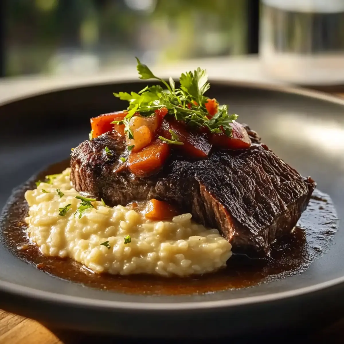 Facebook Twitter Pinterest LinkedInWhen the aroma of slow-cooked Italian Pot Roast fills the air, it feels like a warm embrace that draws family and friends to the table. This dish pairs tender, beautifully braised beef with the creamy allure of Parmesan risotto, creating a heartwarming fusion that redefines comfort food. What I love most about this Italian Pot Roast and Parmesan Risotto is not only how effortlessly it melds deeply satisfying flavors, but also that it’s quicker to prepare than you might think—perfect for those cozy evenings at home or casual gatherings. Whether you’re an experienced home chef or just starting out, this recipe is an invitation to explore the rich traditions of Italian cooking without sacrificing your valuable time. So, are you ready to dive into a bowl of irresistible comfort? Why is This Recipe So Irresistible? Simplicity: You won’t need advanced culinary skills to bring this dish to life. Rich, Savory Flavor: The combination of braised beef, garlic, and tomatoes creates an unforgettable taste that warms the heart. Creamy Texture: The Parmesan risotto melts in your mouth, enhancing the overall dining experience. Versatile Ingredients: Feel free to substitute meats or make it vegetarian, catering to all dietary preferences! Pair it with a side of Italian Tortellini Pasta for a delightful meal. Quick-Cooking: Surprisingly faster than many comfort food recipes, it’s perfect for weeknights or casual get-togethers. Crowd-Pleaser: This dish offers the perfect combination of flavors that will leave your loved ones asking for seconds! Italian Pot Roast Parmesan Risotto Ingredients For the Pot Roast Beef Chuck Roast – This is your main protein, lending savory flavor and tenderness; feel free to substitute with pork shoulder or chicken for a different twist. Olive Oil – Essential for searing the roast and sautéing your aromatic vegetables, giving depth to the dish. Onion – Choose yellow or sweet onions to add sweetness and wonderful depth of flavor. Garlic – Fresh garlic enhances the dish’s flavor; don’t skimp on it! Red Wine – Ideal for deglazing the pan and adding complexity; broth works as a great non-alcoholic substitute. Beef Broth – Use as the braising base; vegetable broth is perfect for a vegetarian alternative. Diced Tomatoes – Bring acidity and moisture; either fresh or canned will do the trick. Italian Seasoning – A mix of herbs for that authentic Italian flavor; can be substituted with individual herbs like oregano and basil. For the Risotto Arborio Rice – Key for creating that creamy risotto texture, but Carnaroli rice can also work for a luxurious finish. Chicken Broth – Ensure it’s warmed before adding to the risotto for a smooth consistency. Butter – Adds richness and flavor; ghee can substitute for a lactose-free option. Grated Parmesan Cheese – Use freshly grated for superior creaminess and umami; a must-have for the best risotto. Fresh Parsley – A vibrant garnish that adds freshness; it really brightens up the dish! Step‑by‑Step Instructions for Italian Pot Roast Parmesan Risotto Step 1: Sear the Roast Heat a large Dutch oven over medium-high heat and add a generous drizzle of olive oil. Once the oil shimmers, season the beef chuck roast with salt and pepper and sear it for about 4-5 minutes per side until beautifully browned. This step is essential for sealing in those savory juices, so don’t rush it! Step 2: Sauté Aromatics Remove the browned roast from the pot and set it aside on a plate. In the same pot, add chopped onions and minced garlic. Sauté the mixture for about 5 minutes, stirring frequently until the onions are translucent and fragrant. This builds the rich flavor foundation for your Italian Pot Roast Parmesan Risotto. Step 3: Deglaze the Pot Pour in red wine to deglaze the pot, using a wooden spoon to scrape up any delicious browned bits stuck to the bottom. Allow the wine to simmer for 2-3 minutes until it reduces slightly. This step enhances the depth of flavor in your pot roast, making the dish even more irresistible. Step 4: Braise the Roast Stir in beef broth, diced tomatoes, and Italian seasoning until combined. Return the seared roast to the pot, ensuring it’s immersed in the liquid. Cover the pot with a lid, reduce the heat to low, and let it simmer for 2 hours or until the meat is fork-tender. Your kitchen will be filled with delightful aromas! Step 5: Prepare the Risotto While the roast is cooking, melt butter in a separate saucepan over medium heat. Add Arborio rice, stirring frequently for 2-3 minutes to toast the grains lightly. This step is crucial for achieving that creamy texture in your risotto, which beautifully complements the Italian Pot Roast. Step 6: Incorporate Broth Gradually Begin slowly adding warmed chicken broth to the rice, one ladle at a time, stirring constantly. Allow each addition to be absorbed before adding the next, which should take about 20-30 minutes. Keep stirring to achieve that lovely creamy consistency that makes risotto so comforting and flavorful. Step 7: Finish the Risotto Once the risotto is creamy and the rice is al dente, stir in the grated Parmesan cheese until melted and fully incorporated. Keep your risotto warm on low heat while ensuring it retains its luscious texture. This cheesy addition takes your Parmesan risotto to the next level, making it a perfect match for the pot roast. Step 8: Serve and Garnish When the pot roast is tender, slice it into thick pieces to serve. Plate the warm, creamy risotto alongside, and garnish everything with fresh parsley for a pop of color. This Italian Pot Roast Parmesan Risotto is now ready to enjoy, offering a heartwarming meal that brings family together. Make Ahead Options Prepare for an easier meal by making components of this Italian Pot Roast & Parmesan Risotto in advance! You can sear the beef chuck roast and sauté the onions and garlic up to 24 hours ahead of time. Store the sautéed