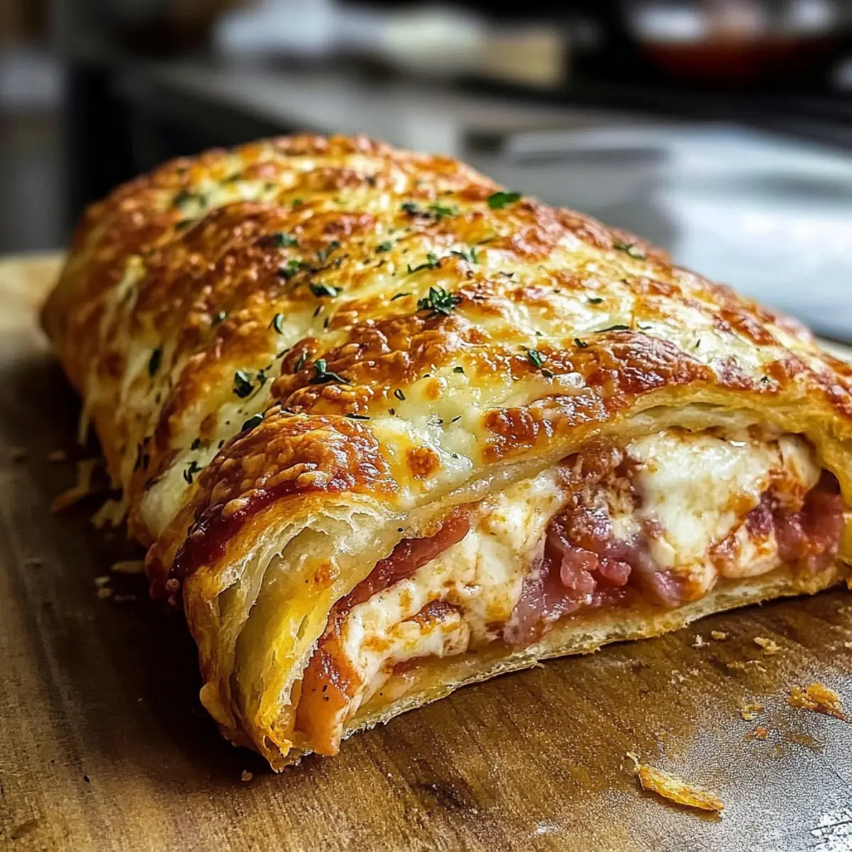 Facebook Twitter Pinterest LinkedInThe enticing aroma of freshly baked bread filled my kitchen, instantly transporting me to an Italian trattoria. There’s something so delightful about taking a bite of a warm, homemade Italian Stromboli, with its golden, crusty exterior giving way to a soft, savory heart filled with melty cheese and flavorful meats. Not only is this dish a crowd-pleaser at family dinners, but its simple preparation makes it a fantastic option for novice cooks and seasoned chefs alike. With customizable fillings—from classic pepperoni and mozzarella to vibrant vegetables—this recipe is as versatile as it is delicious. Ready to elevate your homemade comfort food game? Join me on this flavorful journey and discover how to create your very own Italian Stromboli! Why is Italian Stromboli a Must-Try? Comforting, Homemade Goodness: There’s something heartwarming about making your own Stromboli at home, where every bite offers a taste of Italy. Endless Customization: This recipe is all about creativity! You can switch up fillings based on your preferences, from savory meats to fresh veggies or even sweet treats. Perfect for Any Occasion: Whether it’s a family gathering or a cozy night in, serve it with a side of marinara for perfect dipping. Quick and Easy: With a straightforward preparation, you’ll have a delicious meal ready in no time, making it ideal for busy weeknights. Impressive Presentation: The gorgeous, golden crust, with its beautiful spiral, is certain to impress your guests and elevate any dining experience. For a taste inspired by Italy, try pairing your Stromboli with a refreshing salad or venture into a different flavor profile with Italian Tortellini Pasta on the side! Italian Stromboli Ingredients For the Dough • Pizza Dough – Use high-quality store-bought or homemade dough for the best texture and flavor. For the Sauce • Marinara Sauce – This adds moisture and flavor; consider swapping it with pesto for a unique twist. For the Filling • Mozzarella Cheese – Offers a melty, creamy texture; you can substitute provolone for a sharper flavor. • Savory Meats (e.g., pepperoni, salami, ham) – Provides richness and protein; try grilled vegetables or tofu for a vegetarian option. • Olives (optional) – Adds a briny kick; replace with roasted red peppers for a sweeter touch. For the Finish • Egg Wash – Gives a glossy, appetizing look to the crust; don’t skip this step for an impressive finish. Discover the joy of crafting your own Italian Stromboli packed with your favorite flavors! Step‑by‑Step Instructions for Italian Stromboli Step 1: Preheat the Oven Begin by preheating your oven to 400°F (200°C) to ensure it reaches the perfect temperature for baking. A hot oven will help create that lovely, golden crust on your Italian Stromboli. As the oven warms, gather your ingredients and clear a workspace, making your cooking process smooth and enjoyable. Step 2: Roll Out the Dough On a floured surface, roll out the pizza dough into a rectangle measuring approximately 12×16 inches, aiming for an even thickness. This uniformity is key to ensure that your Stromboli bakes evenly and holds all that delicious filling without tearing. Keep your rolling pin dusted with flour to prevent sticking while you work the dough. Step 3: Spread the Sauce Spread a generous layer of marinara sauce evenly over the dough, leaving a small border around the edges for sealing later. This saucy base not only adds moisture but also infuses your Italian Stromboli with fabulous flavor. Use the back of a spoon or a spatula for a mess-free application, making sure your layer is not too thick. Step 4: Add Cheese Sprinkle a thick layer of grated mozzarella cheese over the marinara sauce, ensuring an even distribution for that melty goodness. Feel free to drizzle a little extra sauce on top of the cheese if you like it saucy! This creamy layer is crucial for achieving the quintessential Italian Stromboli texture and flavor. Step 5: Layer the Fillings Now, it’s time to layer on your chosen meats and olives, spreading them evenly over the cheese. Don’t overcrowd the filling to avoid any leakage during baking. Whether using pepperoni, salami, or vegetables, this step allows for customization, letting you create an Italian Stromboli that perfectly suits your taste. Step 6: Roll the Dough Starting from one long edge, carefully roll the dough tightly into a log shape, pinching the seam as you go to seal in the delicious fillings. This rolling technique helps maintain the Stromboli’s structure and keeps all those tasty ingredients nestled inside. Ensure the ends are also sealed well to prevent any spills. Step 7: Prepare for Baking Place the rolled Stromboli seam-side down on a baking sheet lined with parchment paper. This prevents sticking and makes for an easier cleanup. Use a sharp knife to make a few diagonal slits on top for ventilation, helping the steam escape while baking, which contributes to a perfect, crispy crust. Step 8: Brush with Egg Wash In a small bowl, whisk an egg and brush it liberally over the top of the Stromboli. This egg wash will give your Italian Stromboli a beautiful, golden-brown finish once baked. Be generous, as leveraging this step enhances the appearance, making the Stromboli irresistible when it comes out of the oven. Step 9: Bake to Perfection Bake the Stromboli in your preheated oven for about 25-30 minutes, or until the crust is golden and puffy. Check for doneness by looking for that beautiful color and a slight hollow sound when you tap the crust. This is the moment your kitchen fills with delightful aromas, signaling a culinary success. Step 10: Cool and Slice Once baked, allow the Stromboli to cool on a wire rack for 10-15 minutes. This resting period helps the cheese set and makes slicing easier. Once cooled, use a sharp knife to cut into generous slices that showcase the vibrant fillings, ready to share this comforting Italia