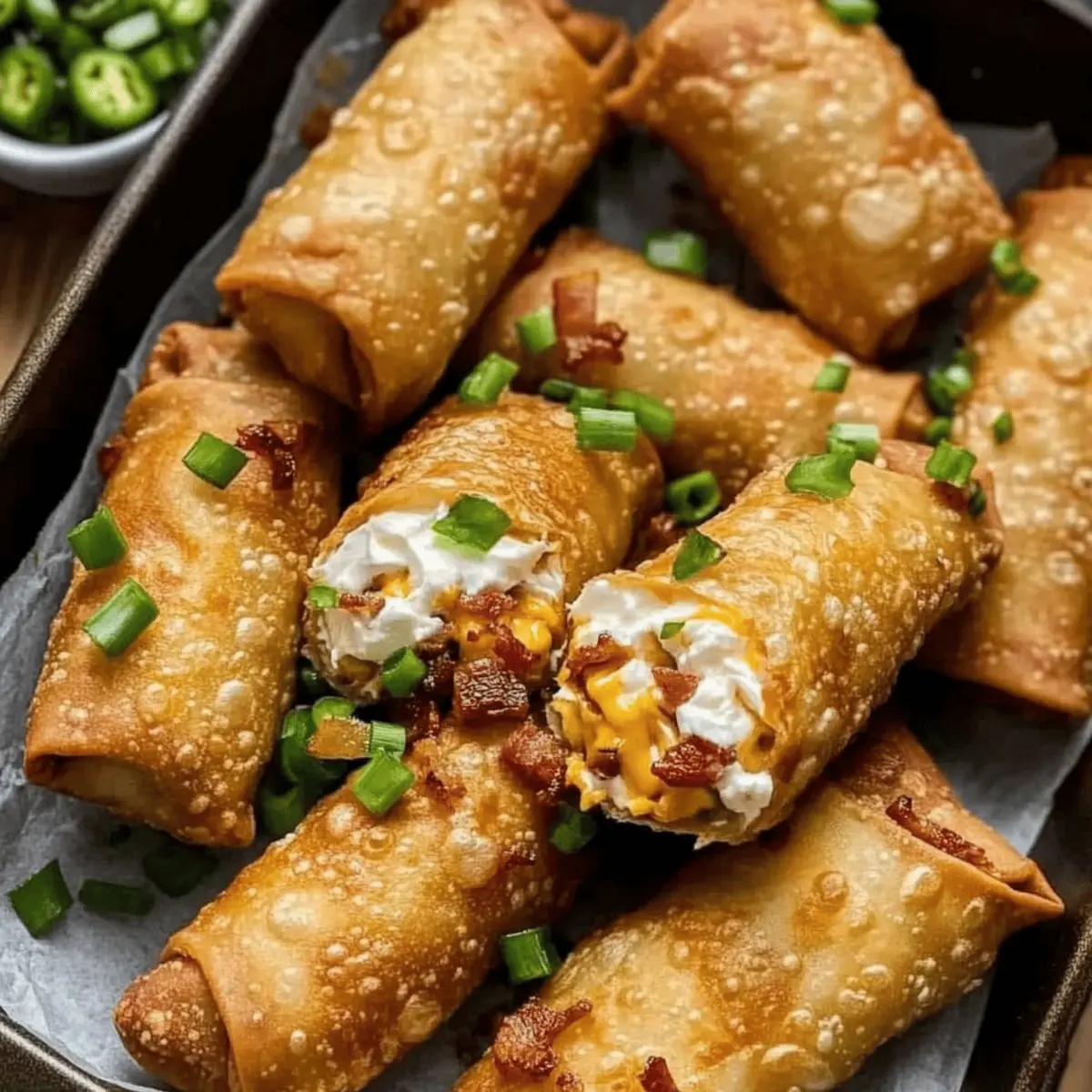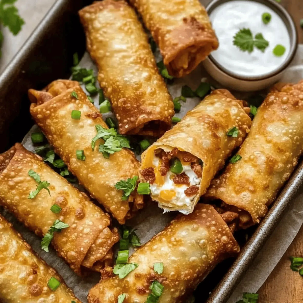 As I reached for the last bite of my homemade dinner, I couldn’t help but overhear the sizzling sound of something delicious in the kitchen. That’s when it hit me: it was time to elevate our snacking game with some Crispy Jalapeno Popper Egg Rolls! This scrumptious recipe adds a fun twist to a classic favorite, combining creamy cream cheese, zesty jalapenos, and crispy bacon all wrapped in a golden, crunchy shell. Perfectly suited for gatherings or as a delightful treat during movie night, these egg rolls are incredibly versatile—they can be quickly fried, baked, or even air-fried for a lighter option. Imagine satisfying your craving for a crispy appetizer that’s also a low-carb delight when wrapped in lettuce leaves. Are you ready to experience a new take on a beloved classic? Why are These Egg Rolls a Must-Try? Bold, Flavorful Snack: Crispy Jalapeno Popper Egg Rolls take snacking to the next level with their irresistible combination of flavors and textures. Versatile Preparation: Whether fried, baked, or air-fried, you can achieve your desired crunch in no time. Crowd-Pleasing Appetizer: Perfect for parties or movie nights, everyone will be reaching for seconds! Healthy Alterations: Opt for lettuce wraps for a low-carb twist, making these egg rolls a fantastic choice for health-conscious eaters. Quick and Easy: With minimal prep and cooking time, they fit seamlessly into your busy lifestyle—ideal for those craving homemade goodness without the hassle. Why not explore more fantastic recipes like Sausage Egg Cheese or Cheesy Sausage Egg for added variety? Enjoy your culinary adventure! Jalapeno Popper Egg Rolls Ingredients For the Filling Cream Cheese – Adds creaminess and binds ingredients together. Substitution: Neufchâtel for a lighter version. Sharp Cheddar Cheese – Provides a tangy flavor and extra creaminess. Substitution: Mild Cheddar for less intensity. Thick-Cut Bacon – Adds savoriness and crunch. Note: Can use turkey bacon for a leaner option. Jalapeno Peppers – Contributes a spicy kick and distinct flavor. Prep Note: Seeded and diced for reduced heat. Garlic Powder – Enhances the overall flavor profile. Note: Fresh minced garlic can substitute for a stronger flavor. For the Wrapper Egg Roll Wrappers – Encases the filling, providing structure and crunch. Substitution: Wonton wrappers can be used for smaller bites. For Frying Vegetable/Canola Oil – Essential for frying, creating a crispy exterior. Note: Ensure oil is heated to 350°F for optimal frying. For Dipping Ranch Dressing – Serves as a dip, complementing flavors. Substitution: Blue cheese dressing for a different flavor profile. Get ready to dive into an exciting culinary experience with these Jalapeno Popper Egg Rolls! Step‑by‑Step Instructions for Jalapeno Popper Egg Rolls Step 1: Prepare the Filling In a large mixing bowl, combine 8 ounces of softened cream cheese, 1 cup of shredded sharp cheddar cheese, 8 slices of cooked and crumbled thick-cut bacon, ½ cup of seeded and diced jalapenos, and 1 teaspoon of garlic powder. Mix the ingredients thoroughly until well-blended. This creamy filling is the heart of your Jalapeno Popper Egg Rolls, so ensure it’s homogeneous in texture. Step 2: Assemble the Egg Rolls Lay out the egg roll wrappers on a clean, dry surface. Place about ⅓ cup of the jalapeno and cheese filling in the center of each wrapper. Moisten the edges with a little water using your fingers; this helps to seal the wrappers tightly. Fold the bottom corner over the filling, then tuck in the sides and roll up the wrapper to encase the filling completely. Set aside as you continue with the rest. Step 3: Heat the Oil In a deep pot or heavy skillet, pour enough vegetable oil to cover the bottom, about 2-3 inches deep. Heat the oil on medium-high until it reaches 350°F (175°C). You can test the oil’s readiness by dropping a small piece of egg roll wrapper into it; if it sizzles immediately, you’re ready to fry. Properly heated oil ensures a crispy exterior for your Jalapeno Popper Egg Rolls. Step 4: Fry the Egg Rolls Carefully add 2-3 assembled egg rolls at a time into the hot oil, making sure not to overcrowd the pan. Fry them for about 2-3 minutes on each side, turning them until they achieve a golden brown color, which is a sign of crispiness. Use a slotted spoon to remove the fried egg rolls from the oil and drain them on paper towels to absorb excess oil. Step 5: Serve and Enjoy Once your Jalapeno Popper Egg Rolls are cooled slightly, they’re ready to serve. Place them on a platter and accompany with ranch dressing for dipping. The contrast of the hot, crispy egg rolls with the cool, creamy dip makes for an irresistible snack or appetizer that everyone will love! What to Serve with Crispy Jalapeno Popper Egg Rolls Bring your meal to life with delightful pairings that complement these crispy bites, giving every gathering an unforgettable taste experience. Creamy Avocado Dip: This smooth and rich dip balances the spice from the egg rolls, enhancing their flavors beautifully. Fresh Garden Salad: A crisp, refreshing salad brings a contrasting texture, making every bite even more enjoyable. Toss in a light vinaigrette for a zesty touch. Sweet Chili Sauce: The sweetness of this sauce complements the savory filling, creating an exciting flavor fusion. Drizzle it on the egg rolls or serve it as a dip for an added kick. Coleslaw: The crunchy cabbage and slightly sweet dressing provide a fresh, vibrant contrast that cuts through the richness of the egg rolls seamlessly. Crispy Sweet Potato Fries: Their natural sweetness pairs harmoniously with the spicy filling, adding another layer of flavor to your snack platter. Beer Pairing: A cold, crisp lager or light ale is perfect for washing down these savory snacks, enhancing their crispy charm while refreshing your palate. Chocolate Chip Cookies: For dessert, serve warm cookies, adding a sweet end to a savory meal. The chocolate balan