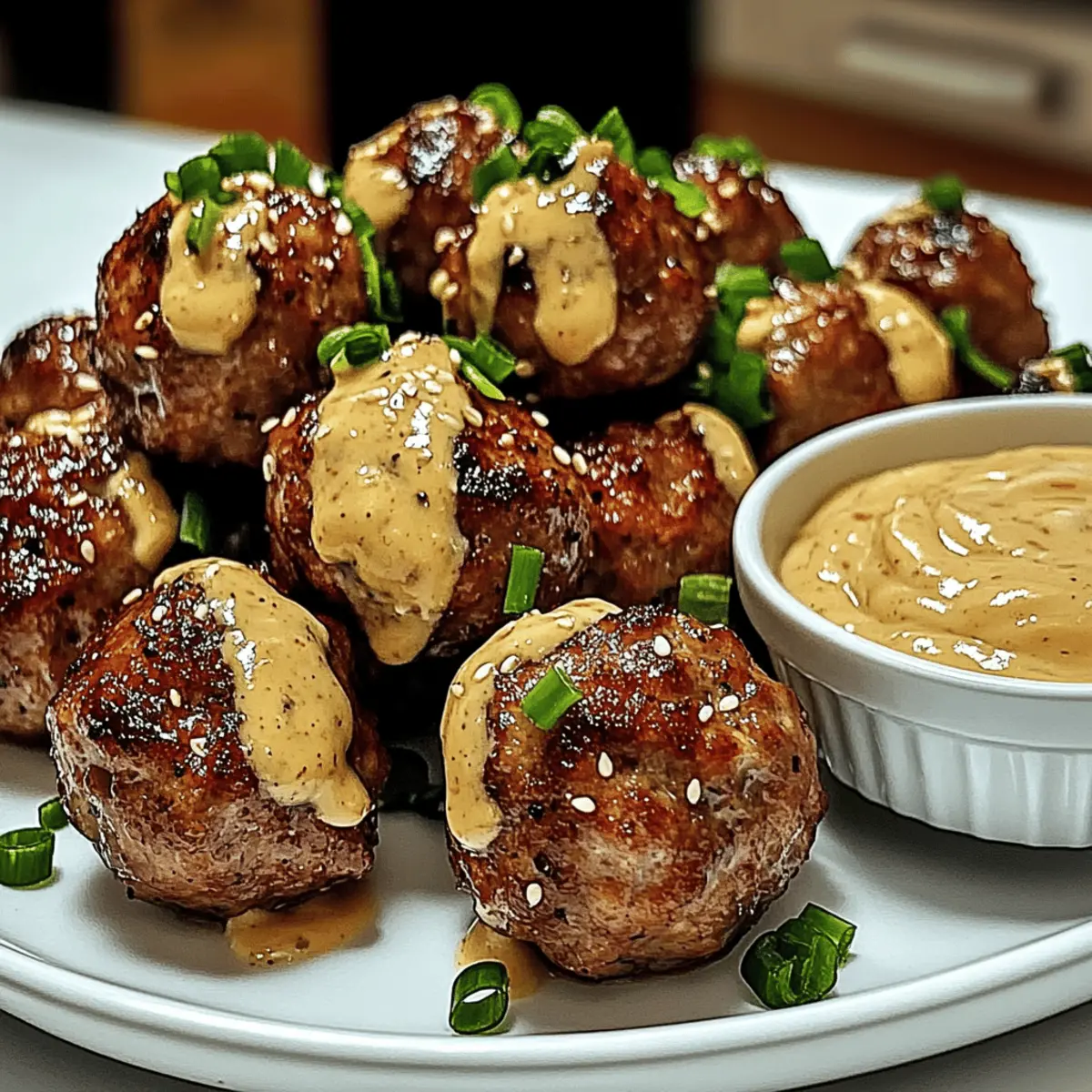 Creamy Dip Delight: The spicy mayo dip perfectly balances the savory meatballs, making every bite a creamy, tangy, and slightly spicy experience.