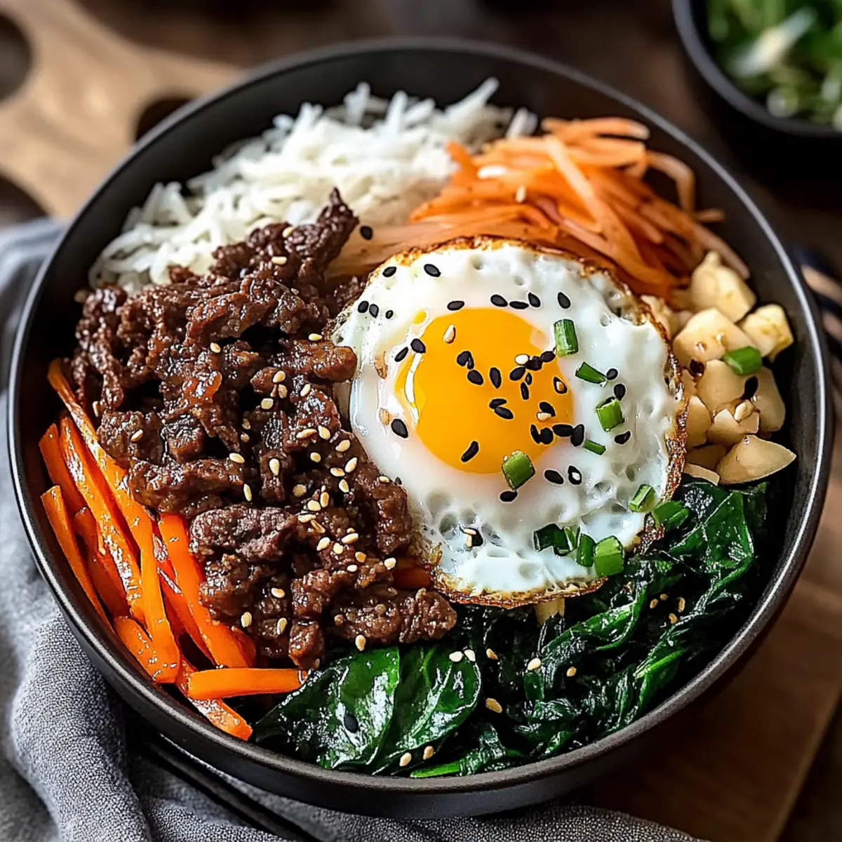 Facebook Twitter Pinterest LinkedInIn a bustling market in Seoul, vibrant colors dance before my eyes—the deep greens of fresh spinach, the fiery red of gochujang, and the warm hues of marinated beef. It’s this lively scene that inspired my own take on the beloved Korean Beef Bibimbap Bowl. This dish is not just a meal; it’s a celebration of flavors and textures, all harmoniously balanced in a single bowl. What I adore most about this bibimbap is its customizable nature—easily tailored to fit any dietary preference, whether you’re a meat lover or a veggie enthusiast. Best yet, it clocks in at under an hour, making it a perfect choice for a quick weeknight dinner or a standout option for gatherings. Are you ready to mix, match, and create your own delicious bowl? Let’s dive into this flavorful journey together! Why Is Korean Beef Bibimbap Bowl Unique? Colorful, this dish is a feast for the eyes, combining vibrant vegetables and perfectly marinated beef that create an inviting presentation. Customizable, you can easily swap proteins or veggies based on your preference, making it a versatile option for everyone at the table. Quick preparation means you can whip up this flavorful bowl in under an hour, perfect for busy weeknights. Crowd-pleasing, it’s a hit at gatherings, sure to impress guests with its bold flavors. Plus, it’s a great way to explore new ingredients and spices like gochujang, similar to the ideas you’d find in Korean Braised Short Ribs or Spicy Korean Ramen. Get ready to enjoy every bite of this delightful bowl! Korean Beef Bibimbap Bowl Ingredients For the Beef Ground Beef – Choose lean beef for a healthier option and richer flavor. Gochujang Sauce – This spicy Korean condiment adds depth and a unique umami kick; adjust to your spice level! Low-Sodium Soy Sauce – Seasoning the beef, this complements the other flavors without overwhelming them. For the Rice Short-Grain Rice – Essential for a sticky texture that holds the ingredients together beautifully. For the Vegetables Carrots (1 cup, julienned) – Adds a splash of color and a natural sweetness to balance the dish. Spinach (1 cup, fresh) – Contributes a fresh, green element for nutrition and visual appeal. Zucchini (1 cup, sliced) – This mild vegetable can be swapped for bell peppers or other favorites. Bean Sprouts (1 cup) – Offers a crunchy texture that contrasts nicely with the soft components. For the Toppings Eggs (4) – Fried sunny-side-up, these add richness; a runny yolk elevates your bibimbap experience. Sesame Oil (1 tbsp) – This nutty oil enhances the overall flavor and aroma of the dish. Get ready to create your own beautiful Korean Beef Bibimbap Bowl, where every bite is a celebration of flavors! Step‑by‑Step Instructions for Korean Beef Bibimbap Bowl Step 1: Cook the Rice Begin by preparing the short-grain rice as per package instructions, typically taking around 20 minutes. Rinse the rice thoroughly to remove excess starch, allowing it to steam perfectly sticky. As the rice cooks, have a large pot or rice cooker ready to achieve that ideal texture essential for the Korean Beef Bibimbap Bowl. Step 2: Brown the Beef In a large skillet, heat a splash of oil over medium-high heat and add the ground beef. Cook for about 5-7 minutes, stirring occasionally until the beef is browned and fully cooked. Drain any excess fat from the skillet, ensuring a leaner finish for your bibimbap, setting the stage for the savory flavors to come. Step 3: Add Flavor Reduce the heat to low and stir in the gochujang, low-sodium soy sauce, and sesame oil into the browned beef. Let it simmer for an additional 5 minutes, stirring occasionally until the beef absorbs all the rich, savory flavors. This ensures that every bite of your Korean Beef Bibimbap Bowl is packed with deliciousness. Step 4: Sauté the Vegetables In another pan, heat a tablespoon of sesame oil over medium heat. Add the julienned carrots, sliced zucchini, fresh spinach, and bean sprouts. Sauté for about 7 minutes until the vegetables are tender yet still crisp. This vibrant mix of veggies not only adds nutrition but also contributes a refreshing contrast to the seasoned beef. Step 5: Fry the Eggs Next, in a clean skillet, heat a little oil over medium heat and crack in the eggs. Fry them sunny-side up for around 3 minutes, ensuring the whites are set while keeping the yolks runny. These beautifully cooked eggs will add richness and a delightful creaminess to your Korean Beef Bibimbap Bowl. Step 6: Assemble the Bowls To serve, layer bowls with the cooked rice as the base. Spoon on the flavorful beef mixture, followed by the sautéed vegetables, and top each bowl with a sunny-side-up egg. For an extra kick, drizzle a touch of gochujang sauce on top, inviting everyone to mix and enjoy the delightful culinary experience of your Korean Beef Bibimbap Bowl. Make Ahead Options These Korean Beef Bibimbap Bowls are perfect for meal prep, saving you time during those busy weeknights! You can marinate the ground beef in the gochujang and soy sauce up to 24 hours in advance, allowing the flavors to deepen, and sauté the vegetables ahead of time, storing them in an airtight container for up to 3 days in the refrigerator. When you’re ready to enjoy your bibimbap, simply reheat the beef and vegetables in a skillet until warmed through (about 5 minutes) while cooking the rice fresh for the best texture. Top with the sunny-side-up eggs just before serving to maintain that creamy richness that makes this dish so delightful! What to Serve with Korean Beef Bibimbap Bowl Looking to complete your meal with delicious sides that enhance the colorful and savory elements of your bibimbap? Kimchi: A staple in Korean cuisine, this fermented dish offers a perfect spicy and tangy contrast to the savory bibimbap. Cucumber Salad: A light, crunchy cucumber salad dressed with sesame oil and vinegar refreshes your palate, balancing the rich flavors of the bowl
