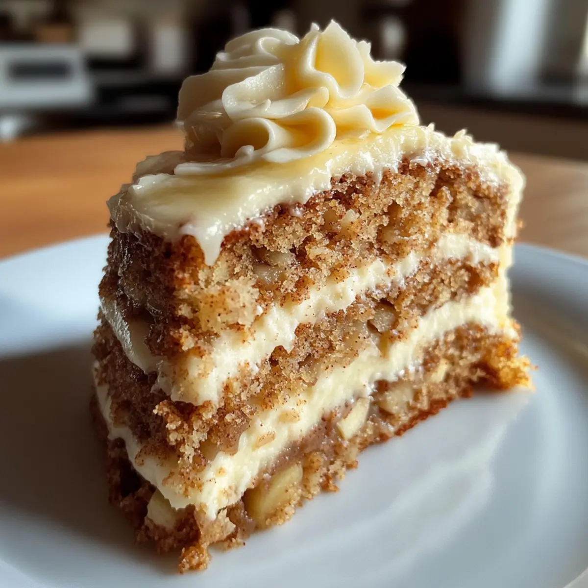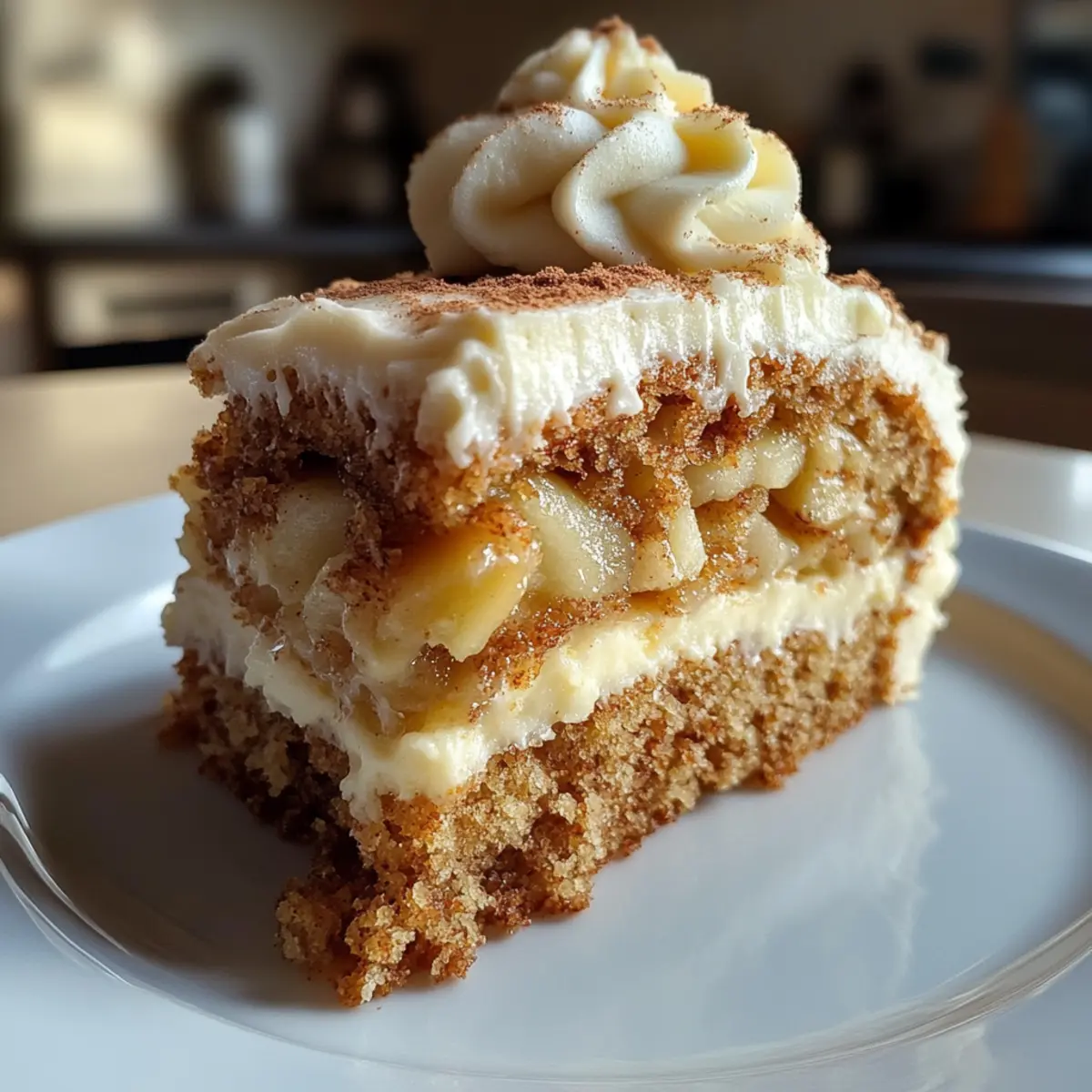 Facebook Twitter Pinterest LinkedInAs I sift through the spice cabinet, a sprinkle of cinnamon catches my eye, unleashing memories of cozy gatherings filled with laughter and the sweet scent of baking apples wafting through the air. That nostalgia comes alive in my kitchen with this Irresistible Fresh Apple Cake with Cream Cheese Frosting—a dessert that beautifully balances a moist, tender crumb with a creamy, tangy topping. It’s not just a delight for the taste buds; it’s a versatile treat, perfect for sharing with loved ones or indulging in solo. Plus, this recipe is adaptable, allowing for exciting variations like caramel swirls or nut swaps. Whether you’re celebrating a special occasion or simply craving a comforting slice, this apple cake will remind you of the warmth that homemade desserts bring. Ready to uncover the secrets to creating this delightful treat? Let’s dive in! Why is this apple cake irresistible? Moist, Tender Crumb: This cake’s texture speaks for itself, offering a soft, fluffy crumb that’s unbelievably satisfying with each bite. Creamy, Tangy Frosting: The cream cheese frosting adds a rich contrasting flavor that elevates your dessert to gourmet levels. Versatile Delight: With options to incorporate caramel, different nuts, or spices, each baking experience can be uniquely yours! Easy to Make: Even beginners can tackle this recipe effortlessly, making it a great addition to your baking repertoire. Perfect for Gatherings: Whether it’s a holiday feast or a cozy dinner, this apple cake impresses guests and sparks conversation. Ready to impress? You can also try switching things up with a delicious Biscoff Cheesecake Bake or indulge in a Bake Oreo Cheesecake. Fresh Apple Cake Ingredients For the Cake Flour – Provides structure; using all-purpose flour yields a light texture. Baking Soda – Acts as a leavening agent to help the cake rise. Salt – Enhances flavor and balances the sweetness of the cake. Cinnamon – Adds warm spice notes; consider nutmeg for a different flair. Butter – Instills richness; for a denser cake, vegetable oil can be a suitable substitute. Sugar – Sweetens the cake; using brown sugar can deepen the overall flavor profile. Eggs – Binds ingredients; substitute with flax eggs to make it vegan-friendly. Vanilla Extract – Provides aromatic sweetness; almond extract offers a unique twist. Grated Apples – Main source of flavor and moisture; squeezing excess moisture prevents sogginess. Walnuts (optional) – Adds crunch and nutty flavor; pecans are a great alternative or omit for nut-free. For the Frosting Cream Cheese – The base for a smooth frosting; ensure it’s softened for easy blending. Powdered Sugar – Sweetens and thickens the frosting; sifting prevents any lumps. Milk (for thinning) – Adjusts the frosting’s consistency if it’s too thick; add gradually. Nature’s bounty shines through this Fresh Apple Cake with Cream Cheese Frosting, creating not just a dessert but a heartfelt experience to share around your table. Step‑by‑Step Instructions for le Fresh Apple Cake with Cream Cheese Frosting Step 1: Preheat Your Oven Begin by preheating your oven to 350°F (175°C). This temperature is perfect for ensuring your le Fresh Apple Cake bakes evenly. While it heats up, grease a 9×13-inch baking pan or line it with parchment paper for easy removal later. Get ready for the delightful aroma that will soon envelop your kitchen! Step 2: Whisk Dry Ingredients In a spacious mixing bowl, whisk together 2 cups of all-purpose flour, 1 teaspoon of baking soda, 1/2 teaspoon of salt, and 1 teaspoon of cinnamon. This combination helps create a balanced flavor and proper rise for your cake. Make sure no lumps remain, as a smooth mix leads to a fluffy crumb in your irresistible cake. Step 3: Cream Butter and Sugar In another large bowl, using an electric mixer, beat 1/2 cup of softened butter and 1 cup of sugar until the mixture is pale and fluffy—this should take about 3-4 minutes. The butter needs to be at room temperature for the best results. This step is crucial for creating a light texture in your le Fresh Apple Cake, enhancing its overall appeal. Step 4: Incorporate Eggs and Vanilla Once your butter and sugar are well-creamed, add in 2 large eggs one at a time, mixing well after each addition. Follow with 1 teaspoon of vanilla extract. The eggs will bind your ingredients and create moisture in your cake. Beat until the mixture is smooth and well-combined, about another minute of mixing. Step 5: Combine Wet and Dry Ingredients Gradually incorporate the dry flour mixture into the wet ingredients. Do this slowly to avoid clumping. Mix until just combined—overmixing can lead to a dense cake. At this stage, you’ll see the batter begin to come together, forming a delicious base for your le Fresh Apple Cake. Step 6: Fold in Apples and Nuts Gently fold in 2 cups of grated apples and, if using, 1/2 cup of chopped walnuts or nuts of your choice. Make sure to squeeze any excess moisture from the grated apples to prevent a soggy batter. This is where the cake truly comes to life, as the apples add moisture and flavor. Step 7: Bake the Cake Pour the batter into your prepared baking pan, smoothing out the top with a spatula. Bake in your preheated oven for 30-35 minutes or until a toothpick inserted into the center comes out with moist crumbs. Keep an eye on it; the cake should rise beautifully and turn a delightful golden brown. Step 8: Cool the Cake After baking, let the cake cool in the pan for about 10 minutes. Once it’s slightly cooled, carefully transfer it to a wire rack to cool completely. This is important to prevent any residual heat from melting your frosting later, ensuring you have a delicious and well-structured le Fresh Apple Cake. Step 9: Prepare the Frosting For the cream cheese frosting, beat together 8 oz of softened cream cheese and 1/4 cup of softened butter until smooth and creamy. Gradually add in 