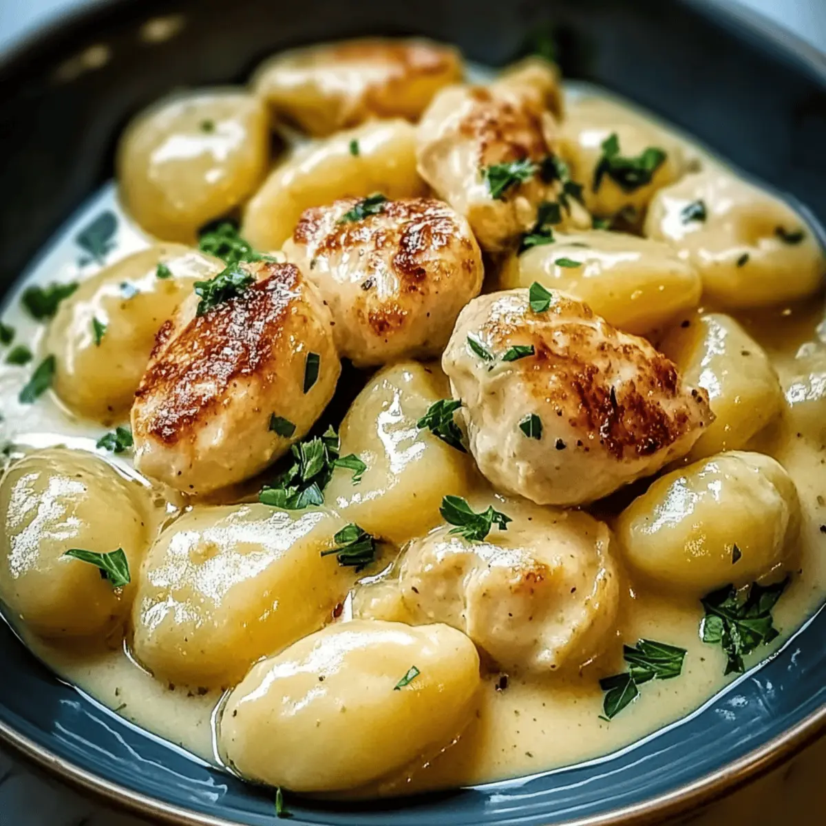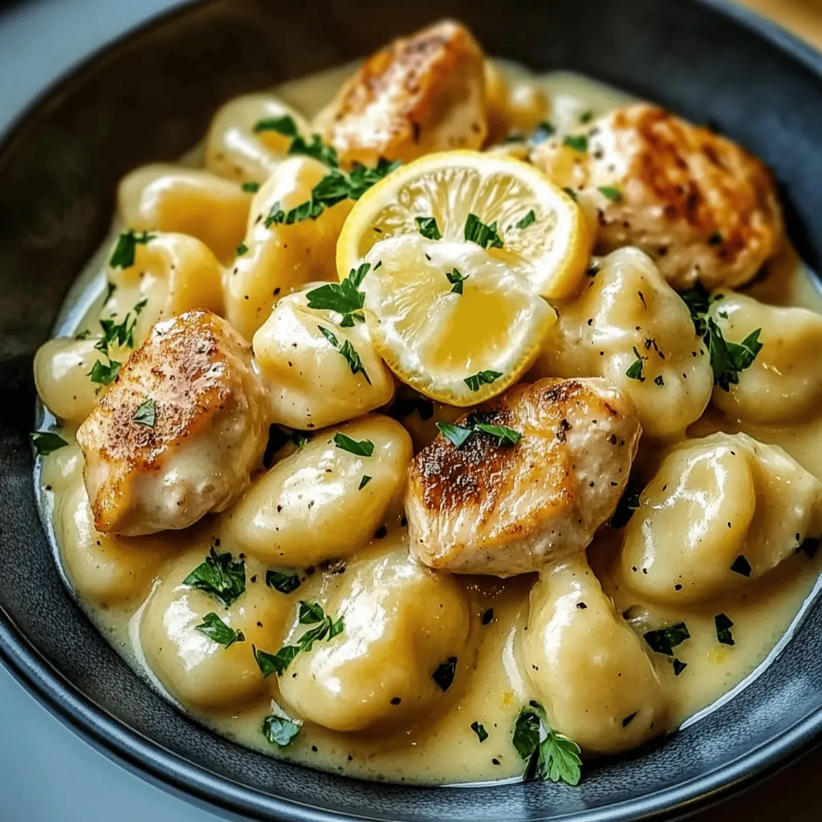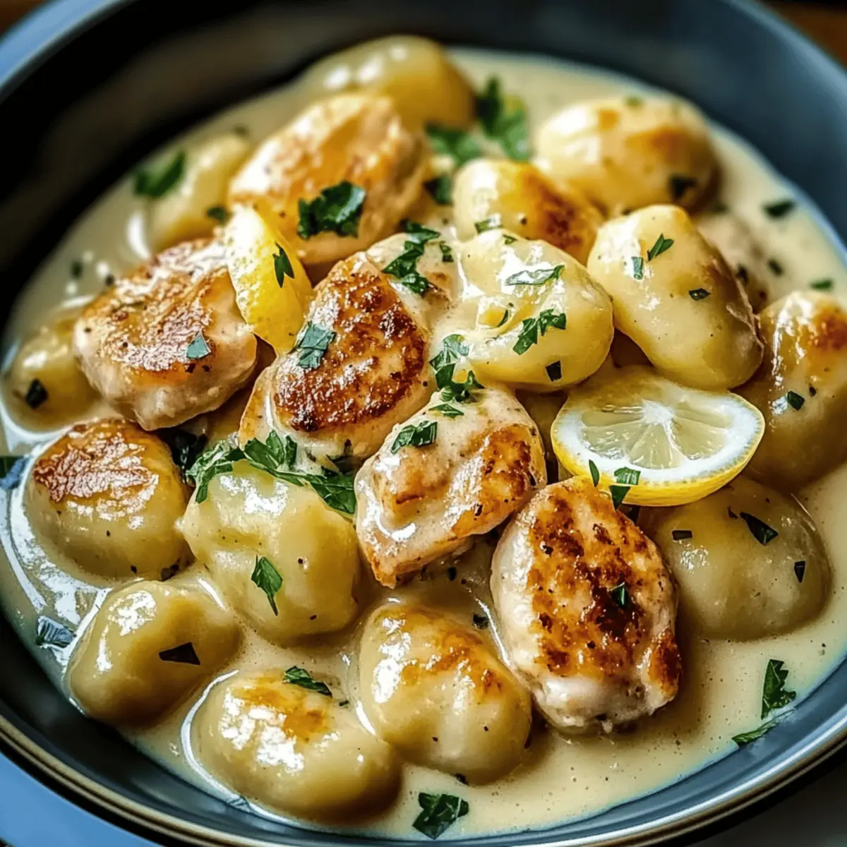 As I stood by the stove, the mouthwatering scent of garlic mingled with the zingy burst of fresh lemon, transporting me straight to a sun-soaked terrace in Italy. This Creamy Lemon Chicken Gnocchi is not just a meal; it’s a delightful escape that brings the comforts of Italian cuisine to your kitchen in just 30 minutes. Perfect for busy weeknights, the joy of this dish lies in its creamy depth and zesty brightness, making it a go-to for anyone craving a smart yet satisfying dinner. Serving up warmth and happiness in every bite, this dish is equally easy to whip up, whether you’re a seasoned cook or a curious beginner. Curious about how to transform simple ingredients into a meal that wows? Let’s dive into this recipe that’s as comforting as it is quick! Why is Lemon Chicken Gnocchi a Must-Try? Creamy Comfort: This recipe delivers a luscious sauce that wraps around the gnocchi, creating a hug in a bowl with every bite. Quick and Easy: Ready in just 30 minutes, it’s a perfect solution for those hectic weeknights when you crave something special without the fuss. Fresh Flavors: The zesty lemon and aromatic garlic pair beautifully, ensuring each spoonful is bursting with brightness. Versatile Option: Whether you’re serving a family or entertaining friends, this dish adapts effortlessly, and can even cater to dietary needs with simple swaps like vegetarian protein or dairy-free cream. Crowd-Pleasing: With its comforting textures and delightful flavors, it’s a recipe sure to impress, whether you’re making it for two or hosting a dinner party. For another quick dinner idea, try my delicious Crockpot Chicken Gnocchi or the flavorful Hawaiian Chicken Sheet for a tropical twist! Lemon Chicken Gnocchi Ingredients For the Gnocchi • Gnocchi – This soft and pillowy pasta is the star of the dish; you can choose store-bought for convenience or try your hand at making it from scratch. For the Chicken • Boneless Chicken Breasts – A fantastic source of protein that stays tender and juicy; feel free to swap with tofu or mushrooms for a vegetarian option. For the Sauce • Heavy Cream – Adds rich creaminess to the dish; for a lighter take, consider half-and-half or even cashew cream for those needing dairy-free alternatives. • Lemon Zest and Juice – Brightens up the dish with a fresh citrusy zing; always opt for fresh lemons if you can! • Garlic – Infuses the sauce with aromatic depth; freshly minced garlic really elevates the flavor. • Parmesan Cheese – This savory cheese brings umami richness; for a vegan swap, nutritional yeast is a great alternative. For the Garnish • Parsley/Basil – Fresh herbs that add a pop of color and freshness when sprinkled on top right before serving. This Lemon Chicken Gnocchi is not just a meal; it’s a delightful escape to Italian cuisine that can effortlessly come together in your kitchen! Step‑by‑Step Instructions for Lemon Chicken Gnocchi Step 1: Cook Chicken In a large skillet, heat 1 tablespoon of oil over medium-high heat. Season the boneless chicken breasts with salt and pepper, then add them to the skillet. Sear for about 5-6 minutes on each side until golden brown and cooked through, reaching an internal temperature of 165°F. Remove the chicken from the pan, allowing it to rest while you prepare the sauce. Step 2: Prepare Sauce In the same skillet, reduce the heat to medium and add another tablespoon of oil if needed. Sauté 2-3 minced garlic cloves for about 30 seconds until fragrant. Stir in the lemon zest and juice, letting it simmer for a minute before pouring in 1 cup of heavy cream. Whisk gently to combine, allowing the sauce to thicken slightly, about 3-4 minutes. Step 3: Combine Gnocchi Bring a separate pot of salted water to a boil, then add store-bought gnocchi. Cook for 2-3 minutes or until they float to the surface. Using a slotted spoon, transfer the gnocchi directly into the creamy lemon sauce. Gently toss to coat them evenly, allowing the gnocchi to absorb some of the flavors while simmering on low for 2 minutes. Step 4: Finish Cooking Slice the cooked chicken into bite-sized pieces and return it to the skillet with the gnocchi. Stir everything together, letting the heat meld the ingredients for another 2-3 minutes. Ensure the chicken is thoroughly warmed and evenly distributed throughout the Lemon Chicken Gnocchi for a comforting blend of flavors. Step 5: Garnish Remove the skillet from heat and season to taste with additional salt, pepper, or lemon juice if desired. Serve the Lemon Chicken Gnocchi in bowls, garnished with freshly chopped parsley or basil for a vibrant touch. The creamy texture and zesty aroma will be the perfect finishing touches before serving this delightful dish! Storage Tips for Lemon Chicken Gnocchi Fridge: Store leftovers in an airtight container for up to 3 days. Ensure the dish has cooled down before sealing to maintain freshness. Freezer: For longer storage, freeze the sauce and gnocchi separately in airtight containers for up to 1 month. This keeps textures intact when you’re ready to enjoy them again. Reheating: When ready to serve, thaw overnight in the fridge. Reheat the sauce gently in a skillet, adding a splash of cream or broth to restore creaminess, and toss in the gnocchi until heated through. Make-Ahead: You can prepare the sauce a day in advance. Store in the fridge and simply combine with freshly cooked gnocchi before serving. Enjoy the delightful flavors of Lemon Chicken Gnocchi any day! Make Ahead Options These Lemon Chicken Gnocchi are perfect for meal prep enthusiasts! You can prepare the creamy sauce and cook the chicken up to 24 hours in advance. Simply sauté the garlic, add lemon zest, juice, and heavy cream, then refrigerate the sauce in an airtight container. For the chicken, cook as per the recipe, slice it, and store it with the sauce to infuse the flavors overnight. When you’re ready to serve, cook the gnocchi fresh (they only take a few minutes), th