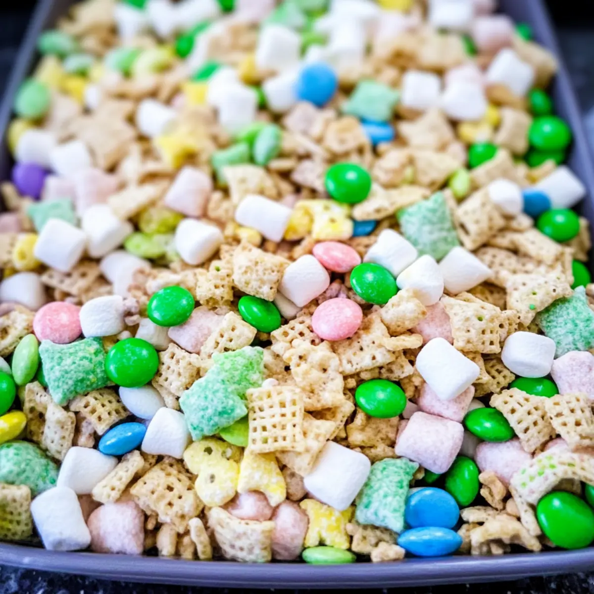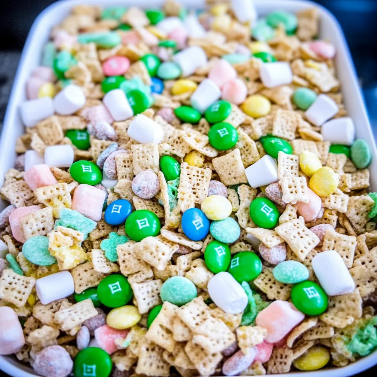Absolutely! When selecting ingredients, opt for Chex cereal that is fresh and crisp; look for boxes without any signs of being past expiration. For the pretzel sticks, choose ones that are sturdy, so they add a nice crunch to the mix. The Lucky Charms cereal must be the star of your mix, so ensure you get the original variety for that unique sweetness and the colorful marshmallow pieces! For M&M’s, a bright, vibrant green adds to the festive spirit—though any color you prefer will work just as well.