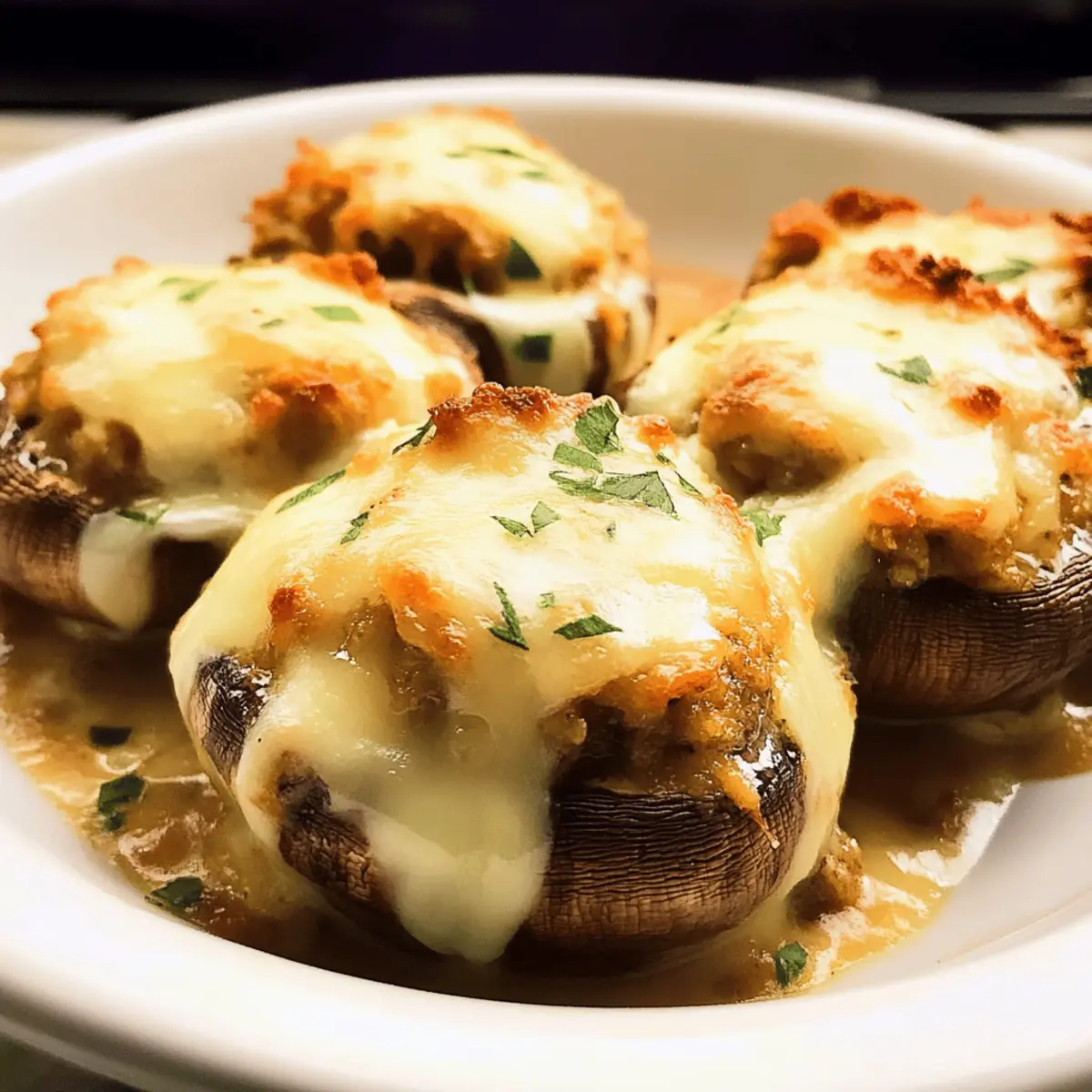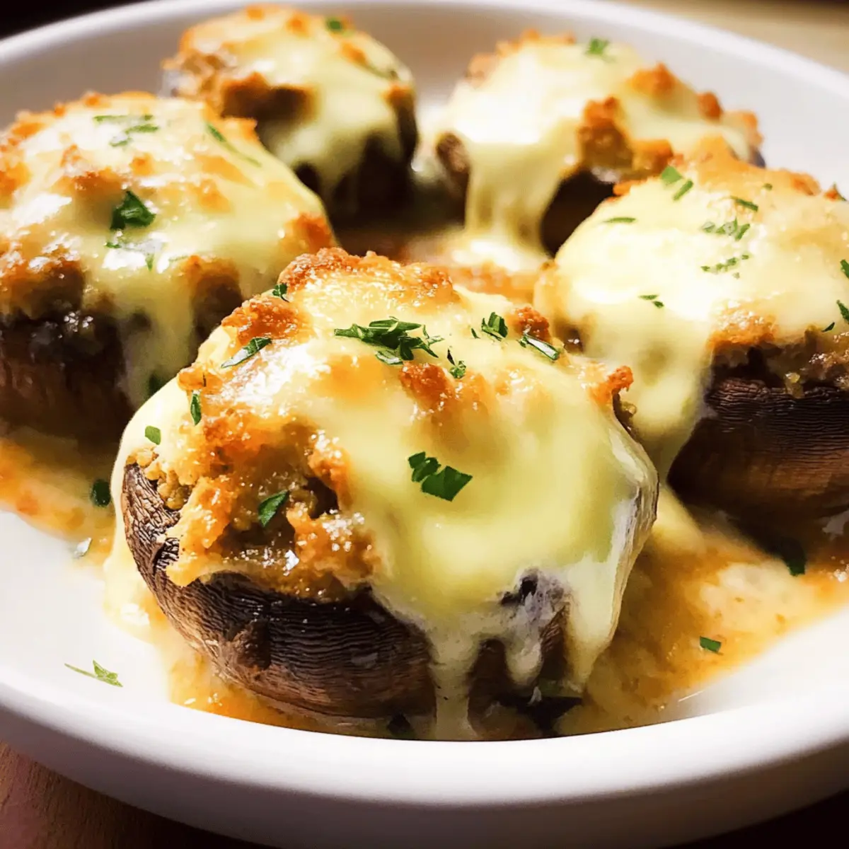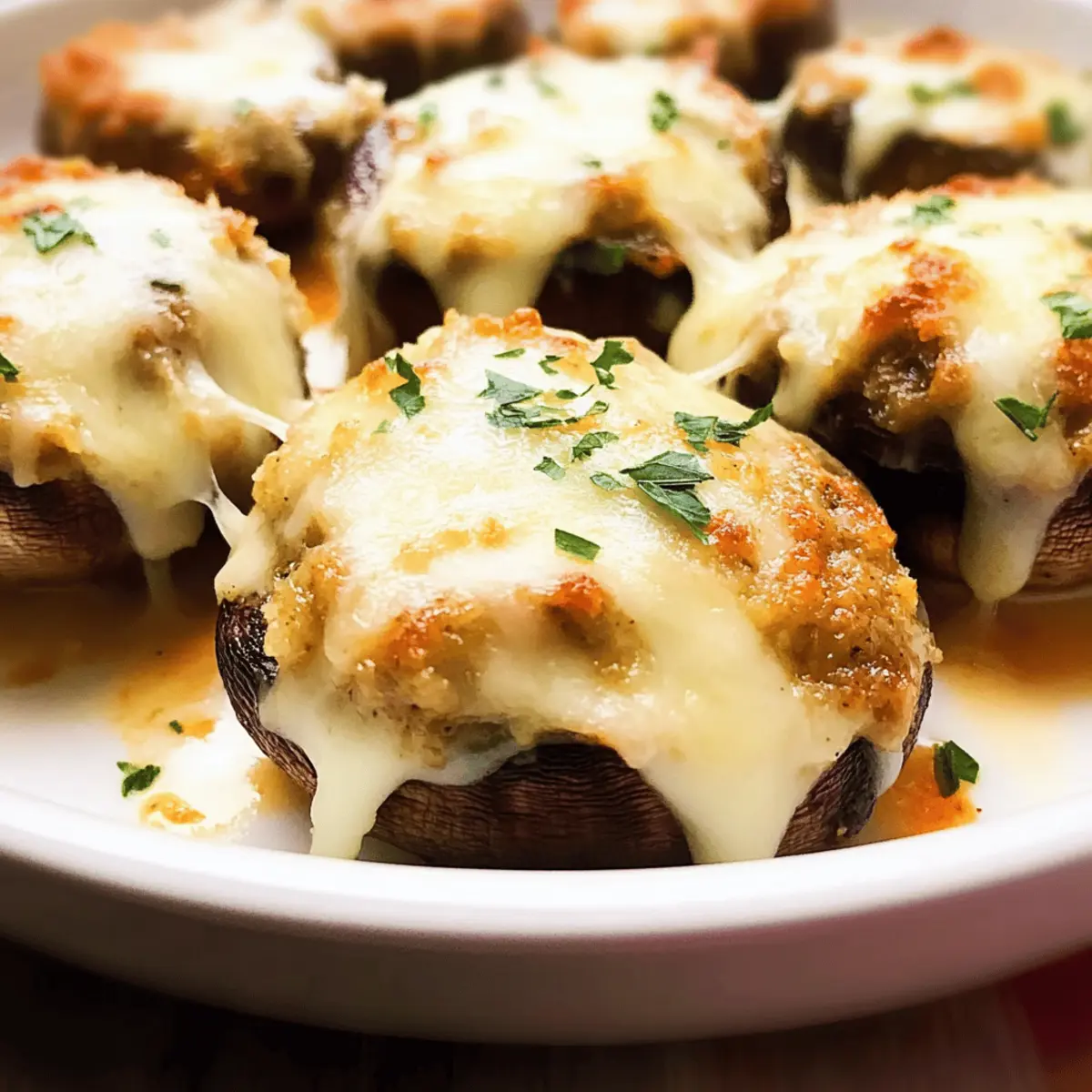 As I stood in my kitchen, the warm aroma of sautéed mushrooms wafted through the air, instantly transporting me to a cozy Texas steakhouse. Inspired by the irresistible Longhorn Stuffed Mushrooms I’d enjoyed at my favorite restaurant, I felt compelled to recreate this delightful appetizer at home. These savory bites offer a perfect balance of creamy Herb Pub Cheese and a crispy panko topping, making them not only a crowd-pleaser but also incredibly easy to whip up for gatherings or cozy evenings in. Plus, they’re vegetarian-friendly and can easily be adapted for gluten-free or low-carb diets. Are you ready to impress your family and friends with this irresistible dish? Let’s dive into these Longhorn Stuffed Mushrooms that are sure to become a favorite! Why Are These Mushrooms So Irresistible? Exquisite Flavor: A delightful blend of creamy Herb Pub Cheese and the savory depth of cheese make each bite a flavor explosion. Crowd-Pleasing Appeal: Perfect for parties or a cozy family dinner, these stuffed mushrooms are guaranteed to impress guests of all ages. Adaptable Ingredients: With easy substitution options, including gluten-free and low-carb varieties, you can customize these bites to suit your dietary needs! Quick and Easy: Need a last-minute appetizer? You can whip these up in under 30 minutes, making them an ideal choice for unexpected guests. Unique Texture: Imagine the contrast of juicy, tender mushrooms filled with a creamy stuffing, topped with a crispy golden layer—simply irresistible! Ready for more delicious ideas? Try out these Ground Turkey Stuffed Peppers for another tasty twist! Longhorn Stuffed Mushroom Ingredients For the Filling Panko Breadcrumbs – Provides a crispy texture; substitute with regular breadcrumbs for a different crunch. Herb Pub Cheese – This creaminess elevates the flavor; consider herbed cream cheese if unavailable. Half-and-half – Binds the filling and enhances creaminess; replace it with heavy cream or whole milk if preferred. For the Mushrooms White Button Mushrooms – Ideal for stuffing; cremini or portobello can be used for larger bites. For the Toppings Provolone Cheese – Offers a mild flavor that pairs beautifully with mushrooms; mozzarella or Gouda work well too, but blue cheese will add an intense flavor. Parmesan Cheese – Provides nuttiness and a touch of saltiness; grated Pecorino Romano can serve as an alternative. Elevate your next gathering with these delectable Longhorn Stuffed Mushrooms that are sure to wow your guests! Step‑by‑Step Instructions for Longhorn Stuffed Mushroom Step 1: Prepare Mushrooms Preheat your oven to 375°F (190°C). While the oven is warming up, take a damp paper towel and gently clean the white button mushrooms, ensuring they are dirt-free. Remove the stems carefully and scoop out the gills using a small spoon to create a pocket for the stuffing, setting aside the mushroom caps on a baking sheet. Step 2: Make Filling In a medium bowl, combine the panko breadcrumbs, Herb Pub Cheese, and half-and-half. Blend these ingredients together until smooth and creamy, ensuring the panko is well incorporated into the mixture. This filling will bring a delightful richness to your Longhorn Stuffed Mushrooms, perfectly complementing the earthy flavor of the mushrooms. Step 3: Stuff Mushrooms Once your filling is ready, grab your prepared mushroom caps and start filling each one generously with the creamy mixture. Make sure to pack the filling slightly for a satisfying bite. After stuffing, sprinkle provolone cheese on top of each mushroom, followed by a dusting of Parmesan cheese for added flavor and texture. Step 4: Bake Place the baking sheet with the stuffed mushrooms in the preheated oven. Bake for about 18-20 minutes or until the cheese is melted and the filling is bubbly. For an extra crispy finish, switch your oven to broil and cook for an additional 2-3 minutes, keeping a close eye until they reach a golden-brown perfection. Step 5: Serve After removing the Longhorn Stuffed Mushrooms from the oven, allow them to cool for a few minutes. This brief resting period lets the flavors settle and makes for easier handling. Serve warm to enjoy the delightful combination of textures and flavors, ensuring your guests will be thoroughly impressed! Longhorn Stuffed Mushroom Variations Feel free to let your creativity shine and personalize these stuffed mushrooms to match your taste and dietary needs! Low-Carb: Replace panko with almond flour for a deliciously crunchy, low-carb alternative. This swap makes every bite a guilt-free pleasure. Vegetarian Twist: Use vegetable broth instead of half-and-half for a lighter, vegetarian-friendly filling without sacrificing flavor. You’ll still get that creamy richness! Mushroom Swap: Experiment with different mushroom types, like portobello, for an even heartier bite. These larger caps provide a great base for the filling and add to the dish’s presentation. Cheesy Variations: Swap provolone for mozzarella or Gouda for a milder flavor, or add blue cheese for an intense, rich kick. The choice of cheese can elevate your bite to something truly unique. Crispy Topping: To add a texture twist, mix some crushed nuts or seeds into the topping for extra crunch. This will give your mushrooms a nutty flavor and delightful crunch. Fire it Up: Incorporate diced jalapeños or a dash of hot sauce into the filling for a spicy kick that heat-lovers will adore. This addition will definitely take your stuffed mushrooms to the next level! Savory Enhancements: For a smokier flavor, toss in some crumbled bacon or smoked paprika. This can add a whole new dimension to your filling and cater to those craving savory goodness. Plan Ahead: For an easy meal prep, prepare stuffed mushrooms ahead of time and keep them in the fridge until you’re ready to bake. This is a great way to serve up fresh, hot appetizers at a moment’s notice. Feeling inspired? Why not pair these stuffed mushrooms with a 