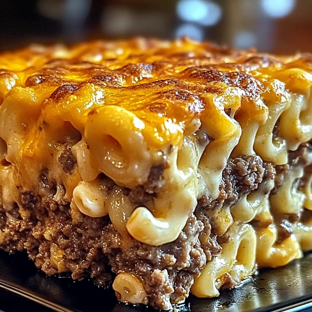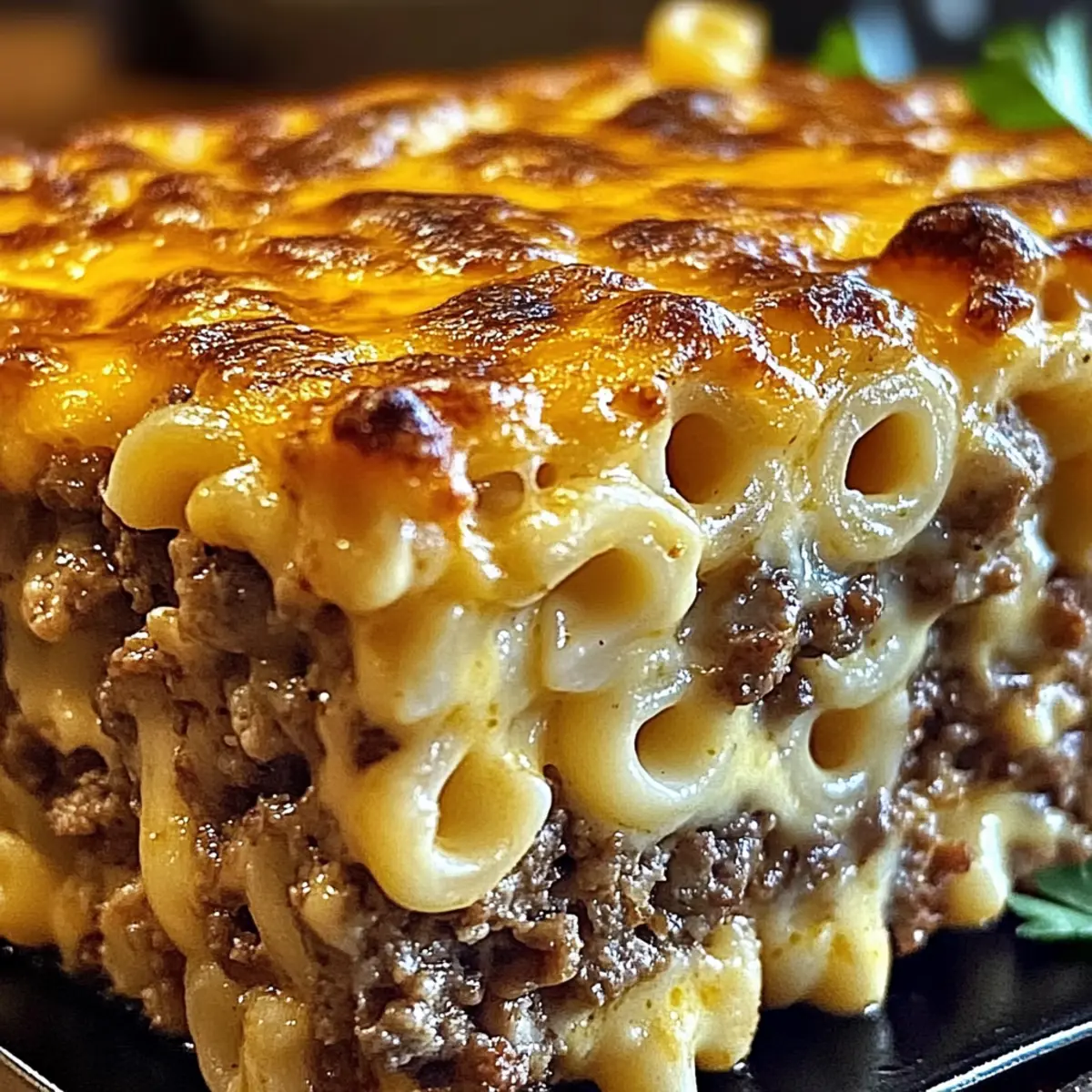 Facebook Twitter Pinterest LinkedInAs I stood in my kitchen, the rich scent of savory meatloaf mingling with creamy cheese enveloped me like a warm hug—it was time for my Mac and Cheese Meatloaf Casserole to shine! This delightful dish marries two classic comfort foods into one mouthwatering masterpiece, perfect for weeknight dinners or casual gatherings. Not only is it a breeze to whip up, but it’s also a fun way to entice the kids to eat their veggies by sneaking them into the cheese-stuffed layers. With its cozy, filling nature and endless opportunities for customization, you’ll find yourself returning to this recipe again and again. So, are you ready to dive into this comforting blend of flavors? Let’s create some magic together! Why is This Casserole a Winner? Comforting Combination: The Mac and Cheese Meatloaf Casserole brings two favorites together, providing the best of both worlds in every bite! Kid-Approved Twist: Sneak in veggies without the fuss—kids won’t even notice the spinach or bell peppers! Once and Done: This all-in-one dish saves time on meal prep and cleanup, making it perfect for busy weeknights. Endless Customization: Choose your favorite meats and cheeses or go vegetarian for a delightful variation! Check out the Sausage Egg Cheese for more ideas. Enticing Presentation: The golden-bubbly top and layered appeal make it a hit for potlucks or family gatherings. A true crowd-pleaser! Mac and Cheese Meatloaf Casserole Ingredients For the Meatloaf Base Ground Beef – The main protein; use ground turkey or lamb for a lighter option. Onion – Adds flavor and moisture; shallots work well for a milder taste. Breadcrumbs – Provides structure; try crushed crackers or gluten-free breadcrumbs for variety. Egg – Acts as a binder; swap for a flax egg to make it vegan. Milk – Adds moisture; substitute with almond or soy milk for a dairy-free version. Salt – Enhances flavor; adjust to your taste. Pepper – Adds seasoning; feel free to modify according to preference. For the Mac and Cheese Layer Macaroni – Serves as the base for the cheese layer; gluten-free pasta is a great alternative. Butter – Used for making the cheese sauce; olive oil can be a lighter alternative. Flour – Thickens the cheese sauce; consider cornstarch or a gluten-free flour blend as a substitute. Cheese (e.g., cheddar) – Creates the luscious cheese sauce; mix in mozzarella or gouda for unique flavors. Paprika and Dry Mustard – Seasoning that enhances the cheese sauce; adjust to taste. Optional Suggestions Vegetables – Sneak in spinach or bell peppers for added nutrition without children noticing! Additional Cheeses – Mix different types for a flavor explosion; the Mac and Cheese Meatloaf Casserole thrives on creativity! Step‑by‑Step Instructions for Mac and Cheese Meatloaf Casserole: Step 1: Preheat the Oven Begin by preheating your oven to 350°F (175°C). This temperature will ensure the Mac and Cheese Meatloaf Casserole cooks evenly, allowing the cheese to melt beautifully and the meatloaf to stay moist. While the oven is warming up, you can prepare your baking dish by greasing it lightly with cooking spray or butter to prevent sticking. Step 2: Prepare the Meatloaf Base In a large mixing bowl, combine ground beef, finely chopped onion, breadcrumbs, egg, milk, salt, and pepper. Mix the ingredients thoroughly until well-combined, ensuring that the flavors meld together. Once mixed, press the meatloaf mixture evenly into the bottom of your prepared baking dish to form a solid base for the casserole. Step 3: Bake the Meatloaf Place the baking dish in the preheated oven and bake the meatloaf for about 20 minutes or until it’s slightly cooked through. You will know it’s ready when the edges start to brown lightly. This initial cooking helps set the meatloaf layer before adding the creamy macaroni and cheese on top. Step 4: Cook the Macaroni While the meatloaf base is baking, cook the macaroni according to the package directions until just al dente. Once cooked, drain the pasta and set it aside. This step ensures your macaroni won’t become mushy once combined with the cheese sauce and baked again in the Mac and Cheese Meatloaf Casserole. Step 5: Make the Cheese Sauce In a medium saucepan, melt butter over medium heat. Once melted, add flour and cook for about 1 minute to create a roux, stirring continuously. Slowly whisk in milk, cooking until the mixture thickens and bubbles. After thickening, stir in salt, pepper, paprika, and dry mustard, then add 1½ cups of shredded cheese until it melts smoothly into a creamy cheese sauce. Step 6: Combine and Layer Gently mix your cooked macaroni into the cheese sauce, ensuring every piece is well-coated in the cheesy goodness. Once combined, pour the macaroni and cheese layer over the partially cooked meatloaf, creating a comforting layer. Sprinkle the remaining cheese evenly on top to create a delicious, golden crust. Step 7: Final Bake Return the casserole to the oven and bake for an additional 25 minutes, or until the cheese is melted, bubbly, and golden brown on top. You’ll know your Mac and Cheese Meatloaf Casserole is ready when the surface looks inviting and delicious, promising warmth and comfort in every bite. Step 8: Rest and Serve Once baked, remove the casserole from the oven and allow it to rest for a few minutes. This resting period helps the layers set, making it easier to slice and serve. When ready, cut into squares and enjoy the delightful combination of savory meatloaf and creamy mac and cheese! Mac and Cheese Meatloaf Casserole Variations Feel free to make this comforting casserole your own—you can mix and match flavors and ingredients to suit your taste! Vegetarian Version: Swap out ground beef for your favorite plant-based meat substitute. You won’t miss the meat! Extra Veggies: Fold in fresh spinach or diced bell peppers into the meatloaf or cheese layer. This adds color and nutrition, making it a w