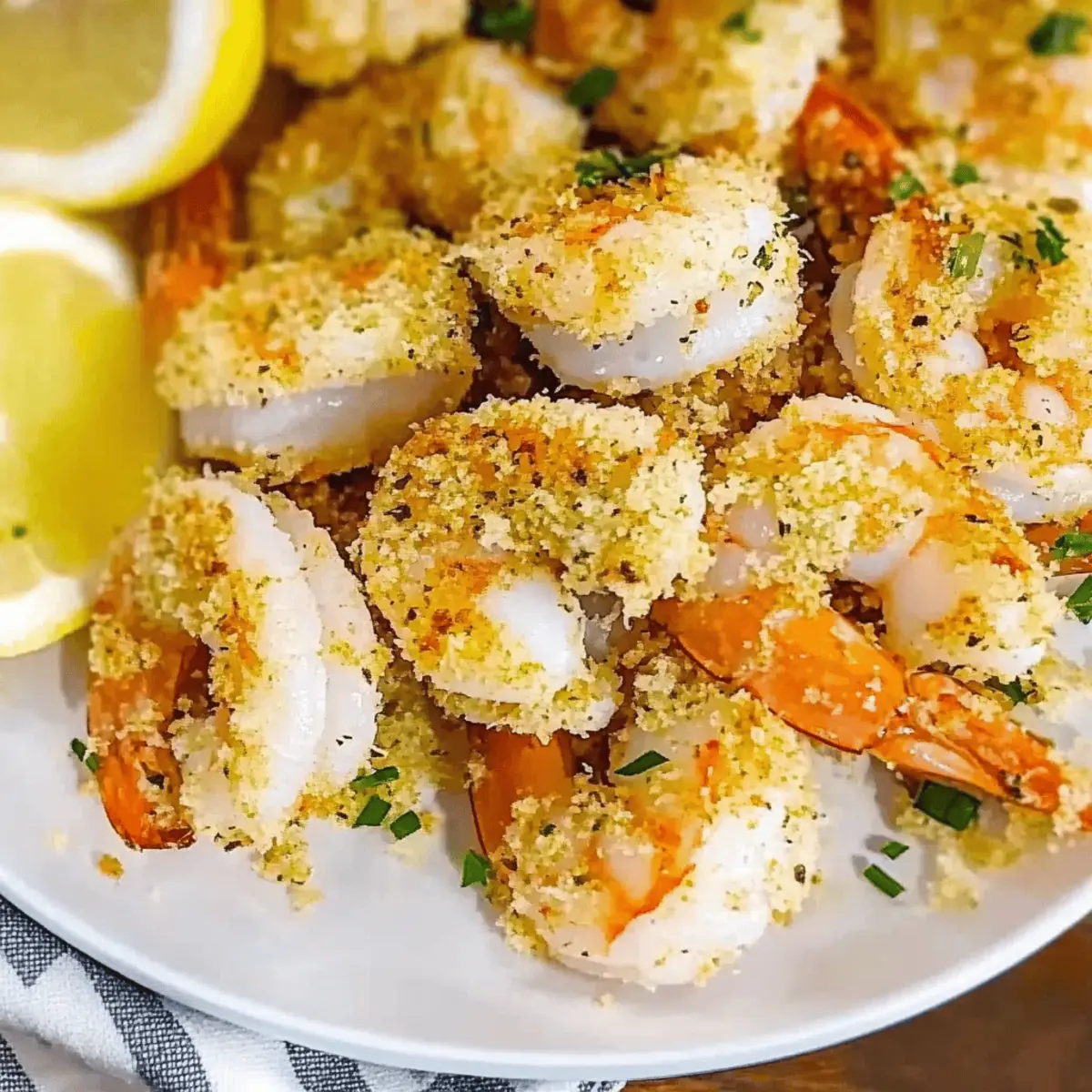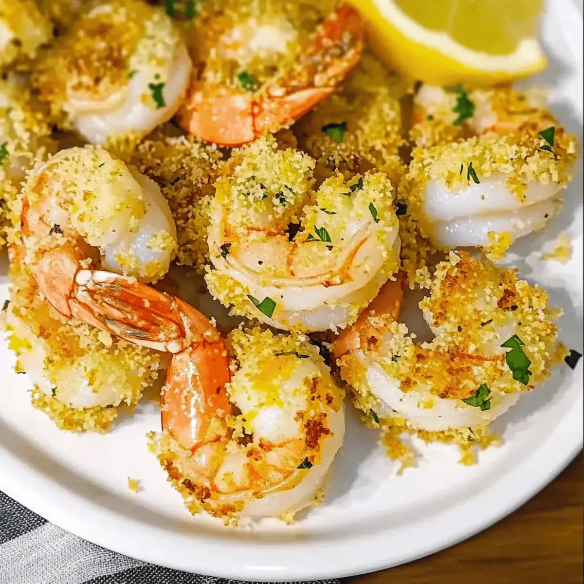 As I stood in my kitchen, the enticing aroma of garlic and butter wafted through the air, immediately transporting me to a charming seaside bistro. That’s when I knew it was time to whip up my family’s favorite, Magic Crispy Baked Shrimp with Garlic Lemon Butter. This simple yet sensational dish perfectly showcases juicy shrimp coated in a rich, buttery sauce, all crowned with a delightful crispy topping. What I love most? It comes together in no time, making it ideal for a quick weeknight dinner or impressing guests at a gathering. Plus, it’s a surefire crowd-pleaser that even the pickiest eaters will rave about! Curious to see how you can make this delightful dish a star on your dinner table? Why is this shrimp recipe a must-try? Quick and Easy: The Magic Crispy Baked Shrimp comes together in a flash, perfect for busy weeknights or surprise guests. Rich, Flavorful Sauce: This dish is infused with a deep garlic lemon butter sauce that elevates every bite, leaving everyone asking for seconds. Crispy Texture: The Parmesan breadcrumb crust adds a satisfying crunch that beautifully contrasts with the tender shrimp. Versatile Meal: Serve this dish over rice or alongside a fresh salad, making it adaptable for any occasion, whether it’s a casual family dinner or an elegant gathering. Impressive Presentation: With its vibrant colors and inviting aroma, this dish is sure to impress your guests and make them think you’re a culinary expert. Don’t forget to check out other delightful recipes like the Baked Salmon Pasta or Crispy Parmesan Chicken for more amazing flavors! Magic Crispy Baked Shrimp Ingredients Experience the delightful flavors with these essential components for your Magic Crispy Baked Shrimp. For the Shrimp Jumbo Shrimp – Essential for providing a juicy, tender base; fresh or frozen (thawed) works perfectly. Salt – Enhances all flavors, and using kosher salt yields the best results. Black Pepper – A dash of freshly ground pepper adds just the right amount of spice. For the Sauce Unsalted Butter – Contributes rich moisture; can be substituted with olive oil for a lighter version. Minced Garlic – Delivers a robust flavor; adjust to your garlic love! Lemon Juice – Brightens the dish; always go for fresh to elevate the taste. Dry White Wine – Adds depth, but chicken broth can replace it for a non-alcoholic option. For the Topping Panko Breadcrumbs – Creates that irresistible crispy topping; regular breadcrumbs work but may lack crunch. Parmesan Cheese – Offers a rich, cheesy flavor; feel free to substitute with nutritional yeast for a dairy-free dish. Fresh Parsley – A vibrant garnish; switch it up with basil for a different herbal twist. Unleash the magic with these ingredients and watch your family and friends fall in love with your Magic Crispy Baked Shrimp! Step‑by‑Step Instructions for Magic Crispy Baked Shrimp Step 1: Preheat Oven Start by preheating your oven to 425°F (220°C). This high temperature is essential for achieving that delightful crispy texture in your Magic Crispy Baked Shrimp. While the oven heats, gather all your ingredients to streamline the cooking process. Step 2: Prepare Baking Dish In a medium baking dish, combine 1/2 cup of dry white wine with 2 tablespoons of unsalted butter. Place the dish in the preheated oven and let it heat for about 10 minutes until the butter is melted and bubbly. This step will infuse the dish with flavor as it cooks. Step 3: Marinate Shrimp While the baking dish preheats, prepare your marinade by mixing the remaining melted butter, minced garlic, lemon juice, kosher salt, and freshly ground black pepper in a bowl. Once combined, add the jumbo shrimp and toss until they are well-coated in this rich garlic lemon butter mixture. Step 4: Make Topping In another bowl, combine panko breadcrumbs, grated Parmesan cheese, and a pinch of salt. Drizzle in the remaining 2 tablespoons of melted butter and mix thoroughly until the breadcrumbs are evenly coated. This mixture will create the crispy topping for your Magic Crispy Baked Shrimp. Step 5: Assemble Dish Take the prepared baking dish out of the oven and layer the marinated shrimp evenly across the bottom. Pour the remaining garlic butter sauce over the shrimp, ensuring each piece gets some sauce. Finally, generously sprinkle the breadcrumb mixture on top, covering the shrimp completely for maximum crunch. Step 6: Bake Carefully place the assembled dish back into the oven and bake for approximately 12 minutes. You’ll know the Magic Crispy Baked Shrimp is done when the shrimp turns opaque and the topping is golden brown. For an extra crispy finish, broil for an additional 1–2 minutes, watching closely to prevent burning. Step 7: Serve Once baked, remove the dish from the oven and let it rest for a few minutes to cool slightly. Garnish with freshly chopped parsley for a pop of color and serve immediately, allowing everyone to savor the irresistible combination of flavors and textures in your Magic Crispy Baked Shrimp. Make Ahead Options These Magic Crispy Baked Shrimp are perfect for meal prep enthusiasts! You can marinate the shrimp in the garlic lemon butter mixture up to 24 hours in advance, ensuring they absorb all that delicious flavor. Just prep the components separately; keep the breadcrumb topping in an airtight container to maintain its crispness. When you’re ready to serve, simply layer the marinated shrimp in the baking dish, top with the breadcrumb mixture, and bake as instructed. This way, you’ll enjoy restaurant-quality results with minimal effort during busy weeknights! Just remember, the fresher you serve them, the better the texture will be! Magic Crispy Baked Shrimp Variations Feel free to get creative with this recipe and let your taste buds lead the way! Scallops: Swap shrimp for scallops for a fresh twist on this dish; they’ll soak up the garlic lemon butter beautifully. Crushed Crackers: Use crushed crackers instead of panko 