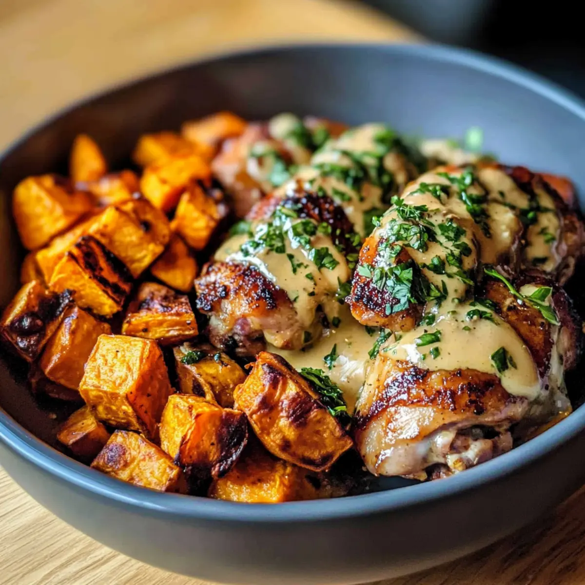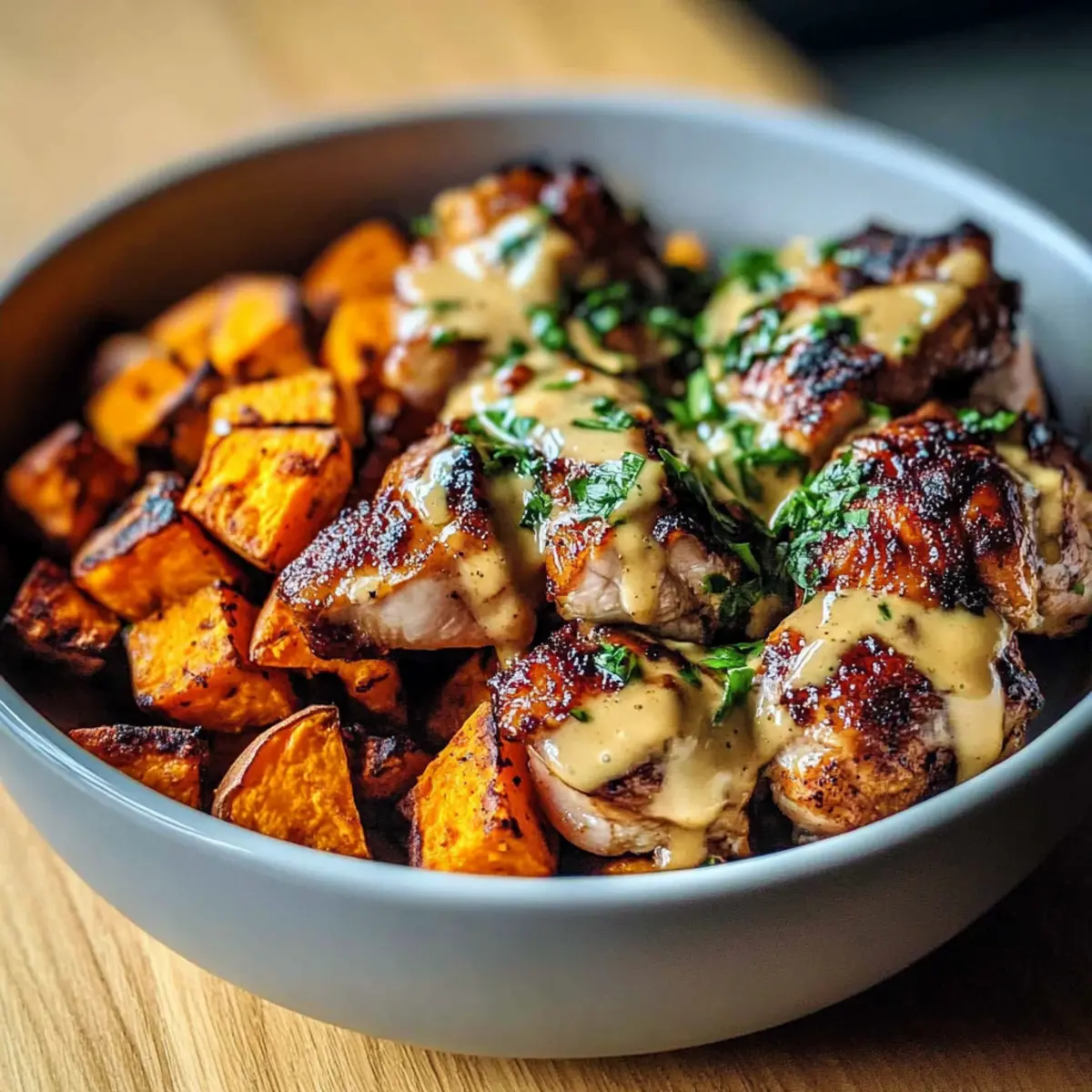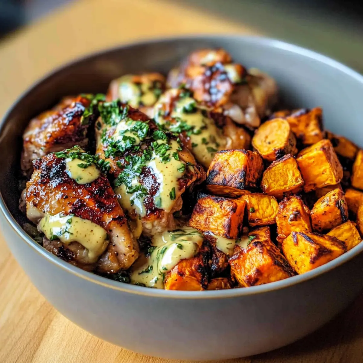 Healthy Ingredients: Using tender chicken thighs and fiber-rich sweet potatoes, this bowl is both nutritious and satisfying.