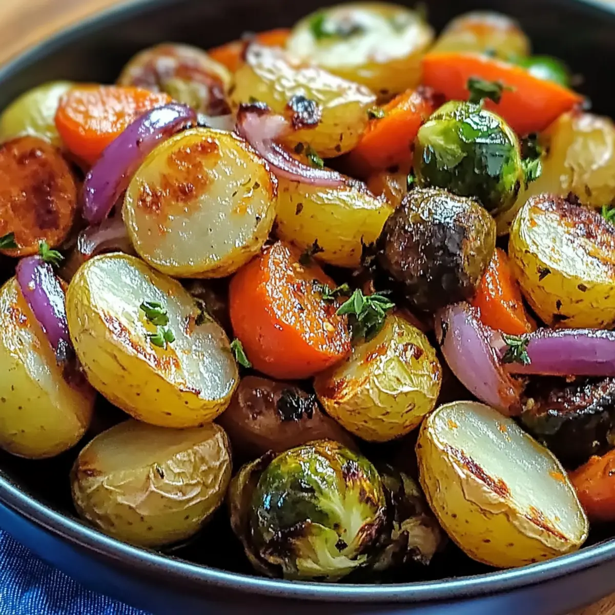 Absolutely! When selecting your vegetables, look for firm, fresh produce without dark spots or blemishes. Baby potatoes should be similar in size for even cooking. Fresh Brussels sprouts are key, so choose ones that are bright green and compact.