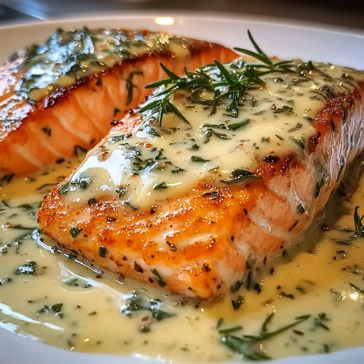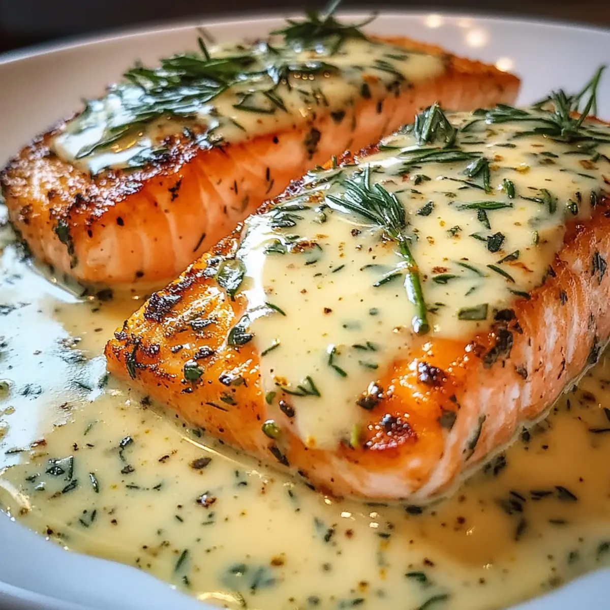 Facebook Twitter Pinterest LinkedIn“Did you hear what she said?” My friend’s eyes lit up as we lingered over dinner. “This Marry Me Salmon is basically magic on a plate!” You see, it’s not every day you find a dish that combines elegance with simplicity, and this salmon recipe does just that. It features perfectly seared salmon fillets paired with a creamy herb sauce that dances between garlicky richness and fresh herbal notes. Ideal for both a cozy weeknight meal or an intimate dinner that impresses, Marry Me Salmon is a quick-to-prepare crowd-pleaser that transforms your kitchen into a fine dining experience within 30 minutes. So, what are you waiting for? Let’s dive into creating this culinary masterpiece! Why is Marry Me Salmon so special? Irresistible flavor: This recipe combines perfectly seared salmon with a rich, creamy herb sauce that elevates any meal. Quick and easy: Get ready in just 30 minutes! No complicated steps or fancy techniques—ideal for busy nights when you want to impress. Versatile ingredients: Feel free to substitute proteins or herbs based on what you have at home, making it adaptable for various diets. Crowd-pleaser: Whether it’s a special date night or a family dinner, this dish is sure to delight anyone at your table. Elegant presentation: The beautiful colors and textures make it look like you’ve slaved for hours in the kitchen, while it’s really just a simple, home-cooked meal! Marry Me Salmon Ingredients • Get ready to create this delectable dish! For the Salmon Salmon fillets (4 x 6 oz) – Fresh salmon is recommended for a tender, flavorful base. For the Creamy Herb Sauce Heavy cream (1 cup) – Provides a rich consistency; substitute with coconut cream for a dairy-free option. Garlic (3 cloves, minced) – Essential for adding depth; don’t skimp on this aromatic. Butter (2 tablespoons) – A luxurious base that enhances the sauce’s flavor. Olive oil (1 tablespoon) – Perfect for searing salmon and achieves beautiful browning. White wine (1/4 cup) – Adds acidity to balance the creaminess; replace with chicken broth if avoiding alcohol. Fresh herbs (2 tablespoons, mixed rosemary, thyme, parsley) – Vital for brightness and flavor; switch herbs based on your preference. Salt and pepper – Key for seasoning; adjust to your taste for the best flavor. With these ingredients in hand, you’re just a few steps away from making Marry Me Salmon, a dish that’s sure to impress! Step‑by‑Step Instructions for Marry Me Salmon Step 1: Prepare Salmon Start by seasoning the salmon fillets with salt and pepper, allowing them to rest at room temperature for about 10 minutes. This step helps to ensure even cooking and enhances the flavors. While the salmon warms up, gather your utensils, such as a skillet and a spatula, for the cooking process ahead. Step 2: Sear Salmon In a large skillet, heat the olive oil over medium-high heat until it’s shimmering. Carefully place the seasoned salmon fillets skin-side up in the hot skillet. Sear for 4-5 minutes, or until the salmon develops a beautiful golden-brown crust. Gently flip each fillet and cook for an additional 3-4 minutes. Once done, remove the salmon from the skillet and set aside on a plate. Step 3: Cook Sauce In the same skillet, melt the butter over medium heat. Add the minced garlic and sauté for about 30 seconds, stirring frequently to prevent burning. As the garlic becomes fragrant, pour in the white wine, using a wooden spoon to scrape any tasty browned bits from the bottom of the pan. Allow the wine to reduce by half, which should take around 2 minutes. Step 4: Finish Sauce Pour in the heavy cream into the skillet, stirring well to combine. Bring the mixture to a gentle simmer and allow it to thicken slightly for about 2-3 minutes. Add the fresh herbs, adjusting seasoning with additional salt and pepper to taste. You’ll notice the sauce becoming rich and creamy, perfectly complementing your Marry Me Salmon. Step 5: Combine Carefully return the seared salmon fillets to the skillet, spooning the luscious creamy sauce over them. Heat everything through for another 2-3 minutes, letting the flavors meld beautifully. When the salmon is warmed and well-coated, garnish with additional fresh herbs for a pop of color and aroma before serving. What to Serve with Marry Me Salmon Transform your Marry Me Salmon into a delightful dining experience by pairing it with dishes that complement its rich, creamy flavors. Creamy Mashed Potatoes: The buttery, fluffy texture is perfect for soaking up the delicious sauce, making every bite unforgettable. Roasted Asparagus: These tender greens add a beautiful crunch and earthy flavor, balancing the richness of the creamy herb sauce. Fluffy Rice Pilaf: A light and fragrant side, rice pilaf offers a subtle foundation, allowing the salmon’s bold flavors to shine. Steamed Broccoli: Bright green broccoli adds color and nutrients, while its slight bitterness contrasts beautifully with the creamy sauce. Arugula Salad: Tossed in lemon vinaigrette, this peppery salad brings freshness that cuts through the richness of the dish. Garlic Bread: Crusty, warm bread is perfect for mopping up every last bit of the creamy sauce, ensuring nothing goes to waste. Chardonnay: A glass of chilled Chardonnay complements the salmon beautifully, enhancing the dish’s flavors with its crisp acidity and fruitiness. Expert Tips for Marry Me Salmon Perfectly Thawed: Always ensure your frozen salmon is completely thawed and patted dry. This prevents sticking and ensures a beautiful sear on your Marry Me Salmon. Don’t Rush the Searing: Allowing the salmon to develop a golden crust takes about 4-5 minutes per side. Avoid flipping too soon, or you risk breaking the fillets. Check Internal Temperature: For safely cooked salmon, aim for an internal temperature of 145°F (63°C). The fish should flake easily with a fork when done. Fresh Sauce Only: The creamy sauce is best made fres