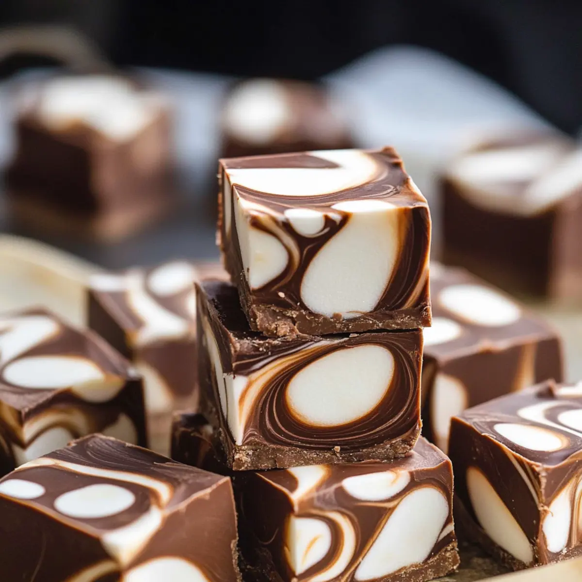 Facebook Twitter Pinterest LinkedInThere’s something comforting about the aroma of melting chocolate wafting through the kitchen, especially when it’s time to indulge in a sweet treat. That’s exactly what I feel each time I whip up this No-Bake Marshmallow Swirl Fudge. This recipe marries the rich, creamy goodness of semi-sweet chocolate with delightful ribbons of marshmallow fluff, creating a dessert that’s both indulgent and incredibly easy to make. With zero baking required, you can spend more time savoring the moment rather than slaving away in the kitchen! Plus, it’s easily adaptable for those who prefer dairy-free options. Want to put a creative spin on it? I’ve got variations up my sleeve that will keep everyone guessing. Curious about how this simple delight transforms while you swirl? Let’s dive into the magic of fudge! Why is this fudge so irresistible? Decadent, gooey goodness: With a heavenly blend of semi-sweet chocolate and sumptuous marshmallow fluff, each bite melts in your mouth. No baking required: Perfect for those busy days when you want a sweet treat without the oven fuss. Versatile variations: Whether you crave Peanut Butter Chocolate Swirl Fudge or a zesty Apple Cinnamon Fudge, this recipe has options to satisfy every palate. Dairy-free flexibility: With easy swaps, even those with dietary restrictions can indulge. Try using coconut condensed milk for a dairy-free delight! Crowd favorite: This treat is guaranteed to impress at parties or family gatherings, making it a go-to dessert that everyone will love. Experience this blissful creation and check out other delightful options like our Patriotic Fudge Festive recipe for more sweet inspiration! Marshmallow Swirl Fudge Ingredients For the Fudge Base Semi-sweet chocolate chips – Provides the perfect sweetness and structure; opt for dairy-free chocolate for a vegan delight. Sweetened condensed milk – Binds the ingredients together; substitute with coconut condensed milk for a dairy-free version. Unsalted butter (melted) – Adds richness and a creamy texture; use dairy-free butter or coconut oil to keep it dairy-free. Vanilla extract – Boosts the overall flavor of the fudge; try almond extract for a different taste profile. Salt – Balances the sweetness perfectly; no substitutions are needed here. For the Swirls Marshmallow fluff (or marshmallow cream) – Provides that signature gooey texture; mini marshmallows can be a fun alternative, but they’ll melt instead of holding shape. Get ready to create a delightful Marshmallow Swirl Fudge that everyone will rave about! Step‑by‑Step Instructions for Marshmallow Swirl Fudge Step 1: Melt ingredients In a medium saucepan, combine 2 cups of semi-sweet chocolate chips, 1 can of sweetened condensed milk, and ¼ cup of unsalted butter over low heat. Stir frequently for about 5–7 minutes, or until the mixture is completely smooth and glossy, ensuring no chocolate chips remain visible. Remove from heat once melted. Step 2: Add flavors To the melted chocolate mixture, stir in 1 teaspoon of vanilla extract and a pinch of salt, mixing well until fully incorporated. This enhances the flavor profile of your Marshmallow Swirl Fudge. Make sure you scrape down the sides of the saucepan to blend any remaining ingredients into the creamy mixture. Step 3: Prepare the baking dish Line an 8×8-inch baking dish with parchment paper, leaving some overhang for easy removal later. Pour the melted chocolate mixture evenly into the prepared dish, using a spatula to smooth the surface. Ensure the layer is even and reaches the corners to achieve a uniform fudge texture when set. Step 4: Swirl marshmallow fluff Spoon dollops of 1 cup of marshmallow fluff onto the top of the chocolate mixture, spacing them evenly. Using a knife or skewer, gently swirl the marshmallow into the chocolate without overmixing. You want to maintain prominent ribbons of marshmallow fluff for that delightful contrast when enjoying your Marshmallow Swirl Fudge. Step 5: Chill Place the baking dish in the refrigerator and chill for at least 2 hours, or until the fudge is completely set and firm to the touch. The cooling process is essential for getting the perfect texture; the fudge should be sliceable without crumbling when you remove it from the dish. Step 6: Cut and serve Once the fudge has chilled and set, carefully lift it out of the dish using the parchment paper overhang. Transfer it to a cutting board and cut into small squares or rectangles to enjoy a taste of your homemade Marshmallow Swirl Fudge. Serve immediately or store in an airtight container for later indulging. How to Store and Freeze Marshmallow Swirl Fudge Fridge: Store your fudge in an airtight container for up to 2 weeks. Keeping it refrigerated maintains its creamy texture and prevents it from becoming too soft. Freezer: For longer storage, wrap the fudge tightly in plastic wrap and place it in a freezer-safe container. It can last for up to 3 months in the freezer without losing flavor. Thawing: When you’re ready to enjoy your frozen Marshmallow Swirl Fudge, transfer it to the fridge for several hours or overnight to thaw. Reheating: If desired, warm up individual squares in the microwave for about 10-15 seconds for a soft, gooey treat that feels freshly made! What to Serve with Marshmallow Swirl Fudge There’s nothing quite like the joy of sharing sweet bites that complement each other perfectly. Fresh Berries: The tartness of strawberries or raspberries cuts through the sweetness, refreshing the palate between fudge bites. Vanilla Ice Cream: Creamy ice cream adds a delightful contrast in texture, enhancing the rich chocolate flavor while keeping every bite indulgent. Coffee or Espresso: The bold flavors of a rich coffee balance the sweetness beautifully, making for a delightful treat after dinner or alongside breakfast. Homemade Whipped Cream: Fluffy whipped cream brings a lightness to the dense fudge, adding an airy eleme