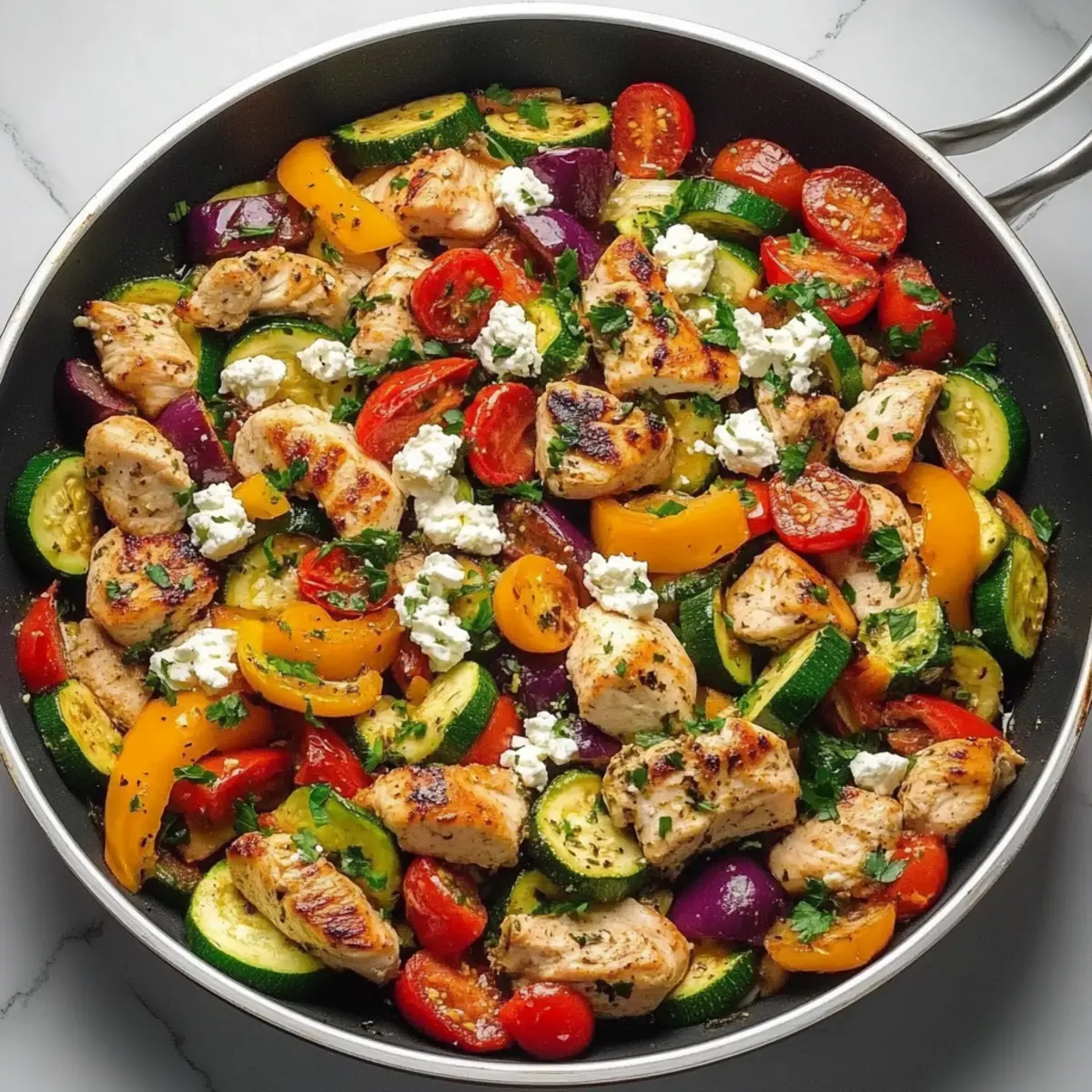 Facebook Twitter Pinterest LinkedInAs the sun sets over the Mediterranean, the air fills with the delightful aromas of fresh herbs and sizzling ingredients. That’s the moment I decided to recreate a comforting yet swiftly made meal—the Quick Mediterranean Chicken Stir Fry! Packed with tender chicken, vibrant vegetables, and a burst of zesty lemon, this dish becomes your go-to solution for healthy weeknight dinners. In just 30 minutes, you’ll serve a colorful, one-pan masterpiece that not only satisfies your hunger but also embraces the essence of Mediterranean cuisine. It’s low-carb, and packed with nutritious goodness, making it an ideal choice for both busy schedules and mindful eaters. Have you ever thought a quick dinner could taste this delightful? Let’s get cooking! Why is this recipe a must-try? Simplicity at its finest: With just one pan and 30 minutes, you can whip up this Mediterranean Chicken Stir Fry without breaking a sweat. Fresh Ingredients: Featuring tender chicken and colorful veggies, it’s a feast for the eyes and the palate, bursting with Mediterranean flavors! Healthy Option: This dish remains low-carb while being hearty enough to satisfy hungry appetites. Perfect for meal prepping, serve it with brown rice or quinoa for a complete meal. Flavor Explosion: The combination of fresh herbs, zesty lemon, and creamy feta cheese elevates this dish, making it utterly irresistible! Crowd Pleaser: Whether for family dinner or guests, this stir fry is sure to impress everyone at the table with its vibrant presentation and taste. Mediterranean Chicken Stir Fry Ingredients For the Chicken • Chicken Breasts – Lean protein source; choose boneless, skinless for a healthier option. For the Vegetables • Zucchini – Adds bulk and nutrition; slice into half-moons for even cooking. • Red Bell Peppers – Provides sweetness and color; diced for optimal texture. • Red Onion – Adds a mild sweetness; sliced for uniform cooking. • Cherry Tomatoes – Fresh and juicy; halved to incorporate into the stir fry. • Kalamata Olives – Briny flavor enhances Mediterranean taste; pitted and halved. • Garlic – Aromatic base for the dish; minced for distribution throughout the stir fry. • Sun-Dried Tomatoes – Adds concentrated flavor; chopped for even distribution. For Seasoning • Salt & Black Pepper – Use to enhance overall taste; adjust according to personal preference. • Dried Oregano, Basil, Thyme – Essential herbs for authentic Mediterranean flavor; use sparingly to avoid overpowering the dish. For the Finish • Extra Virgin Olive Oil – Adds healthy fats and rich flavor; essential for Mediterranean cooking. • Lemon – Provides acidity and brightness; juice added at the end before serving for freshness. • Feta Cheese – Creamy, tangy finish; crumbled over the stir fry before serving. • Fresh Parsley – Optional garnish for freshness and a pop of color. Step‑by‑Step Instructions for Mediterranean Chicken Stir Fry Step 1: Prep All Ingredients Begin by preparing all your ingredients to ensure a smooth cooking process. Chop the boneless chicken breasts into uniform bite-sized pieces for even cooking. Slice the zucchini into half-moons, dice the red bell peppers, and thinly slice the red onion. Halve the cherry tomatoes and pit and halve the Kalamata olives. Mince the garlic and chop the sun-dried tomatoes, so everything is ready to go. Step 2: Sear Chicken In a large skillet, heat 2 tablespoons of extra virgin olive oil over medium-high heat. Once the oil shimmers, add the chicken pieces in a single layer, ensuring they don’t overcrowd the pan. Sear the chicken for about 5-7 minutes, stirring occasionally, until it turns golden brown and is no longer pink in the center. Remove the chicken from the skillet and set it aside. Step 3: Sauté Vegetables In the same skillet, add the sliced red onion and minced garlic, sautéing them for about 2 minutes until fragrant. Next, add the diced red bell peppers and zucchini. Continue to sauté for about 3-4 minutes until the vegetables are tender but still slightly crisp, showcasing their vibrant colors. This mixture will add a wonderful flavor base for your Mediterranean Chicken Stir Fry. Step 4: Combine & Season Return the seared chicken to the skillet with the sautéed vegetables. Sprinkle in the dried oregano, basil, thyme, salt, and black pepper, then toss everything together to combine. Add the sun-dried tomatoes and halved olives, ensuring they evenly distribute across the stir fry. Squeeze the juice of half a lemon into the mixture for a refreshing zing that enhances the Mediterranean flavors. Step 5: Finish & Serve Once everything is well combined and heated through—this should take about 2 more minutes—remove the skillet from the heat. Crumble feta cheese generously over the top, letting it melt slightly from the warmth. Serve your Mediterranean Chicken Stir Fry immediately, garnished with fresh parsley for an elegant touch, and savor the harmonious flavors of this delightful dish. What to Serve with Mediterranean Chicken Stir Fry To transform your Quick Mediterranean Chicken Stir Fry into a full-on feast, consider these delightful sides and pairings that elevate both flavor and experience. Brown Rice: A wholesome base that absorbs the stir fry’s vibrant flavors, providing a satisfying and filling component. Quinoa Salad: A refreshing, protein-packed side with bright herbs and lemon that complements the dish’s Mediterranean essence and balances the meal. Roasted Asparagus: Crisp-tender and seasoned, these earthy spears lend a satisfying crunch that complements the stir fry’s tenderness. The light char enhances the overall flavor! Garlic Bread: Perfect for sopping up any remaining juices, this classic offers a crispy, buttery contrast to the fresh ingredients in your stir fry. Tzatziki Sauce: This creamy, tangy dip made from yogurt, cucumbers, and mint uplifts the meal with a refreshing