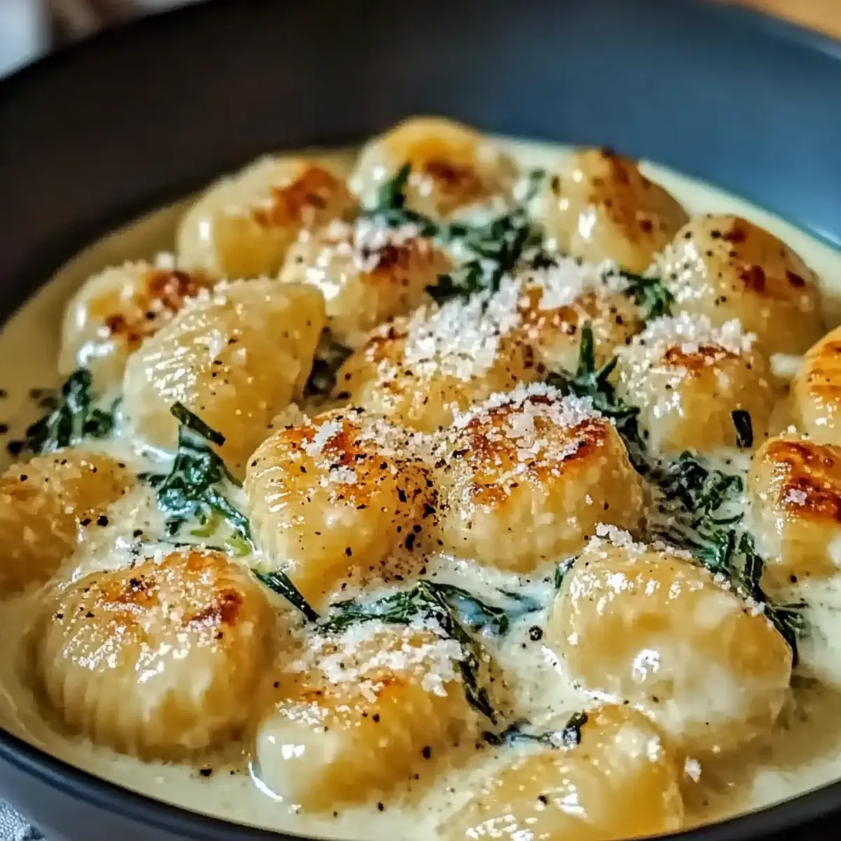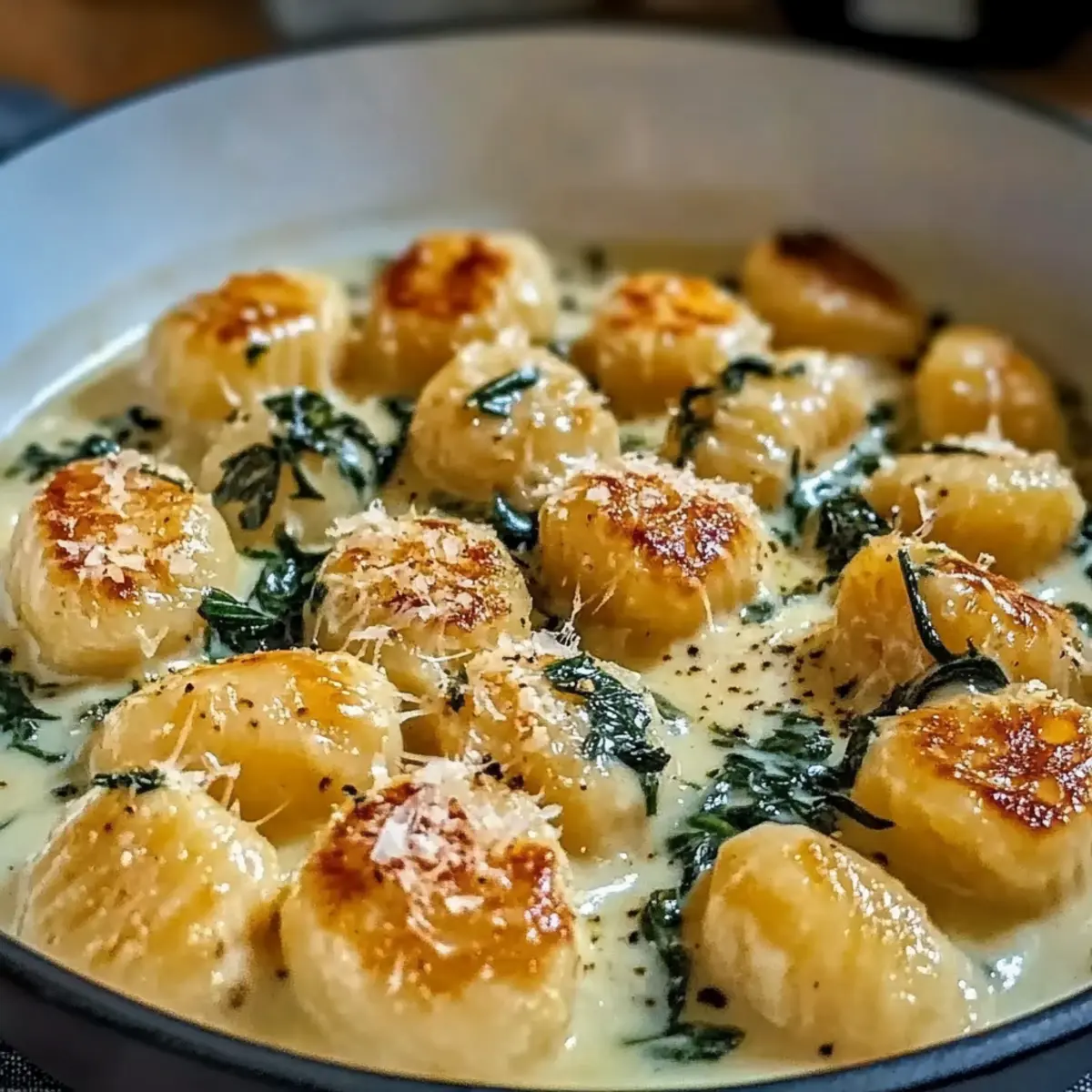 Facebook Twitter Pinterest LinkedInNothing compares to the delight of curling up with a comforting plate of homemade Millionaire Gnocchi with Creamy Sauce after a long day. This dish is truly a culinary hug, featuring fluffy potato dumplings tossed in a velvety sauce that sings of decadence without sacrificing simplicity. Whether it’s a cozy weeknight dinner or an elegant gathering with friends, this recipe is your go-to for creating unforgettable moments around the table. The best part? It comes together in under 30 minutes and can easily accommodate gluten-free options, making it accessible for everyone. Are you ready to bring a touch of Italian comfort into your home? Let’s get cooking! Why is Millionaire Gnocchi Irresistible? Comforting, Decadent Delight: This recipe embodies the essence of comfort food, making every bite a delightful experience. Quick and Easy: Perfectly suited for busy weeknights, it comes together in just 30 minutes, giving you more time to enjoy! Customizable Flavor Profiles: Feel free to elevate your dish with sautéed spinach or mushrooms, allowing for personal touches. Gluten-Free Friendly: Don’t worry if you need a gluten-free option—simply swap in gluten-free gnocchi! Crowd-Pleasing Appeal: This dish is sure to impress family and friends, making it ideal for both cozy dinners and festive gatherings. Indulge in the richness of homemade comfort with this Millionaire Gnocchi with Creamy Sauce today! Millionaire Gnocchi Ingredients Here’s everything you’ll need to create the comforting goodness of Millionaire Gnocchi with Creamy Sauce! For the Gnocchi Gnocchi – Use fresh or frozen potato dumplings to create the dish’s base; both work wonderfully. For the Creamy Sauce Heavy Cream – Adds a luscious texture to the sauce; substitute with half-and-half for a lighter version. Garlic – Fresh garlic brings aromatic depth; minced for the best flavor infusion. Parmesan Cheese – Freshly grated elevates the dish with a salty richness; don’t settle for pre-grated. Salt and Pepper – Essential for seasoning; adjust to your taste for a perfectly balanced flavor. Each of these ingredients plays a crucial role in crafting a sumptuous Millionaire Gnocchi experience. Prepare to dazzle your taste buds! Step‑by‑Step Instructions for Millionaire Gnocchi with Creamy Sauce Step 1: Prepare the Gnocchi Begin by bringing a large pot of salted water to a rolling boil. Gently add your gnocchi and cook according to the package instructions, usually about 2-3 minutes or until they float to the surface, indicating they are done. Once cooked, promptly drain the gnocchi and set them aside in a warm bowl. Step 2: Sauté Garlic In a large skillet, heat 1-2 tablespoons of olive oil over medium heat. Once the oil is shimmering, add minced garlic and sauté for about 1 minute, until it is fragrant and just starting to turn golden. Be careful not to let the garlic burn, as it will create a bitter taste, and you want that rich garlic aroma for your Millionaire Gnocchi with Creamy Sauce. Step 3: Add Cream Pour in 1 cup of heavy cream to the skillet with the sautéed garlic, stirring well to combine. Increase the heat slightly and bring the mixture to a gentle simmer, watching carefully for bubbling. Let it simmer for about 3-4 minutes, allowing the sauce to thicken slightly and develop a beautiful creamy texture. Step 4: Combine Gnocchi and Sauce Once the creamy sauce has thickened, reduce the heat to low and gently fold in the prepared gnocchi. Toss the gnocchi in the sauce, ensuring each piece is well-coated. Continue cooking for about 2-3 minutes to allow the flavors to meld, creating a luxurious Millionaire Gnocchi experience. Step 5: Stir in Parmesan Remove the skillet from heat and stir in ½ cup of freshly grated Parmesan cheese. Mix until the cheese melts into the creamy sauce, enhancing its richness and flavor. Taste and season with salt and pepper as desired, adjusting to your personal preference for the perfect comfort food. Step 6: Serve and Garnish Plate the creamy Millionaire Gnocchi, making sure to capture that scrumptious sauce on each serving. Optionally, garnish with additional grated Parmesan, freshly chopped herbs like parsley or basil, and perhaps a sprinkle of pepper for a touch of flair. Serve immediately while hot for the ultimate cozy dining experience. Expert Tips for Millionaire Gnocchi Use Fresh Ingredients: Fresh garlic and freshly grated Parmesan greatly enhance the flavor of your Millionaire Gnocchi with Creamy Sauce, so avoid pre-packaged options. Watch Cooking Time: Be careful not to overcook the gnocchi; they should float in boiling water, indicating they’re done. Remove them promptly to avoid a mushy texture. Reheat Carefully: If you’re making the creamy sauce ahead of time, reheat it gently on low heat while tossing in the cooked gnocchi to preserve its creaminess. Personalize Your Dish: Want to elevate your Millionaire Gnocchi? Consider adding sautéed mushrooms or fresh spinach for an exciting flavor twist. Adjust for Creaminess: If you prefer a lighter sauce, try substituting heavy cream with half-and-half while maintaining that luscious, creamy texture you crave. How to Store and Freeze Millionaire Gnocchi Fridge: Store any leftover Millionaire Gnocchi in an airtight container for up to 3 days. Reheat gently on the stovetop for best results. Freezer: If you want to keep them longer, freeze uncooked gnocchi by laying them flat on a baking sheet. Once frozen, transfer to a zip-top bag for up to 3 months. Reheating: To reheat frozen gnocchi, no need to thaw—just cook them in a pot of boiling water until they float. For the creamy sauce, gently heat in a pan until warmed through. Safety Tip: Always store your creamy sauce separately if you have leftovers, sealing it well to maintain its rich flavor and texture. Make Ahead Options Preparing Millionaire Gnocchi with Creamy Sauce ahead of time is a game-changer for busy home cooks! You 