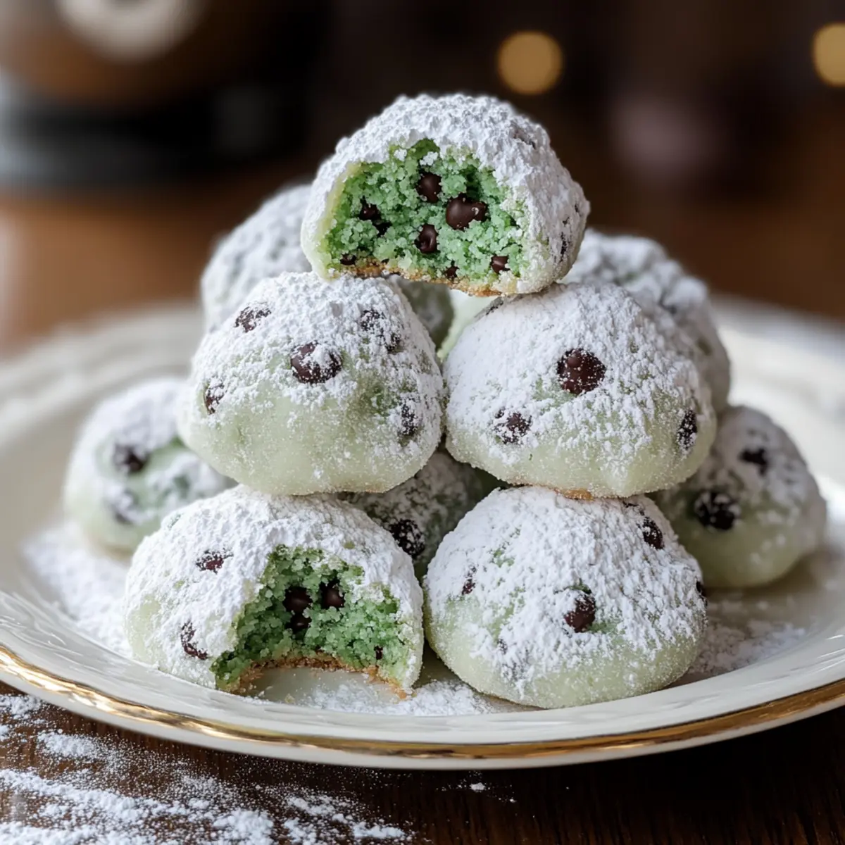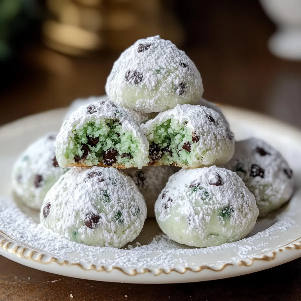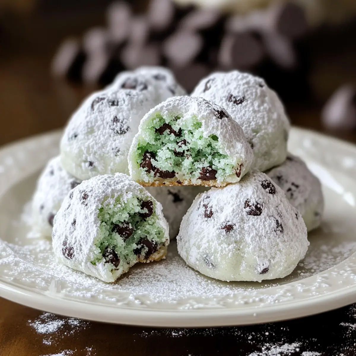 Enjoy these Mint Chocolate Chip Snowball Cookies that combine buttery sweetness with a refreshing mint kick, perfect for the holidays.