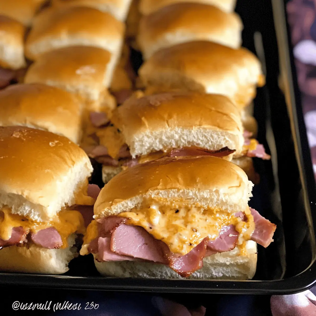 The aroma of smoked bacon and bubbly cheese fills the air, whisking me away to a cozy Southern gathering. Enter the Mississippi Sin Ham Sliders, where flavors meld into creamy perfection, making every bite a treat. These party-friendly snacks offer a delightful twist on the classic Mississippi Sin dip, transforming it into warm, gooey sliders that are sure to wow your guests. Not only are they a cinch to whip up, but they can also be made ahead of time, allowing you to mingle instead of being stuck in the kitchen. Whether you’re hosting game day or a casual get-together, these sliders are bound to become the star of the show! Ready to dive into this deliciously easy recipe? Why are Mississippi Sin Ham Sliders a Must-Try? Flavor Explosion: Each slider is loaded with a creamy, zesty filling, making every bite a savory delight. Easy to Make: The straightforward recipe means you can whip up a batch even on busy days. Party-Ready: Perfect for game day or family gatherings, these sliders are sure to impress your guests. Make-Ahead Magic: Prep the dip a day in advance and assemble just before baking for stress-free entertaining. Customization Galore: Feel free to swap in your favorite cheeses or meats—pepper jack for spice, turkey for lighter fare! These Mississippi Sin Ham Sliders are the warm embrace your next gathering needs. For similar party-friendly bites, check out these delicious Bang Chicken Sliders or try the comforting Hamburger Stroganoff Discover. Mississippi Sin Ham Sliders Ingredients Looking to create the ultimate party snack? Here’s what you need! For the Sliders Hatfield Thick-Cut Hardwood Smoked Bacon – Provides a crispy, smoky flavor; substitute with turkey bacon for a lighter option. Hatfield Classic Boneless Ham – The star protein that adds savory depth; any deli or pre-cooked ham can be a substitute. Soft Pull-Apart Slider Rolls – Provides the base for the sliders; Hawaiian rolls can add sweetness. For the Creamy Filling Cream Cheese – Gives the dip a creamy texture; can replace with Greek yogurt for a lighter version. Yellow Cheddar Cheese – Adds sharpness and meltiness; use a mix of cheeses (like mozzarella or pepper jack) for variety. Sour Cream – Contributes creaminess and tang; yogurt can be a substitute. Mayonnaise – Adds richness; vegan mayonnaise can be used for a dairy-free option. Freshly chopped Scallions – Provides a fresh, oniony crunch; substitute with chives for a milder flavor. Hot Sauce – Adds heat; use a milder sauce or omit for less spice. Worcestershire Sauce – Enhances flavor depth; Tamari can be a gluten-free substitute. Kosher Salt – Enhances flavor; sea salt can be used in equal amounts. Freshly ground Black Pepper – Adds seasoning; pre-ground pepper is an alternative. Onion Powder – Provides depth and sweetness; can be omitted or replaced with fresh onion. Garlic Powder – Adds savory flavor; fresh minced garlic can be used instead. For Finishing Butter – For brushing rolls before baking; olive oil can be used for a dairy-free option. Now that you have all the delicious ingredients for your Mississippi Sin Ham Sliders, you’re one step closer to hosting an unforgettable gathering! Step‑by‑Step Instructions for Mississippi Sin Ham Sliders Step 1: Preheat the Oven Begin by preheating your oven to 350°F (175°C). This temperature is essential for achieving that golden, bubbly finish on your sliders. While the oven heats up, you can multitask and get your ingredients ready, ensuring a seamless cooking experience. Step 2: Bake the Bacon Line a baking sheet with parchment paper and arrange the Hatfield Thick-Cut Hardwood Smoked Bacon in a single layer. Bake in the preheated oven for about 15-20 minutes until the bacon is crispy and golden brown. Once done, remove from the oven and let it cool before chopping it into smaller pieces for your creamy filling. Step 3: Prepare the Ham While the bacon cools, take the Hatfield Classic Boneless Ham and slice it into thin pieces, ensuring that each slice is uniform for even layering. This will help the ham fit perfectly into your sliders and maintain an enjoyable consistency within each bite of the Mississippi Sin Ham Sliders. Step 4: Mix the Filling In a large mixing bowl, combine the softened cream cheese, shredded yellow cheddar cheese, sour cream, mayonnaise, chopped scallions, hot sauce, Worcestershire sauce, kosher salt, freshly ground black pepper, onion powder, garlic powder, and the crumbled bacon. Stir this mixture until it is well-combined and creamy, creating the delicious filling that makes these sliders irresistible. Step 5: Prepare the Slider Rolls Take your soft pull-apart slider rolls and slice them in half horizontally. Generously spread the creamy filling mixture on the bottom halves of the rolls, ensuring an even layer. This allows the flavors to penetrate the bread and create a delectable bite of Mississippi Sin Ham Sliders in every mouthful. Step 6: Assemble the Sliders Layer the thin slices of ham on top of the filling on the bottom halves, covering the creamy mixture completely. Once the ham is stacked, carefully place the top halves of the slider rolls back on. This simple step creates the perfect vessel for the warm, melted toppings and ensures each slider is packed with savory goodness. Step 7: Pack the Sliders Gently pack the assembled sliders tightly in a baking pan, ensuring they are snug to promote even heating. Brush the tops with melted butter to create a crispy, golden crust. Once brushed, cover the pan with parchment paper and then with aluminum foil to keep moisture in while baking. Step 8: Bake the Sliders Place the baking pan in the oven and bake the Mississippi Sin Ham Sliders for 10 minutes, covered. After 10 minutes, carefully remove the foil and bake for an additional 15 minutes, allowing them to become golden and bubbly. Keep an eye on them towards the end to prevent over-browning. Step 9: Serve and Enjoy Once baked to perfection,