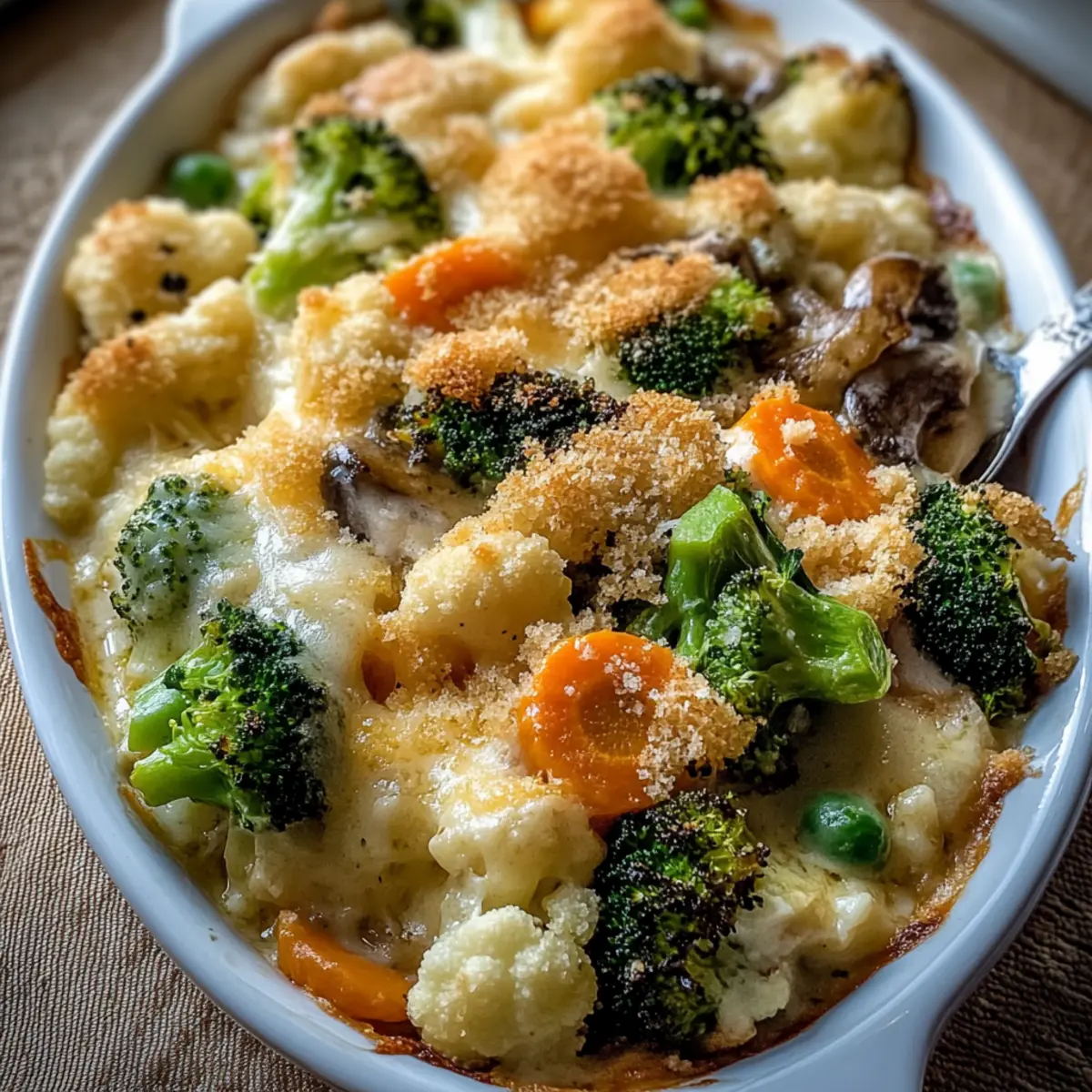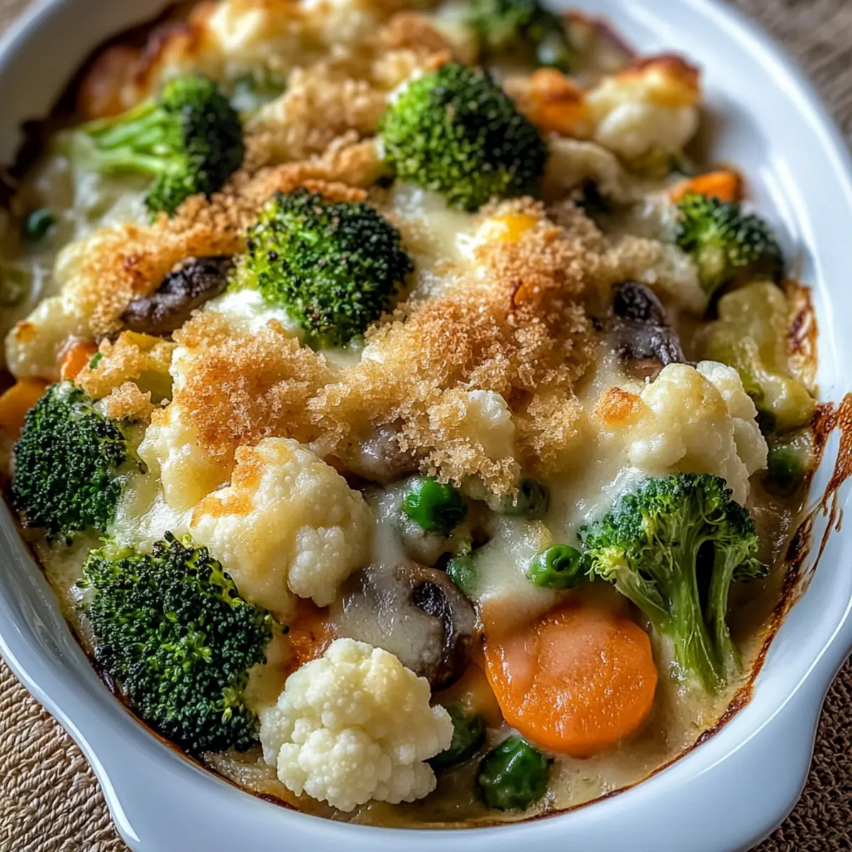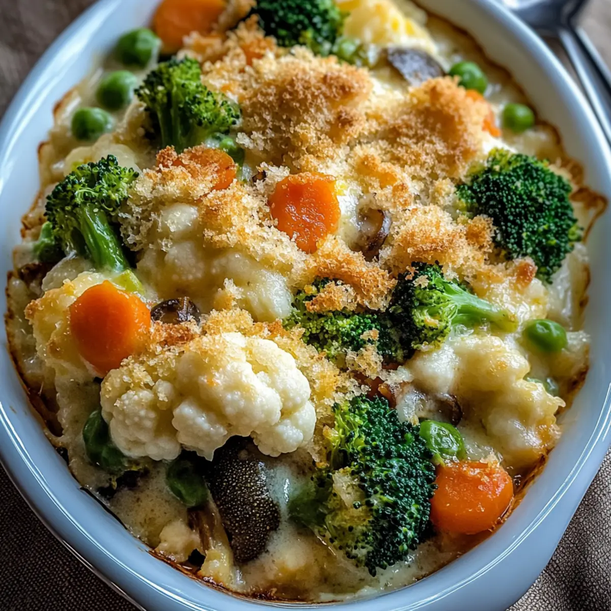 Facebook Twitter Pinterest LinkedInAs I pulled my Mixed Vegetable Casserole out of the oven, the savory aroma enveloped my kitchen, instantly bringing back memories of family gatherings and potluck dinners. This cheerful dish is the epitome of comfort food, packed with tender broccoli, sweet carrots, earthy mushrooms, and vibrant peas, all cloaked in a rich, creamy cheddar sauce. What I love most about this recipe is not only its quick prep time, making it a perfect weeknight meal, but also its versatility; you can easily customize it with seasonal vegetables to fit your taste or dietary needs. With its bubbling golden top and colorful inside, it’s an absolute crowd-pleaser that never fails to warm hearts and bellies. Are you ready to create your own comforting masterpiece? Why is this casserole a must-try? Comforting Dish: This Mixed Vegetable Casserole is the ultimate cozy meal, perfect for chilly evenings or family gatherings. Easy to Make: With minimal prep and cooking time, you can whip this up in no time, making it a fantastic choice for busy weeknights. Customizable: Feel free to swap in seasonal veggies, just like you can in a classic Southern Squash Casserole or a flavorful Hobo Casserole Ground. Crowd-Pleaser: Bright colors and creamy textures make this dish a visual and culinary delight that everyone will love. Nutritious: Packed with vitamins and nutrients from a colorful veggie medley, this casserole offers both taste and health benefits, making it a win-win! Mixed Vegetable Casserole Ingredients Unlock the secret to a comforting classic! For the Casserole Broccoli florets – Provides a crunchy texture and vibrant color; substitute with asparagus or green beans if desired. Cauliflower florets – Adds creaminess and a mild flavor; can be swapped with more broccoli or zucchini. Sliced carrots – Brings sweetness and color contrast; alternatives include bell peppers for a different flavor. Sliced mushrooms – Imparts umami depth; any variety of mushrooms works well or omit for a lighter dish. Frozen peas – Adds sweetness and vibrant color; fresh peas can be used, though cooking time may vary. Chopped onion – Builds a flavor base with sweetness when sautéed; shallots make an excellent milder substitute. Minced garlic – Enhances aroma and flavor; garlic powder can be used as a quick substitute. For the Sauce Olive oil – Ideal for sautéing aromatics; any neutral oil, like canola, can be swapped in. Shredded cheddar cheese – Provides creaminess and rich flavor; opt for dairy-free cheese for a vegan option. Sour cream – Adds tang and creaminess; Greek yogurt is a great lower-fat alternative. Cream of mushroom soup – Binds ingredients together; homemade mushroom sauce or a vegan cream soup can also work. Salt – Enhances all flavors; adjust according to your taste preferences. Black pepper – Adds warmth; use white pepper for a milder option. Dried thyme – Contributes herbal notes; other herbs like rosemary or Italian seasoning can be swapped as well. For the Topping Bread crumbs – Forms a crunchy topping; Panko bread crumbs or crushed cornflakes provide extra crunch and texture. Grated Parmesan cheese – Complements the breadcrumbs for added flavor; nutritional yeast is a stellar vegan substitute. Cooking spray – Prevents sticking in the baking dish; oil can also be used for greasing. With these ingredients ready, you’re one step closer to creating the most delightful Mixed Vegetable Casserole! Step‑by‑Step Instructions for Creamy Mixed Vegetable Casserole Step 1: Preheat the Oven Begin by preheating your oven to 350°F (175°C). This temperature is perfect for achieving a golden brown topping while ensuring the mixed vegetable casserole heats through completely. While your oven warms up, gather your ingredients for the next steps, creating an organized kitchen space. Step 2: Blanch the Vegetables In a large pot, bring salted water to a rolling boil, then add the broccoli florets, cauliflower florets, and sliced carrots. Blanch the vegetables for 2-3 minutes until they are bright in color and slightly tender yet still crisp. Drain the veggies thoroughly and set them aside in a bowl, ready to join the casserole mix. Step 3: Sauté the Aromatics In a large skillet, heat about 2 tablespoons of olive oil over medium heat. Add the chopped onion and minced garlic, sautéing for about 5 minutes until they become soft and translucent. Keep stirring them occasionally to prevent burning, inhaling the delightful aroma as the flavors meld together. Step 4: Cook the Mushrooms Once the onions and garlic have softened, add the sliced mushrooms to the skillet. Cook for an additional 5 minutes, stirring frequently, until they are nicely browned and tender. This step enhances the umami flavor in your creamy mixed vegetable casserole, making it even more delicious. Step 5: Combine the Vegetables In a large mixing bowl, combine the blanched vegetables with the sautéed onion and mushroom mixture. Then, fold in the frozen peas, allowing their sweetness to blend with the other ingredients. Use a spatula to gently mix everything, ensuring even distribution throughout the mixture. Step 6: Prepare the Cheese Sauce In a separate bowl, mix together the shredded cheddar cheese, sour cream, and cream of mushroom soup. Season the mixture with salt, black pepper, and dried thyme, stirring until smooth and creamy. This cheese sauce will bring your mixed vegetable casserole to life, providing that comforting richness everyone loves. Step 7: Combine the Mixtures Pour the cheese sauce over the vegetable mixture in the large bowl. Toss everything together gently until the vegetables are fully coated in the creamy sauce. This step ensures that every bite of the mixed vegetable casserole is full of flavor and creaminess. Step 8: Transfer to Baking Dish Lightly spray a 9×13-inch baking dish with cooking spray to prevent sticking. Carefully transfer the combined vegetable and cheese m
