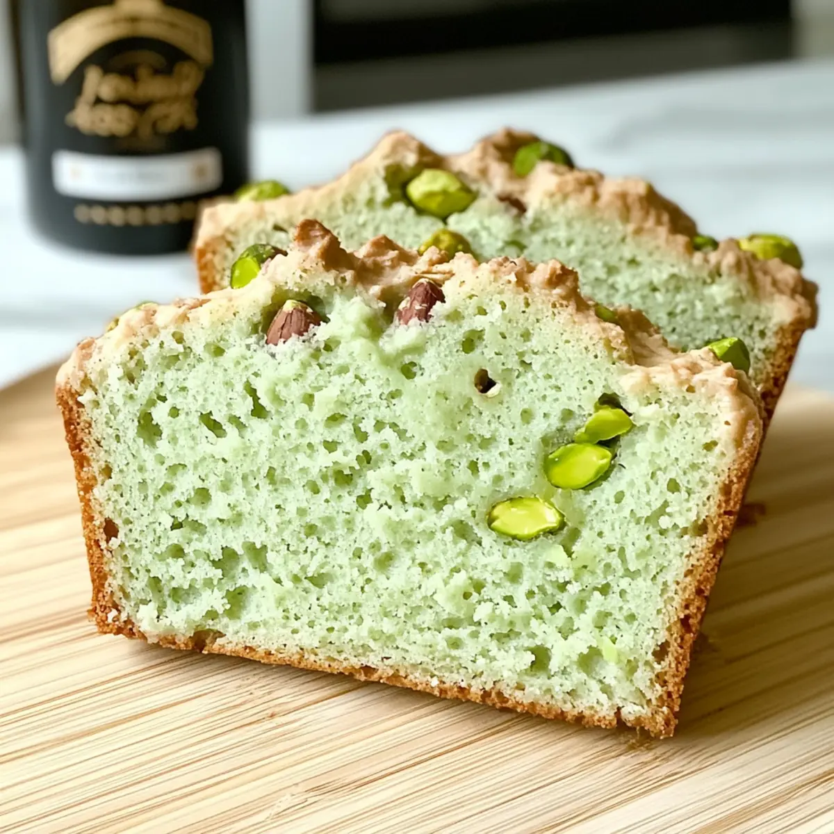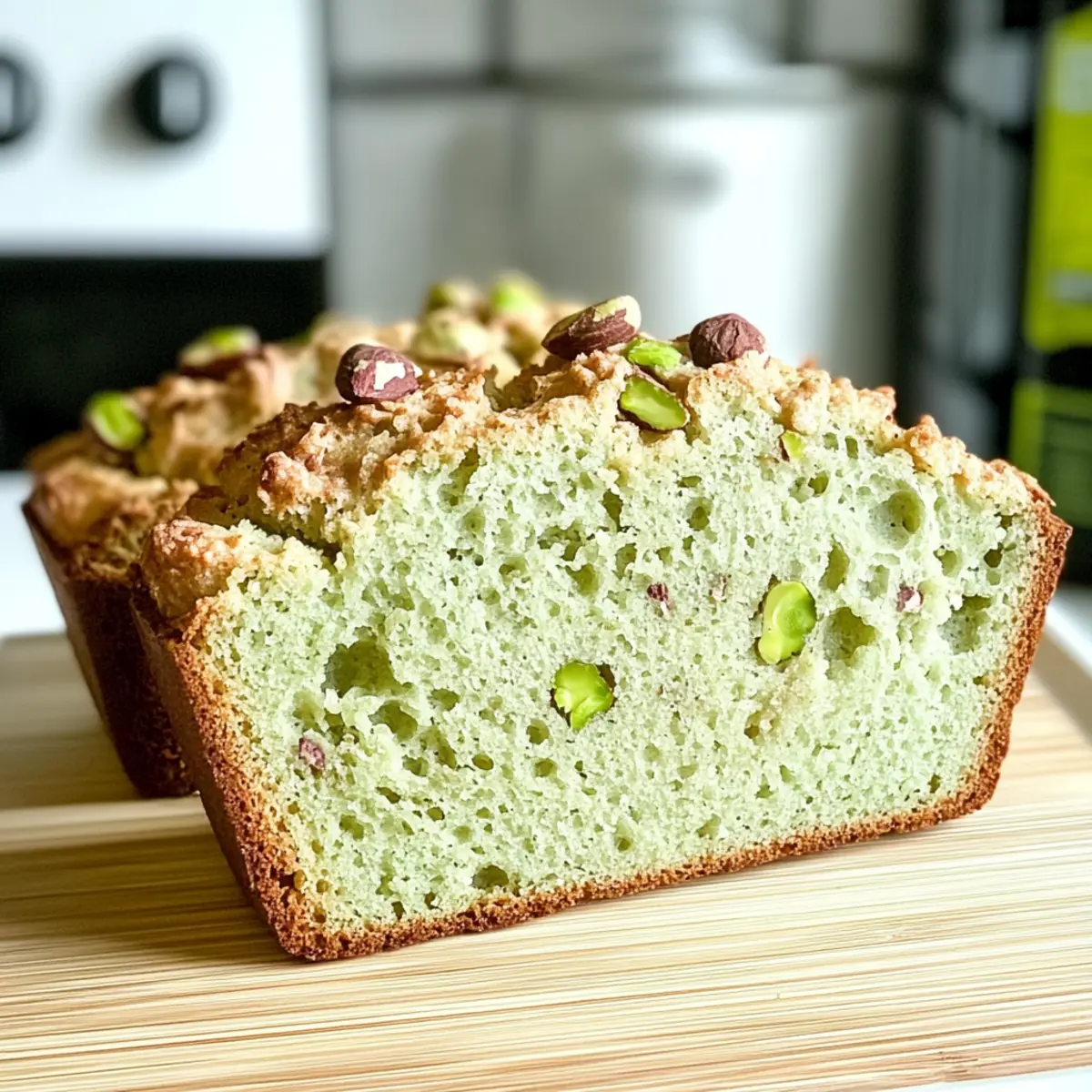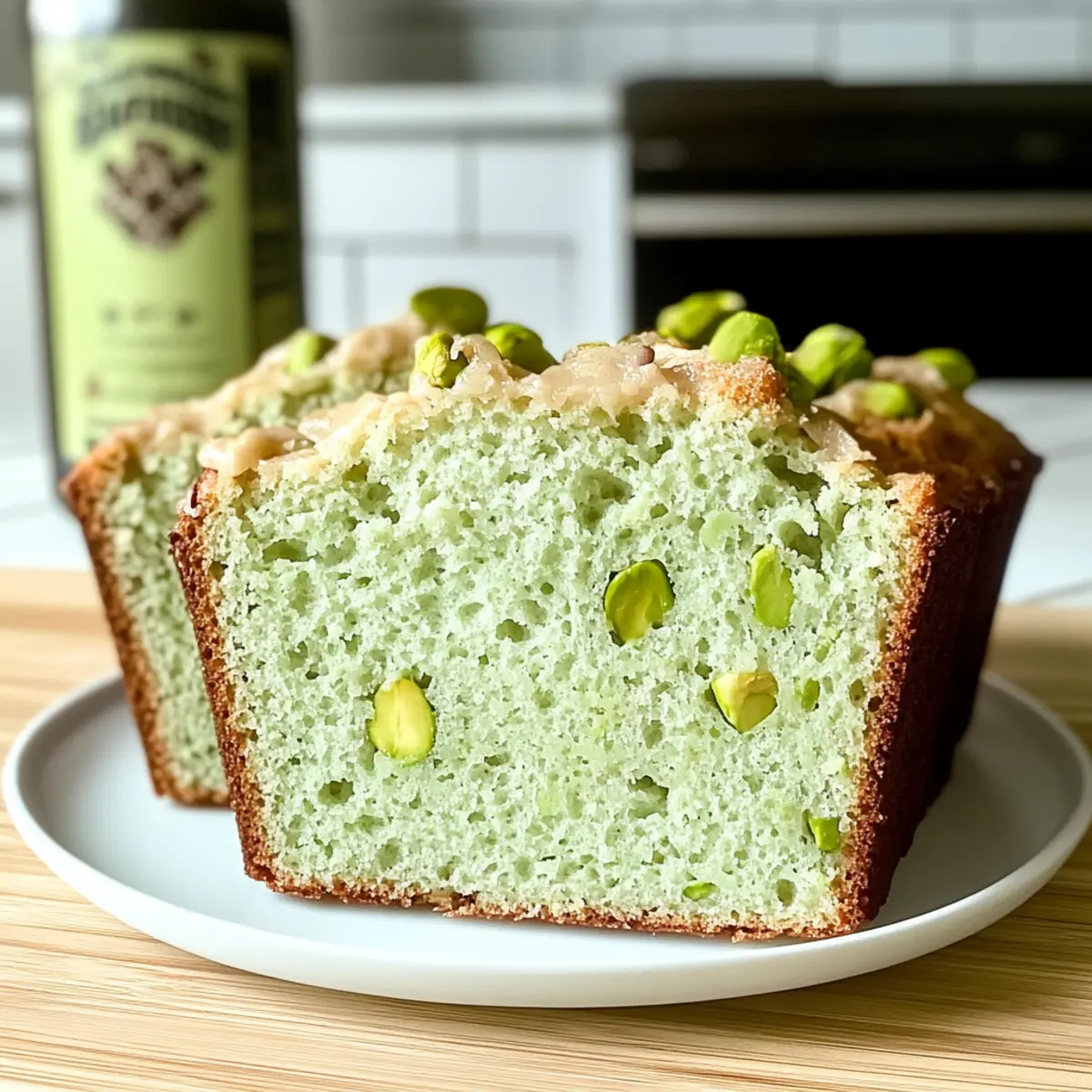 Facebook Twitter Pinterest LinkedInAs I pulled the freshly baked loaf out of the oven, the subtle yet intoxicating scent of pistachios wafted through my kitchen, instantly drawing everyone’s attention. My Moist Pistachio Pudding Bread is not only a quick dessert to whip up but also a guilt-free delight that wears many hats: enjoy it for breakfast, an afternoon snack, or a cozy after-dinner treat. With its tender crumb and just the right amount of sweetness, this recipe offers a fantastic way to treat yourself without the usual baking fuss. Plus, you can easily jazz it up with optional add-ins, ensuring that every bite feels special. Are you ready to embrace the joys of homemade goodness? Let’s dive in and make this scrumptious bread together! Why is this Pistachio Bread Irresistible? Flavorful Experience: The delicious pistachio flavor makes this bread a standout treat for any occasion. Guilt-Free Indulgence: With low-fat ingredients, you can savor this bread without the guilt, making it a great choice for health-conscious bakers. Versatile Delight: Ideal for breakfast, snacks, or desserts, it fits perfectly into any meal plan. Quick and Easy: Ready in just over an hour, this recipe simplifies baking, letting you enjoy homemade goodness without the hassle. Customization Galore: With endless variations like adding chocolate chips or coconut flakes, every loaf can be uniquely yours! Pair it with a warm cup of coffee or try it alongside some Cheesy Garlic Bread for a delightful brunch spread. Moist Pistachio Pudding Bread Ingredients Note: Gather these essentials to whip up your deliciously moist pistachio pudding bread! For the Bread Base All-Purpose Flour – Provides structure; no substitutions recommended for a consistent texture. Large Eggs – Incorporate moisture and aid in leavening; use room temperature eggs for better blending. Unsalted Butter – Adds richness and moisture; can be melted for easier mixing. Salt – Enhances flavor; use kosher or table salt. Baking Powder – Acts as a leavening agent; ensure it’s fresh for best results. White Sugar – Sweetens the bread; swap with brown sugar for a richer flavor profile. 2% Milk – Adds moisture; dairy-free alternatives can be used if needed. Jell-O Pistachio Pudding Mix – Infuses pistachio flavor and moisture; instant or sugar-free versions work well. Optional Enhancements Chopped Pistachios – Adds texture and nutty flavor; can be mixed in or used as a topping. Icing Sugar – For glazing if desired; adjust with milk for a desired consistency. Step‑by‑Step Instructions for Moist Pistachio Pudding Bread Step 1: Prepare Oven and Pan Begin by preheating your oven to 350°F (175°C). While the oven warms, take a loaf pan and generously grease it with butter or cooking spray to prevent sticking. This initial step ensures that your Moist Pistachio Pudding Bread cooks evenly and releases easily once baked. Step 2: Mix Base Ingredients In a large mixing bowl, combine the white sugar, large eggs, and melted unsalted butter. Using a hand mixer or whisk, beat the mixture on medium speed for about 2–3 minutes, until it becomes light and fluffy. The air incorporated during this step is key to achieving a tender texture in your bread. Step 3: Incorporate Wet Ingredients Next, stir in the 2% milk and Jell-O pistachio pudding mix into the egg mixture, blending until fully combined. Take care to scrape down the sides of the bowl to ensure everything is mixed evenly. This step is crucial for infusing that delightful pistachio flavor into your bread. Step 4: Fold in Flour Gradually add the all-purpose flour, baking powder, and salt to your wet mixture. Gently fold the flour into the batter with a spatula until just combined, being careful not to overmix. Overmixing can result in a denser loaf, so stop as soon as you see no visible flour in the batter. Step 5: Transfer to Pan Pour the smooth batter into your prepared loaf pan, using a spatula to scrape it all out. Smooth the top of the batter with the spatula to create an even surface. Place the loaf pan in the preheated oven and bake for 40–50 minutes, or until a toothpick inserted into the center comes out clean. Step 6: Cool and Serve Once baked, remove the pan from the oven and let the Moist Pistachio Pudding Bread cool in the pan for about 10 minutes. Afterward, carefully turn it out onto a wire rack to cool completely. This cooling step ensures the bread maintains its moisture and makes slicing a breeze! What to Serve with Moist Pistachio Pudding Bread As you savor the tender bites of this delightful bread, think about the perfect pairings that will elevate your dining experience even more. Creamy Yogurt: Serve a dollop of Greek yogurt on the side for a tangy contrast that complements the bread’s sweetness. Fresh Fruit Medley: Brighten your plate with a colorful mix of fruits like berries and citrus; their acidity balances the richness of the bread perfectly. Honey Dip: A simple honey glaze drizzled over each slice adds a touch of sweetness while enhancing the pistachio flavor with every bite. Nutty Tea: Pair this bread with a warm cup of chai or almond-infused tea; the warmth and spices will create a lovely, comforting experience. Melted Chocolate: For a decadent twist, serve alongside a small bowl of melted dark chocolate for dipping; it adds a luxurious touch to each slice. Cheese Platter: A soft brie or creamy goat cheese makes a delightful companion. The rich, creamy textures beautifully contrast with the moist pistachio bread. Think of these pairings as opportunities to create a feast that turns any moment into a heartfelt gathering filled with flavors and warmth! Expert Tips for Moist Pistachio Pudding Bread Avoid Overmixing: Gently fold in flour until just combined to maintain a light and tender loaf. Overmixing can lead to dense bread. Check Baking Powder Freshness: Always check that your baking powder is fresh, as expired baking powder can ruin the rise of your
