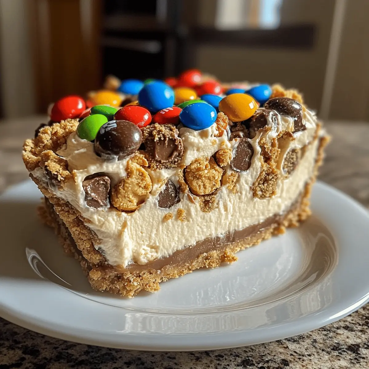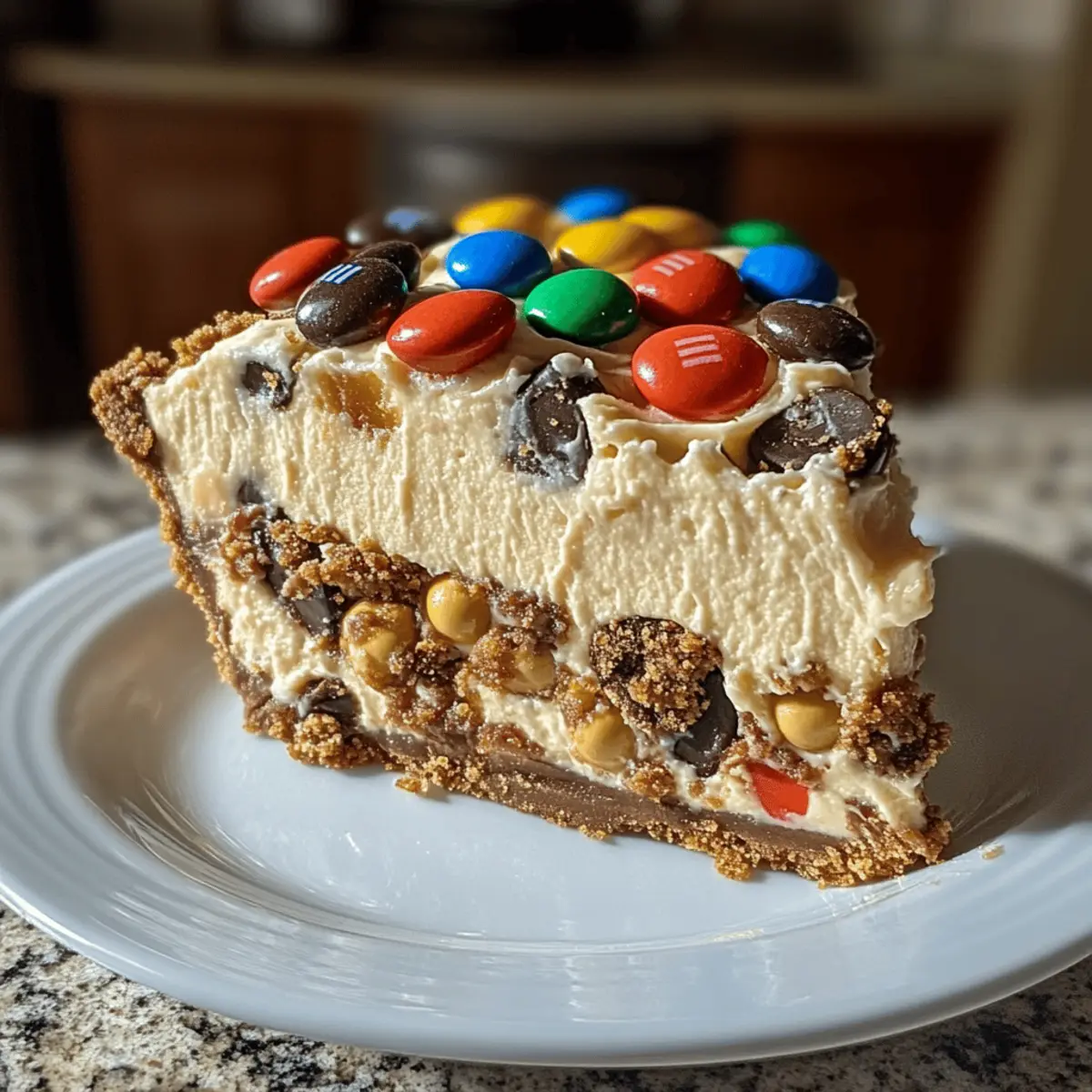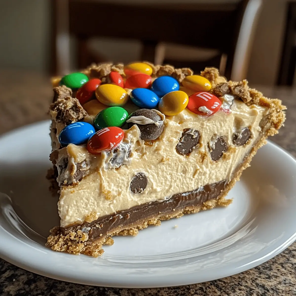 As I whisked together the smooth cream cheese and rich peanut butter, the kitchen quickly filled with a warm, inviting aroma that felt like a big, cozy hug. This Monster Cookie Peanut Butter Cheesecake Pie isn’t just a dessert; it’s a whimsical celebration on a plate! Imagine your friends and family gathered around, their eyes lighting up as they see the vibrant colors of mini M&Ms scattered across layers of creamy cheesecake and crunchy monster cookie pieces. Not only is this pie a visual delight, but it’s also undeniably simple to make and a guaranteed crowd-pleaser at any gathering. Whether it’s a birthday bash or a casual family dinner, this pie is bound to steal the show! So, are you ready to create this delicious masterpiece and make memories that taste as sweet as they feel? Why Is This Pie So Irresistible? Decadent Layers: The combination of creamy peanut butter cheesecake and crunchy monster cookies creates an unforgettable flavor explosion. Visually Stunning: Vibrant mini M&Ms scattered on top not only add color but also a pop of sweetness that delights the senses. Simplicity at Its Best: With just a handful of ingredients, this recipe promises a straightforward process that even beginner bakers can tackle with ease. Crowd Favorite: Perfect for parties, family gatherings, or just because—it’s a guaranteed showstopper that will leave everyone asking for seconds. Make-Ahead Magic: It’s easy to prep in advance, making this a time-saving treat you can whip up the day before your event without any fuss! Pair this with other delightful recipes like Biscoff Cheesecake Bake or an indulgent Vegan Mango Cheesecake to impress your guests even more! Monster Cookie Peanut Butter Cheesecake Pie Ingredients For the Pie Crust • Pie Crust – Choose store-bought for convenience or make your own for a fresh touch. For the Cheesecake Filling • Cream Cheese (8 oz) – Ensure cream cheese is softened to achieve a smooth and creamy texture. • Peanut Butter (1 cup) – Smooth peanut butter enhances the consistency; chunky adds delightful crunch. • Powdered Sugar (1 cup) – Adjust to your taste preference for sweetness; more sugar for a richer flavor. • Whipped Cream (1/2 cup) – Fold in gently to maintain a light, fluffy filling. For the Toppings • Monster Cookies (1-2 cups crushed) – Use either homemade or store-bought cookies for delightful texture and flavor. • Chocolate Chips (1/2 cup) – Dark or semi-sweet chocolate adds a rich, indulgent touch. • Mini M&Ms (1/2 cup) – Optional but fun; they brighten the pie and add extra sweetness for that Monster Cookie Peanut Butter Cheesecake Pie charm! Step‑by‑Step Instructions for Monster Cookie Peanut Butter Cheesecake Pie Step 1: Preheat the Oven Begin by preheating your oven to 350°F (175°C). This step is crucial for achieving the perfect texture for your pie. While the oven heats, gather your ingredients to make the process smoother. The inviting smell of baking is just around the corner! Step 2: Prepare the Pie Crust Next, take your pie crust and place it into a pie dish. If you’re using a store-bought crust, ensure it’s pressed firmly against the sides for support. If you’re making it from scratch, allow it to cool slightly after baking to set your foundation for the Monster Cookie Peanut Butter Cheesecake Pie. Step 3: Blend the Filling In a mixing bowl, combine 8 ounces of softened cream cheese, 1 cup of peanut butter, and 1 cup of powdered sugar. Using an electric mixer, blend until the mixture is silky smooth and free of lumps, about 2-3 minutes. This forms the delicious backbone of your cheesecake filling, ready to impress! Step 4: Fold in Whipped Cream Gently fold in ½ cup of whipped cream into your creamy peanut butter mixture. Take care to maintain the light and fluffy texture by avoiding vigorous stirring. This helps create that luscious consistency that makes the Monster Cookie Peanut Butter Cheesecake Pie so delightful. Step 5: Spread the Filling Once combined, evenly pour the filling into your prepared pie crust. Use a spatula to smooth the top for a perfect finish. Make sure the filling reaches all corners of the crust, ensuring every bite is filled with that creamy, peanut buttery goodness! Step 6: Add the Toppings Take your crushed monster cookies and sprinkle them generously over the cheesecake layer. Follow this with a sprinkle of chocolate chips and ½ cup of mini M&Ms to add color and fun. These toppings provide a delightful crunch that complements the pie’s creamy core beautifully. Step 7: Bake the Pie Place the prepared pie into the preheated oven and bake for about 25 minutes. You’ll know it’s done when the center is slightly jiggly but the edges are set. This helps achieve the perfect balance of creaminess and firmness for your Monster Cookie Peanut Butter Cheesecake Pie. Step 8: Cool and Chill Remove the pie from the oven and let it cool on the countertop. Once cooled to room temperature, refrigerate the pie for at least a few hours, or ideally overnight. Chilling allows the flavors to meld together beautifully, enhancing your dessert’s overall taste and texture. What to Serve with Monster Cookie Peanut Butter Cheesecake Pie To elevate your dessert experience, consider pairing this pie with complementary flavors and textures that delight the senses. Fresh Berries: Their juicy tartness cuts through the richness of the pie, adding a refreshing contrast that brightens each bite. Think strawberries, raspberries, or blueberries to create a colorful accompaniment. Vanilla Ice Cream: Creamy and smooth, a scoop of vanilla ice cream melts beautifully alongside the warm cheesecakes, enhancing the dessert’s indulgence. It’s a classic match that never fails to please! Chocolate Sauce: Drizzling a rich chocolate sauce over each slice adds an extra layer of sweetness and decadence. The combination of chocolate and peanut butter is simply irresistible. Caramel Drizzle: A warm caram