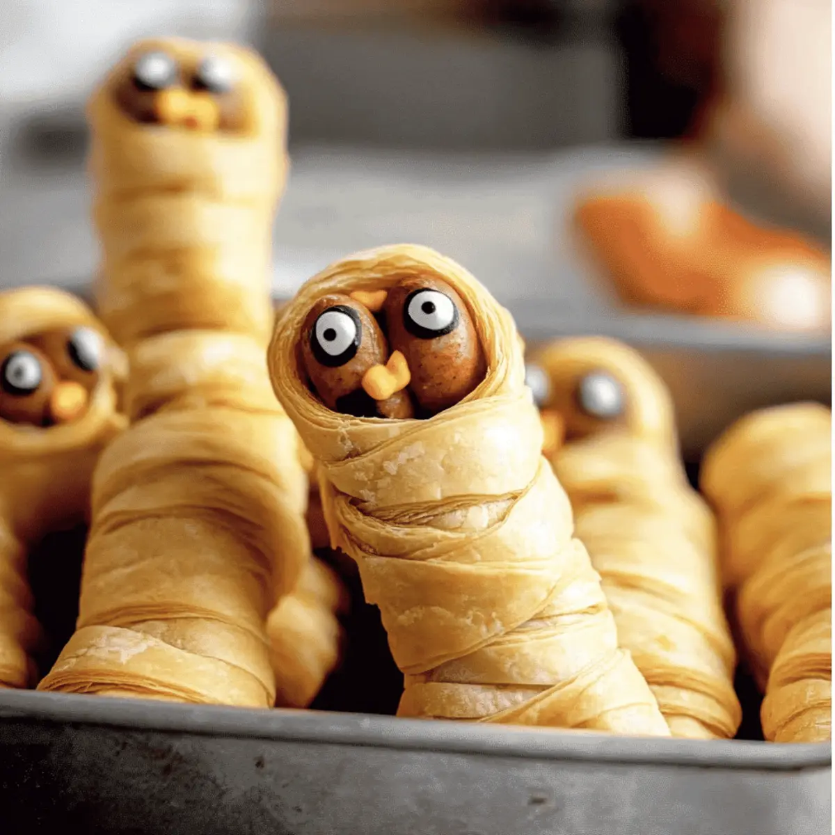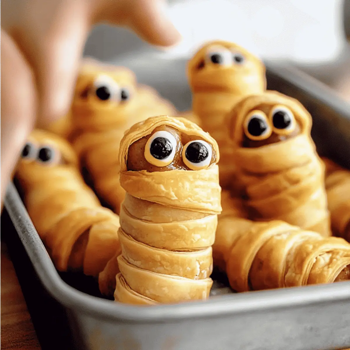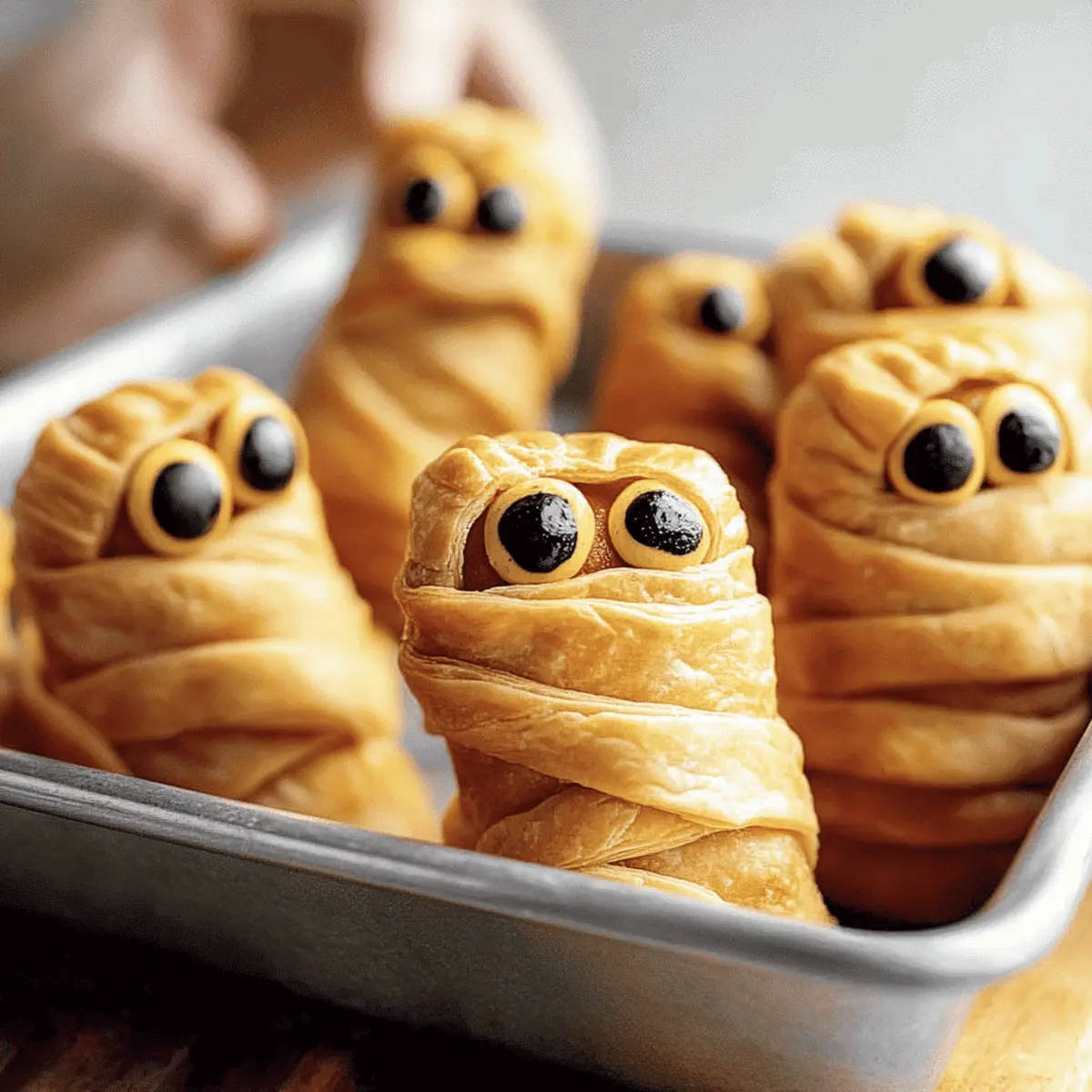 As the sun sets and Halloween creeps closer, the call for spooky snacks beckons from the kitchen. Enter my Spooky Mummy Pigs in a Blanket—these delightful bites are as fun to make as they are to eat! With flaky puff pastry wrapping around savory vegetarian sausages, they’re a fantastic vegetarian-friendly option that pleases everyone at your Halloween gathering. What’s even better? You can whip them up in just under 30 minutes! These treats combine a playful twist with easy preparation, making them the perfect addition to your festive spread. Will you take a chance on adding a little fright to your menu this season? Why Are Mummy Pigs So Amazing? Irresistibly Fun: The whimsical presentation of Mummy Pigs in a Blanket adds a playful touch to any Halloween gathering, turning ordinary snack time into a thrilling treat. Quick & Easy: With just a few simple steps and under 30 minutes to prepare, you can create a memorable appetizer that won’t keep you in the kitchen all night. Vegetarian-Friendly: By using vegetarian sausages, this recipe caters to all guests, ensuring everyone can enjoy these spooky delights without compromising on flavor. Customizable Creativity: Feel free to decorate these mummies with assorted condiments or swap in your favorite sausage—each bite is a canvas for your culinary creativity! Crowd-Pleasing Appeal: Perfectly flaky and crispy, these snacks are bound to impress both kids and adults alike, making them a go-to dish for any Halloween celebration. Mummy Pigs in a Blanket Ingredients For the Mummy Wrapping • Vegetarian Sausages – These provide a savory filling and can be replaced with meat options or other plant-based alternatives if desired. • Puff Pastry Sheets – Ensure these are thawed before use for easy handling and a crispy texture. For the Decor • Mustard (for eyes) – Adds a tangy contrast while also visually enhancing your mummies; alternatively, use ketchup or mayonnaise for a different flavor. Step‑by‑Step Instructions for Mummy Pigs in a Blanket Step 1: Preheat the Oven Begin by preheating your oven to 400°F (200°C). This will ensure your Mummy Pigs in a Blanket bake evenly and turn golden brown. While the oven heats up, gather your baking sheet, parchment paper, and all necessary ingredients. Make sure you have enough workspace to roll out your puff pastry for this delightful Halloween snack. Step 2: Prepare the Puff Pastry Once your oven is preheated, roll out the thawed puff pastry on a lightly floured surface. Aim for about 1/8-inch thickness to ensure a flaky texture. Use a sharp knife or pizza cutter to slice the pastry into 1-inch wide strips. This will prepare the perfect wrap for your savory vegetarian sausages, adding that fun, mummy-like aesthetic. Step 3: Wrap the Sausages Take a vegetarian sausage and place it at one end of a pastry strip. Begin wrapping the strip around the sausage in a spiral motion, leaving space at each end for the “eyes.” The pastry should overlap slightly to create that classic mummy look. Repeat this process for each sausage, making sure to keep them neatly arranged for baking. Step 4: Arrange on Baking Sheet Line a baking sheet with parchment paper to prevent sticking. Carefully place your wrapped Mummy Pigs in a Blanket on the sheet, ensuring they have a little space between them for even cooking. This step is crucial for getting that perfect golden, flaky crust without overcrowding your treats. Step 5: Bake for Perfection Once arranged, pop the baking sheet into your preheated oven and bake for approximately 14 minutes. You’ll know they are ready when the pastry is golden brown and puffed up. Keep an eye on them, as baking times can vary slightly depending on your oven’s efficiency—don’t overbake to maintain that lovely texture! Step 6: Add the Finishing Touches After removing the baking sheet from the oven, allow the Mummy Pigs in a Blanket to cool for a few minutes. Use a toothpick or a small squeeze bottle to dot mustard or your chosen condiment onto each “mummy” for eyes. This playful detail really brings your spooky snacks to life, adding a festive touch to your Halloween gathering! Mummy Pigs in a Blanket Variations Invite a dash of creativity into your kitchen and make these delicious Mummy Pigs in a Blanket your own! Spicy Sausage: Swap in spicy vegetarian sausages for a delicious kick. The extra heat enhances the flavor and adds excitement to every bite. Cheesy Surprise: Add a thin slice of cheese inside the pastry wrap for unexpected melted goodness. This creamy addition takes the savory experience up a notch! Herb Infusion: Sprinkle fresh herbs like dill or rosemary into your sausage mix for an aromatic twist. The fragrant notes will elevate your spooky snack to an entirely new level. Sweet & Savory: Try apple slices inside the wrap for a delightful contrast to the savory sausage. The sweetness complements the flaky crust perfectly, creating a fun flavor explosion. Condiment Variety: Use different dips, such as sriracha or ranch dressing, instead of mustard for the eyes. These options create a unique twist that will enthrall all your party guests! Gluten-Free Option: Substitute puff pastry with gluten-free dough for a friendly alternative that everyone can enjoy. Just ensure it holds up well during baking. Vegetable Power: For a veggie-packed version, add grated zucchini or carrots to the sausage filling. This sneaky addition not only boosts nutrition but also adds extra moisture and flavor! Tiny Treats: Miniature the mummies by using bite-sized hot dog pieces for a fun finger food option. They’re perfect for parties and keep the festive spirit alive! Feel free to mix and match these variations, and don’t hesitate to explore more delightful ideas. Take a look at creative condiment ideas for extra inspiration! What to Serve with Mummy Pigs in a Blanket? Elevate your Halloween feast with delightful sides and treats that complement these playful snacks, creating