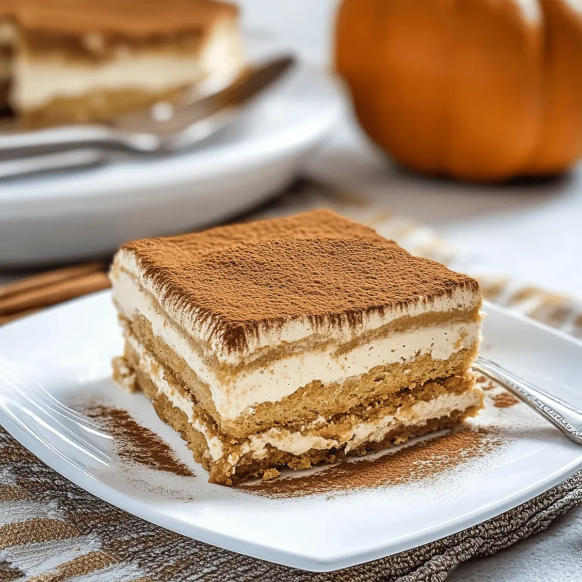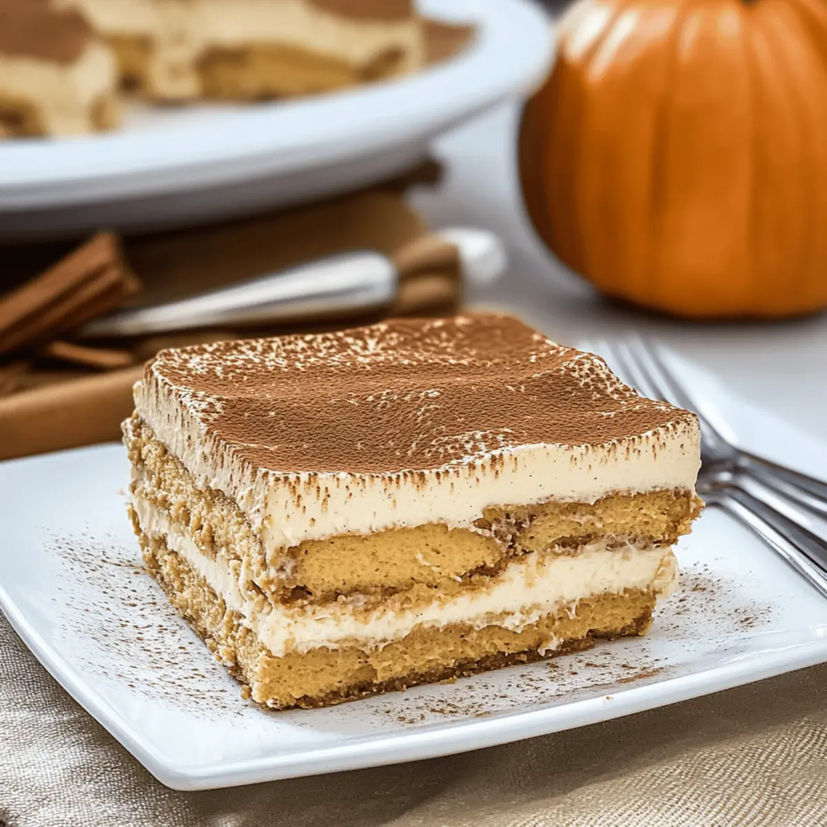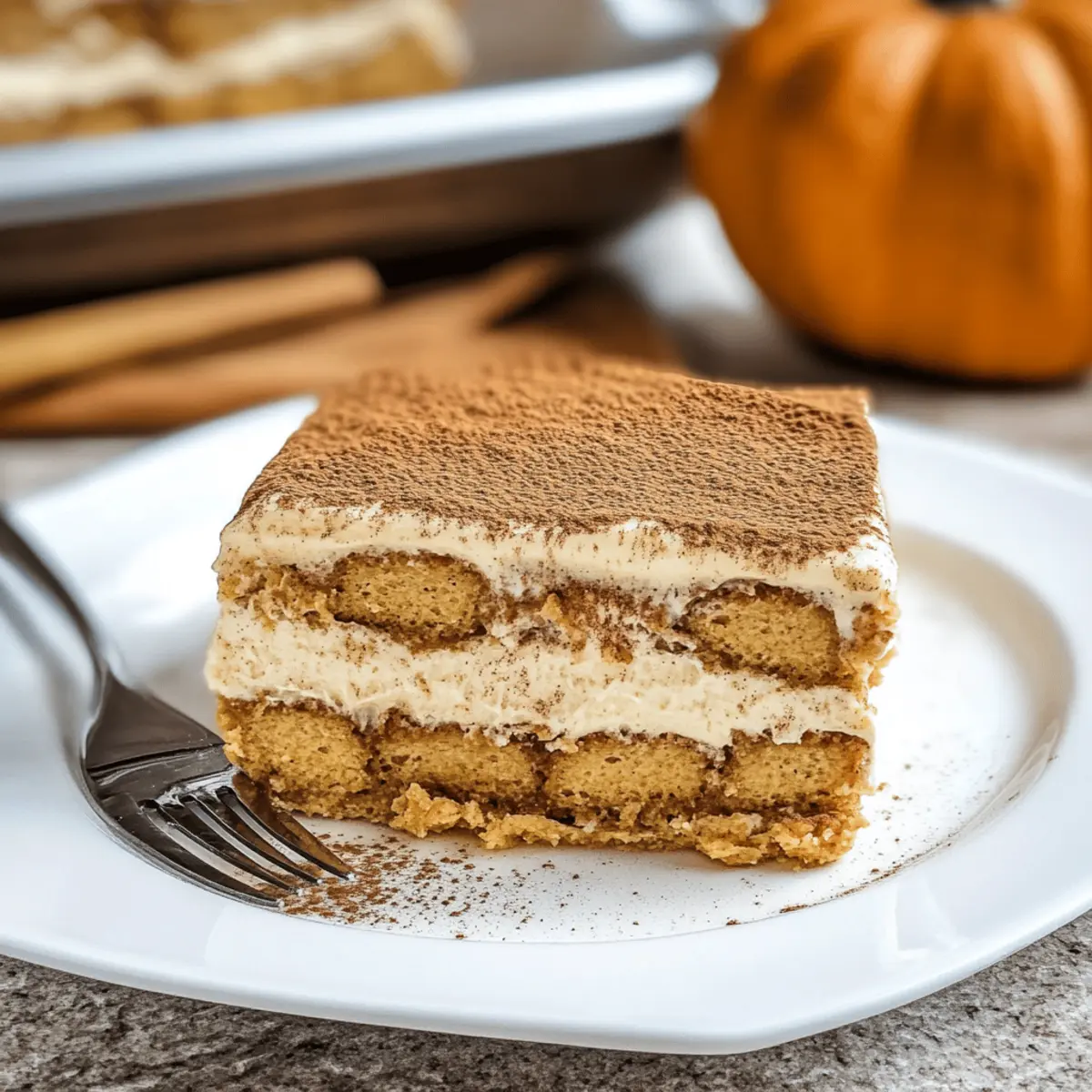 As I stood in my kitchen, the familiar aroma of fall spices beckoned me to create something special. This No-Bake Pumpkin Tiramisu is the kind of dessert that embodies the warmth of autumn gatherings, blending creamy mascarpone and rich pumpkin with the spiced notes of pumpkin pie. It brings the festive spirit to any Thanksgiving table without requiring hours of baking—just the experience of layering your ingredients. The beauty of this no-bake dessert lies in its effortless preparation, perfect for those of us seeking a delightful treat that won’t keep us chained to the oven. Trust me, your guests will be amazed at how a classic Italian dessert transforms into a seasonal delight that melts in your mouth. Are you ready to impress your friends and family with this comforting treat? Why is No Bake Pumpkin Tiramisu a Must-Try? Unexpected Delight: This No-Bake Pumpkin Tiramisu is a refreshing twist on a classic dessert, combining the beloved flavors of pumpkin and creamy mascarpone without the need for baking. Effortless Preparation: With simple steps, you can create an impressive dessert that’s perfect for gatherings or cozy evenings at home. Warm Spices: The warm notes of pumpkin pie spice add a seasonal flair that will transport your taste buds straight to autumn. Crowd Pleaser: Whether you’re hosting a Thanksgiving feast or a casual gathering, this treat will surely wow your guests and have them coming back for seconds! Make Ahead Magic: Prepare it a day in advance to allow the flavors to meld seamlessly—saving you time and stress on the day of your event. Feeling adventurous? Try pairing it with a dash of whipped cream or some chocolate shavings to elevate your presentation. For more fall-inspired no-bake desserts, don’t forget to check out my Biscoff Cheesecake Bake or No-Bake Oreo Cheesecake for delightful variations! No Bake Pumpkin Tiramisu Ingredients • Get ready to wow your guests with this festive fall treat! For the Cream Mixture Whipping Cream – Provides a light, airy texture crucial for the dessert’s fluffiness; use heavy cream for the best results. Mascarpone Cheese – Adds a rich, creamy texture; cream cheese can be substituted if needed, but the flavor will differ slightly. Powdered Sugar – Sweetens the filling while keeping it smooth; granulated sugar can be used, but may create a grainy texture. Instant Coffee Granules – Infuses a mild coffee flavor essential for authenticity; adjust to your taste or omit for a coffee-free version. Pumpkin Puree – The key flavor ingredient ensuring a prominent pumpkin taste; always use canned pumpkin puree, not pie filling. Pumpkin Pie Spice – Provides warmth and aromatic complexity; can be replaced with a mix of cinnamon, nutmeg, and ginger. Vanilla Extract – Enhances flavors in the cream mixture; opt for pure vanilla extract for the best flavor. For the Ladyfingers Strong Coffee – Soaks the ladyfingers to add moisture and richness; fresh-brewed coffee or espresso works best. Ladyfinger Cookies – Provides structure; must be soaked briefly in coffee; substitute with sponge cake if ladyfingers are hard to find. For Garnish Cinnamon – For garnish, adds visual appeal and a hint of spice to finish off your no bake pumpkin tiramisu beautifully. Enjoy the process of creating this delightful No Bake Pumpkin Tiramisu, and watch as your family and friends swoon over every luscious bite! Step‑by‑Step Instructions for No Bake Pumpkin Tiramisu Step 1: Whip the Cream Begin by pouring the heavy whipping cream into a large mixing bowl. Using an electric mixer, beat on medium-high speed for about 3-5 minutes until stiff peaks form and the cream is fluffy. This creates the airy texture essential for your no bake pumpkin tiramisu. Once ready, gently set the whipped cream aside, ensuring it remains light and fluffy. Step 2: Mix the Cream Cheese In another bowl, combine the mascarpone cheese, powdered sugar, and instant coffee granules. Use a spatula or wooden spoon to blend these ingredients together until they form a smooth mixture, about 2-3 minutes of mixing. This step is crucial for achieving the creamy base of your pumpkin tiramisu, so be sure to mix until fully integrated. Step 3: Add Pumpkin and Spices Now, it’s time to introduce the star ingredient! Gently fold in the pumpkin puree, pumpkin pie spice, and vanilla extract into the cream cheese mixture. Blend until fully combined, ensuring the pumpkin’s vibrant orange hue is evenly distributed throughout. This aromatic mixture will form the flavorful filling, ensuring each layer of your no bake pumpkin tiramisu is irresistible. Step 4: Fold in Whipped Cream Carefully incorporate the prepared whipped cream into the pumpkin mixture. Using a spatula, gently fold the whipped cream until no white streaks remain. This lightens the mixture, ensuring every bite of your no bake pumpkin tiramisu is airy and decadent. Take your time with this step to maintain the delicate texture you’ve created. Step 5: Prepare Ladyfingers In a shallow dish, brew a strong cup of coffee and allow it to cool slightly. Briefly dip each ladyfinger into the coffee, making sure to soak them for just 1-2 seconds—too long and they’ll become soggy! Begin layering the soaked ladyfingers in a 9×13-inch baking dish. This step sets the foundation for your delicious dessert. Step 6: Layer the Mixture Spread half of the pumpkin cream mixture over the first layer of ladyfingers. Use a spatula to smooth it evenly. Next, repeat the process by dipping more ladyfingers into the coffee and layering them on top of the cream. Finish by spreading the remaining pumpkin mixture over the last layer of ladyfingers, creating a beautiful, creamy finish on your no bake pumpkin tiramisu. Step 7: Chill Cover the baking dish with plastic wrap or aluminum foil and place it in the refrigerator. Allow it to chill for at least 6 hours, or ideally overnight. This chilling time is critical, as it allows the flavors to 