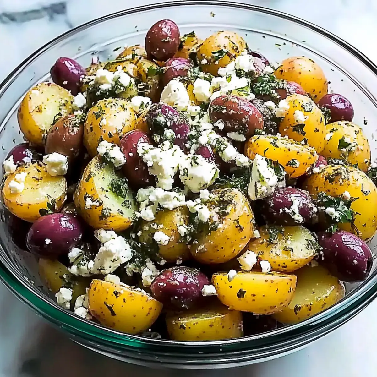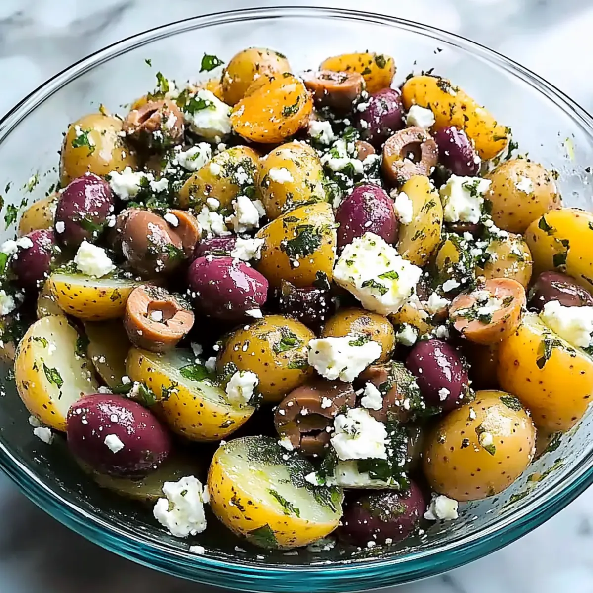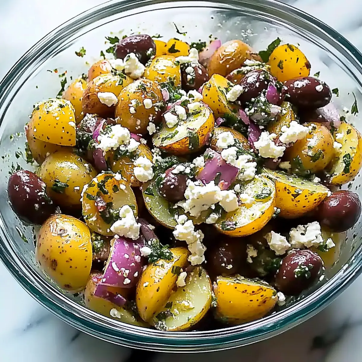Facebook Twitter Pinterest LinkedInUnderneath the sun-kissed skies of summer, I often find myself yearning for a dish that perfectly captures the essence of the Mediterranean: this Olive Greek Potato Salad. The beauty of this recipe lies in its simplicity, transforming humble potatoes into a vibrant, refreshing delight. With perfectly tender waxy potatoes, laced with fresh herbs and a zesty olive oil dressing, this comfort food not only pleases the palate but is also a breeze to prepare ahead of time. Toss in kalamata olives and crumbled feta, and you have a dish that elevates any barbecue or family gathering. It’s no wonder that this salad has become a staple in my kitchen! Are you ready to turn your cooking into an unforgettable experience? Let’s dive into the deliciousness! Why is this Greek Potato Salad a Must-Try? Comforting and Flavorful: This Greek potato salad showcases tender potatoes mingled with rich feta and savory kalamata olives, making it a fulfilling dish for any gathering. Make-Ahead Magic: Prepare it a day or two in advance for effortless entertaining. The flavors actually improve after they’ve had time to meld! Versatile Pairing: It complements grilled meats like chicken or lamb beautifully, making it a fantastic side for your summer barbecues. Vibrant and Colorful: With bright ingredients like fresh herbs and sun-dried tomatoes, it adds a delightful pop to your plate. Whether you’re looking for something to evoke Mediterranean flavors or simply a simple yet scrumptious side, this salad fits the bill! You might also love serving it alongside a refreshing Pineapple Cucumber Salad or a hearty Sweet Potato Casserole for a well-rounded meal. Olive Greek Potato Salad Ingredients This Olive Greek Potato Salad is a perfect blend of flavors and textures, ready to elevate any occasion! For the Salad Petite White or Red Potatoes – Choose waxy varieties to ensure the salad holds its structure after boiling. Kosher Salt – Enhances the flavor of the potatoes during boiling; adjust according to your taste preference. Pitted Kalamata Olives – A staple in Greek cuisine, these bring a salty brininess that complements the potatoes beautifully. Sun-Dried Tomatoes – Add a sweet and tangy note; ensure they’re well-drained and chopped for the best flavor. Capers – Provide a sharp tang; don’t forget to reserve the brine for an extra flavor boost! Red Onion – Offers a satisfying crunch and sweetness; slice it thinly for an even mix. Fresh Dill – Infuses a herbaceous freshness; parsley can be used as a lovely substitute if you prefer. Crumbled Feta Cheese – Adds creaminess and a tangy pop; sprinkle just before serving to keep it fresh. For the Dressing Extra-Virgin Olive Oil – Rich and fruity, this is essential to create the dressing base, adding depth to the salad. Red Wine Vinegar – Balances the dressing with a pleasant acidity, perfect alongside the rich olive oil. Garlic – Adds aromatic undertones; use minced or crushed for an extra flavor kick. Dry Mustard, Dried Thyme, Dried Oregano – These herbs bring earthiness and complexity to the dressing’s flavor profile. This Olive Greek Potato Salad is easy to whip up ahead of time, making it your go-to side dish for barbecues, potlucks, or family gatherings. Enjoy the fresh Mediterranean flavors that perfectly capture the joy of summer! Step‑by‑Step Instructions for Olive Greek Potato Salad Step 1: Boil Potatoes Begin by placing the petite white or red potatoes into a medium pot and covering them with cold water. Add a generous pinch of kosher salt to enhance their flavor. Bring the water to a rolling boil over high heat, then reduce the heat to a gentle simmer. Cook the potatoes for about 15 minutes, or until they are fork-tender but not falling apart. Step 2: Prepare Dressing While the potatoes cool, it’s time to whip up the dressing for your Olive Greek Potato Salad. In a jar with a tight-fitting lid, combine extra-virgin olive oil, red wine vinegar, minced garlic, dry mustard, dried thyme, and dried oregano with a pinch of salt and pepper. Seal the jar and shake vigorously until the mixture is emulsified and well combined, creating a harmonious dressing. Step 3: Cool and Cut Potatoes Once the potatoes are fork-tender, carefully drain them in a colander and let them cool for about 5–10 minutes. This cooling period makes them easier to handle. Cut the potatoes into halves or bite-sized chunks to enhance the salad’s texture. For added flavor, drizzle some reserved caper brine over the warm potatoes before mixing. Step 4: Combine Salad Ingredients In a large mixing bowl, gather the potatoes, pitted kalamata olives, chopped sun-dried tomatoes, capers, and thinly sliced red onion. Sprinkle in the fresh dill to add a burst of flavor. Pour the prepared dressing over this vibrant mixture and gently toss everything together to ensure each ingredient is coated generously in the delicious dressing. Step 5: Finish and Serve After combining the ingredients for your Olive Greek Potato Salad, taste and adjust the seasoning with additional salt or pepper as needed. Just before serving, sprinkle crumbled feta cheese over the salad to maintain its texture and creaminess. For optimal flavor, let the salad rest at room temperature or in the fridge for at least an hour, allowing the flavors to meld beautifully before serving. Expert Tips for Olive Greek Potato Salad Use Waxy Potatoes: Choose petite white or red waxy potatoes to ensure they hold their shape and provide a great texture in your Olive Greek Potato Salad. Cool Before Dressing: Allow the potatoes to cool for a few minutes before adding the dressing, preventing them from breaking apart and ensuring a better flavor fusion. Don’t Skip the Brine: Reserve some caper brine to add to the dressing; this gives an extra umami kick that enhances the overall flavor of your salad. Flavor Boosted Ahead: Make your Olive Greek Potato Salad at least an hour before servi