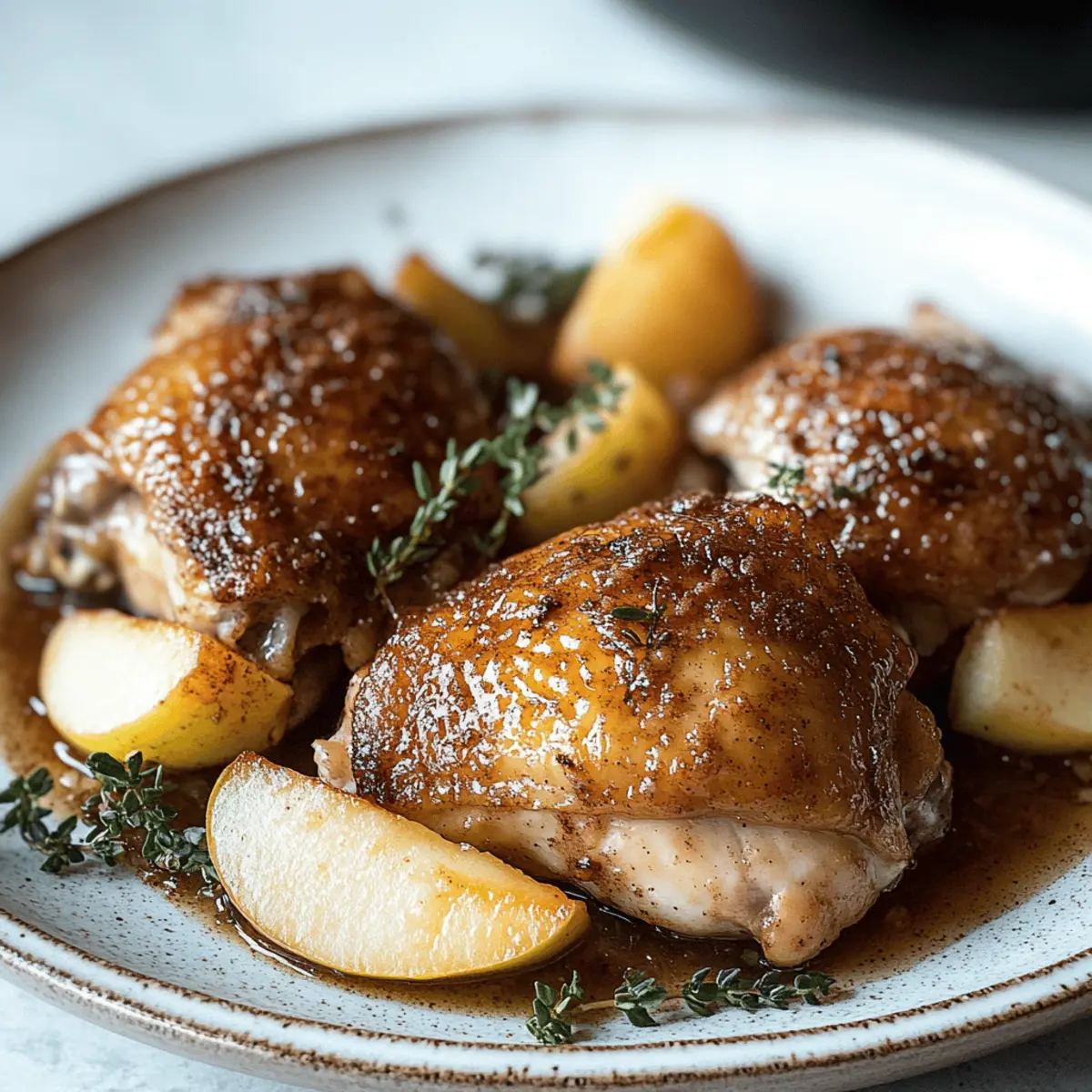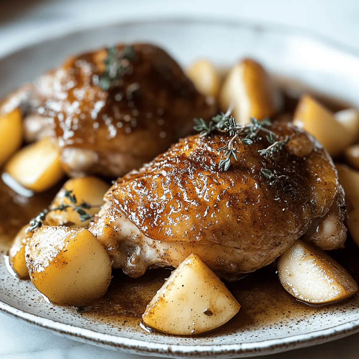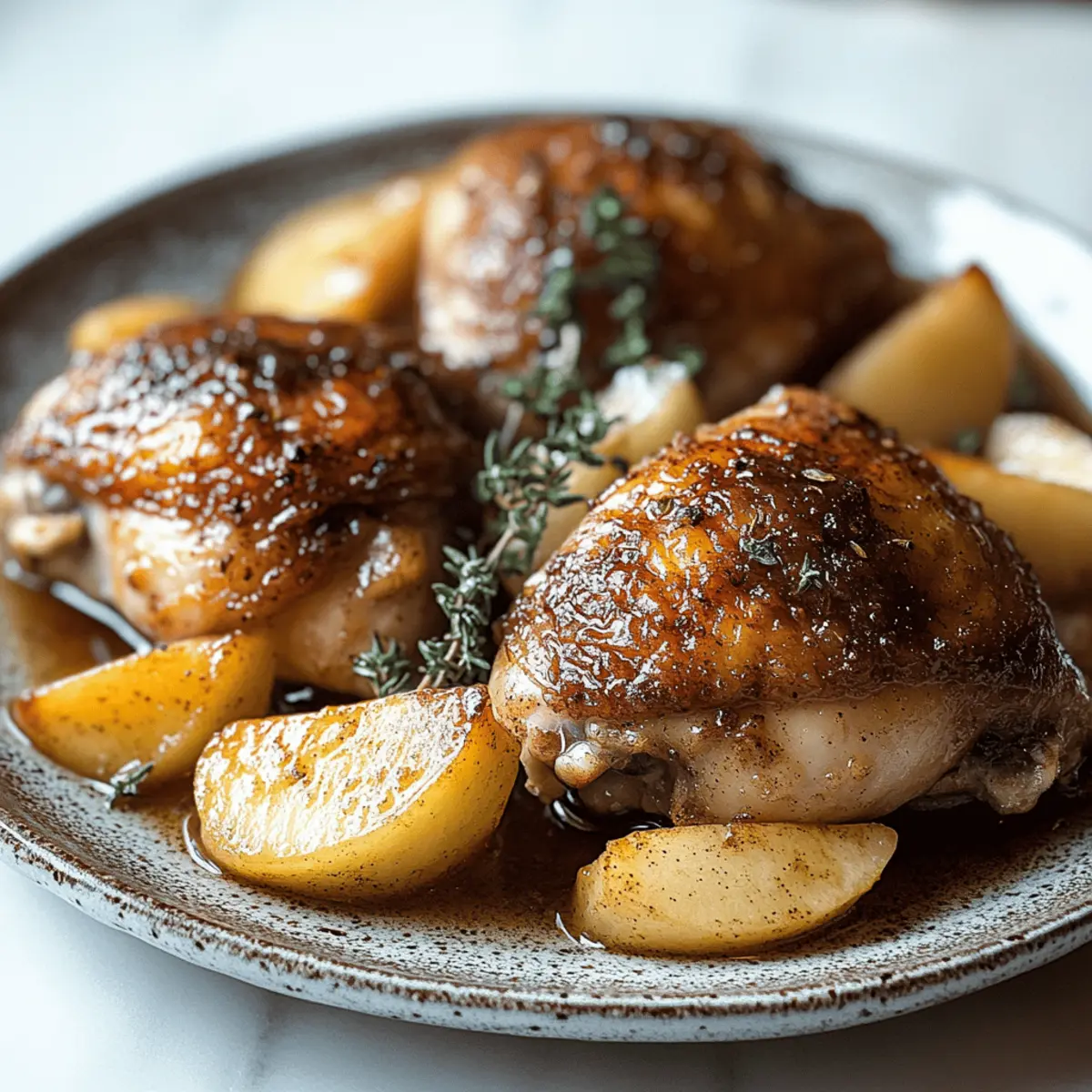 The crisp, golden leaves and the warm scent of spices tell you that fall has arrived, a season that invites us to create dishes brimming with comfort and coziness. I couldn’t resist sharing my One-Pan Autumn Harvest Chicken, where succulent chicken thighs meld perfectly with sweet caramelized apples and a hint of earthy cinnamon. What I adore about this simple fall recipe is its effortless charm—it’s perfect for busy weeknights yet makes a stunning centerpiece for weekend gatherings. With minimal cleanup involved, you can relish every moment spent in the kitchen rather than dreading the aftermath. Just picture the aroma filling your home, wrapping you in warmth. Are you ready to taste the essence of autumn? Why is One-Pan Cooking a Game Changer? Simplicity at its Best: With just one pan, you’ll streamline your cooking process, making it perfect for busy nights. Flavor Explosion: The juicy chicken, sweet apples, and warm spices create a delicious harmony that will leave everyone asking for seconds. Effortless Cleanup: No one enjoys a kitchen mess after a long day. This recipe means less time scrubbing and more time enjoying. Seasonal Delight: Embrace fall’s bounty with every bite, capturing the cozy essence of the season. Versatile Dish: Pair it with roasted Brussels sprouts or a fresh green salad for a complete meal. You can always mix things up by substituting the chicken with pork for a different flavor profile! Crowd-Pleasing: Whether it’s a weeknight dinner or a weekend gathering, this dish will surely impress your family and friends. One-Pan Autumn Harvest Chicken Ingredients For the Chicken • Bone-in Chicken Thighs – The main protein, skin-on or skinless to suit your preference for flavor and moisture. For the Flavor Base • Garlic – Minced to enhance the overall flavor; it distributes beautifully throughout the dish. • Ground Cinnamon – An essential spice that brings warmth and a seasonal touch to this one-pan autumn harvest chicken recipe. • Dried Thyme – Adds herbal notes; feel free to use fresh thyme for an even brighter result. For the Sweetness • Apples – Choose Fuji or Honeycrisp for sweetness and tartness that perfectly complements the savory elements. • Apple Cider – Provides a delightful sweetness and tang; opt for hard cider if you want an adult twist in flavor. For Cooking • Olive Oil – Ideal for cooking; substitute with vegetable oil if needed. • Salt & Pepper – Essential for seasoning; adjust according to your taste preference. Enjoy whipping up this cozy fall dish and delight in the melding of flavors and heartwarming aromas! Step‑by‑Step Instructions for One-Pan Autumn Harvest Chicken Step 1: Prep Chicken Begin by patting the bone-in chicken thighs dry with paper towels to remove excess moisture, ensuring a crisp skin. Season generously with salt, pepper, and dried thyme, coating each piece evenly. This seasoning will enhance the flavor profile of your One-Pan Autumn Harvest Chicken as it cooks to perfection. Step 2: Sear Chicken Heat 2 tablespoons of olive oil in a large skillet over medium-high heat. Once the oil is shimmering, carefully place the seasoned chicken thighs skin-side down in the skillet. Sear for 5–7 minutes, or until golden brown and crispy. Flip the chicken, allowing it to cook for an additional 5 minutes before removing it from the skillet and setting aside. Step 3: Cook Garlic In the same skillet, add another drizzle of olive oil if needed and reduce the heat to medium. Stir in the minced garlic and sauté for about 30 seconds, or until the garlic becomes fragrant and lightly golden. This step will infuse your dish with rich flavors that compliment the chicken and apples perfectly. Step 4: Prepare Apples Next, core and slice the apples into even wedges, aiming for about 1-inch thick pieces. Add the apple slices to the skillet alongside the sautéed garlic. Sprinkle in ground cinnamon, stirring gently to combine. Cook for about 5 minutes, or until the apples soften slightly and develop a beautiful golden hue. Step 5: Simmer Pour in 1 cup of apple cider, using a wooden spoon to scrape up any browned bits from the bottom of the skillet. This deglazing adds depth to the sauce. Bring the mixture to a gentle simmer over medium heat. Allow it to simmer for about 10 minutes, letting the flavors meld and the liquid reduce for a thicker consistency. Step 6: Combine Chicken Return the seared chicken to the skillet, nestling it among the caramelized apples. Cover the skillet with a lid and simmer on low heat for 10–15 minutes, or until the chicken is cooked through and reaches an internal temperature of 165°F (75°C). The chicken will absorb the delicious flavors while remaining juicy. Step 7: Finish Sauce Once the chicken is cooked, remove the lid and increase the heat slightly to allow the sauce to reduce further. Cook uncovered for 2–3 minutes, stirring occasionally, until the sauce becomes glossy and thickened to your liking. Taste and adjust the seasoning with salt and pepper if necessary for optimal flavor. Step 8: Serve To serve your One-Pan Autumn Harvest Chicken, gently spoon the caramelized apples and sauce over the chicken thighs. Garnish with a sprinkle of fresh thyme for an extra touch of flavor and visual appeal. Present it warm, inviting everyone to gather around the table and savor this cozy fall delight. Expert Tips for One-Pan Autumn Harvest Chicken Use Bone-in Thighs: This cut of chicken is ideal because it stays juicy and tender during cooking, ensuring your One-Pan Autumn Harvest Chicken is succulent. Preheat the Skillet: Ensure your skillet is hot enough before adding chicken. This will help achieve that golden sear and prevent sticking. Don’t Rush the Simmer: Allow the chicken and apples to simmer together thoroughly. This step infuses flavors and ensures the chicken reaches perfect doneness. Adjust the Cider: Tailor the sweetness! If you prefer a less sweet sauce, opt for less ap