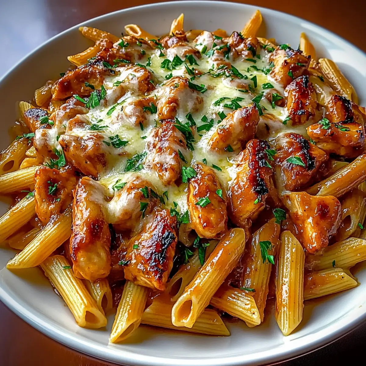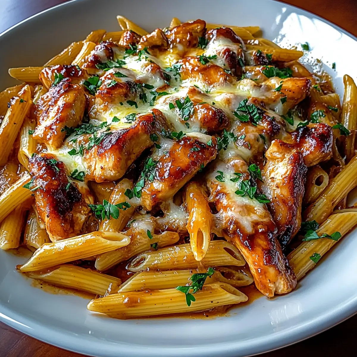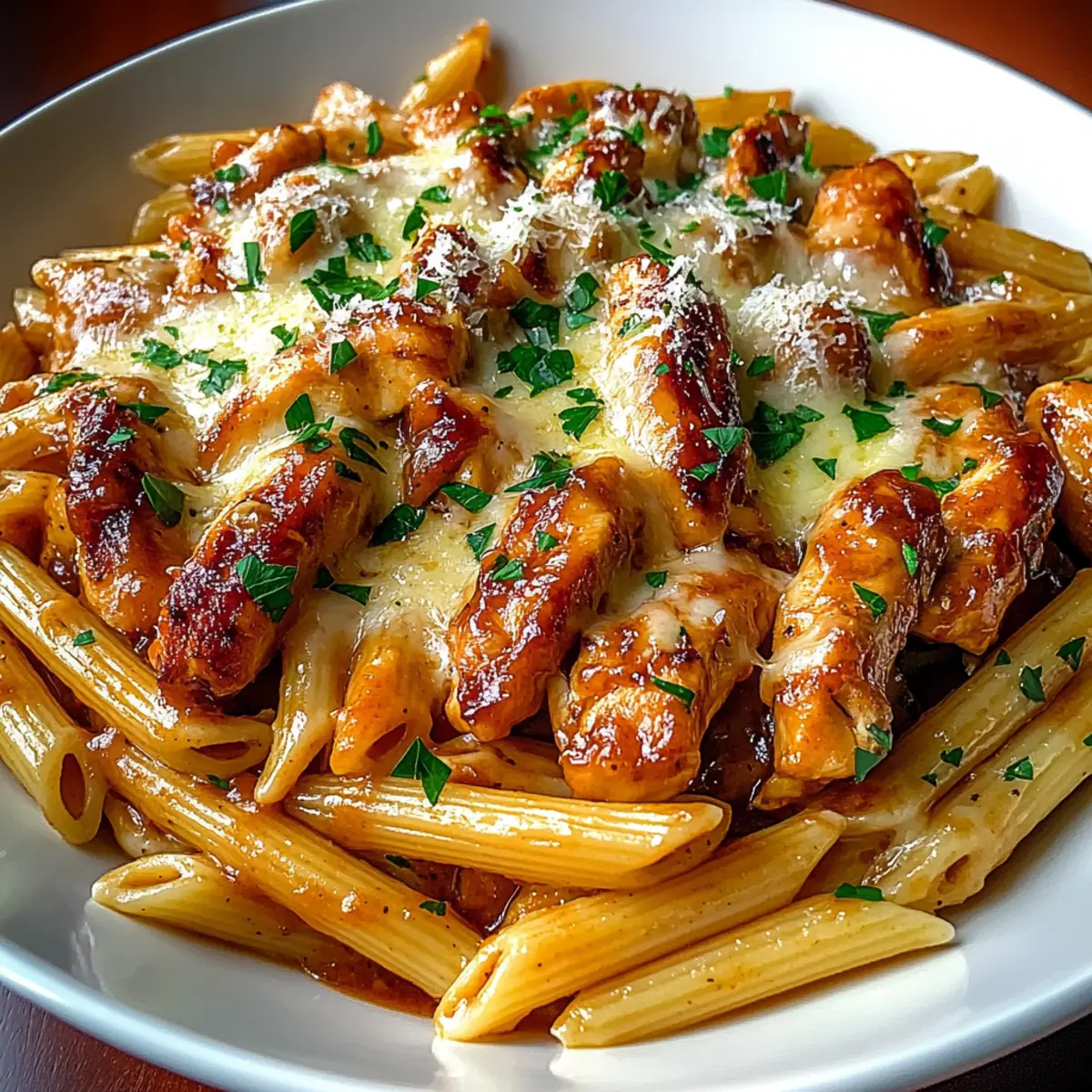 “This quick and easy One-Pan Tangy Honey BBQ Chicken Penne has transformed family dinners in my home. The harmonious blend of sweet honey and tangy BBQ sauce envelops tender chicken and perfectly cooked penne in a single skillet, making cleanup a breeze. In just 15 minutes of prep and 25 minutes of cooking, this comfort food delight satisfies even the pickiest eaters—ideal for weeknight meals or laid-back gatherings. Plus, it’s versatile enough to customize with your favorite veggies or cheese options. Ready to whip up a dinner that will have everyone asking for seconds? Let’s dive into this delicious recipe!” Why is One-Pan Cooking a Game-Changer? Convenience is key: With everything cooked in one pan, this recipe simplifies your cleanup routine, allowing you to enjoy more quality time. Flavor-packed goodness comes from the combination of honey and BBQ sauce, perfectly complementing the tender chicken. Customization options galore let you play with veggies or cheeses, ensuring it’s suitable for everyone. Quick preparation makes it ideal for busy weeknights, bringing a comforting meal to the table in just 40 minutes. Serve it with a fresh side salad or some garlic bread, and watch it become a family favorite! One-Pan Tangy Honey BBQ Chicken Penne Ingredients For the Chicken Boneless, Skinless Chicken Breasts – A juicy protein source; ensures tender bites that everyone will love. Substitute with turkey or tofu for a variation. Salt and Pepper – Essential seasonings; they enhance the chicken’s natural flavor without overpowering it. For the Sauce Olive Oil – A rich cooking fat; prevents chicken from sticking and adds depth. Can use vegetable oil or butter if preferred. BBQ Sauce – The smoky, sweet foundation; feel free to use your favorite brand or a homemade version. Honey – Sweetens the sauce and balances tang; thickens the mixture nicely. Maple syrup is a delightful alternative for a unique flavor. Apple Cider Vinegar – Adds necessary acidity to brighten the sauce; white wine vinegar can also work. Dijon Mustard – Introduces a sharp kick for added complexity; substitute with yellow mustard if needed. Garlic Powder – Infuses the dish with a savory depth; always a winner for flavor enhancement. Smoked Paprika – Lends a comforting smoky note; adds dimension and color to your dish. Regular paprika can work in a pinch but lacks the smokiness. For the Pasta Chicken Broth – Provides moisture for cooking the pasta; enhances the overall flavor. Vegetable broth is a great option for a vegetarian twist. Penne Pasta – Its hollow shape captures the sauce beautifully; cooks directly in the skillet for ultimate flavor infusion. Consider using rotini or fusilli and adjust cooking time accordingly. For the Toppings Mozzarella Cheese – Melts perfectly, creating a creamy topping; you can swap it for cheddar for a sharper taste. Parmesan Cheese – Adds nuttiness and saltiness; a crunchy finish makes the dish irresistible. Fresh Parsley – A vibrant garnish; elevates the dish with color and a fresh herbal kick. With these simple yet flavorful ingredients, your One-Pan Tangy Honey BBQ Chicken Penne will not only be delightful but also a quick dinner solution that brings everyone to the table! Step‑by‑Step Instructions for One-Pan Tangy Honey BBQ Chicken Penne Step 1: Season the Chicken Begin by seasoning 1 pound of boneless, skinless chicken breasts with salt and pepper to taste. Make sure each piece is evenly coated for maximum flavor. This step is essential for the One-Pan Tangy Honey BBQ Chicken Penne and will prepare the chicken to develop a delicious crust when cooked. Step 2: Brown the Chicken In a large skillet, heat 2 tablespoons of olive oil over medium-high heat. Once the oil is shimmering, add the seasoned chicken breasts and cook them for about 5–6 minutes on each side until they are golden brown and cooked through. Use a meat thermometer to ensure they reach an internal temperature of 165°F. Remove the chicken from the skillet and set it aside. Step 3: Make the Sauce In the same skillet, lower the heat slightly and add your favorite BBQ sauce along with 2 tablespoons of honey, 1 tablespoon of apple cider vinegar, 1 tablespoon of Dijon mustard, 1 teaspoon of garlic powder, and 1 teaspoon of smoked paprika. Stir these ingredients well and let them simmer for about 2–3 minutes until they are perfectly blended, filling your kitchen with a sweet and smoky aroma. Step 4: Cook the Pasta Next, pour in 2 cups of chicken broth and bring the mixture to a gentle boil. Once boiling, add 8 ounces of penne pasta to the skillet, stirring to ensure the pasta is fully submerged. Cover the skillet and reduce the heat to low, allowing it to simmer for 10–12 minutes. The penne should be tender and have absorbed all those delicious flavors from the sauce. Step 5: Combine Chicken and Sauce Now, return the cooked chicken to the skillet with the pasta. Stir gently to coat the chicken evenly in the sauce, cooking for an additional 2–3 minutes until the chicken is heated through and well-integrated. This step is crucial for achieving the rich, tangy flavor profile of the One-Pan Tangy Honey BBQ Chicken Penne. Step 6: Add the Cheese Sprinkle 1 cup of shredded mozzarella cheese and 1/2 cup of grated Parmesan cheese over the top of the pasta and chicken. Cover the skillet again and cook for another 2 minutes, or until the cheese is melted and bubbly. The gooey cheese will create a deliciously comforting topping that enhances the overall dish. Step 7: Garnish and Serve Finally, remove the skillet from heat and garnish your One-Pan Tangy Honey BBQ Chicken Penne with freshly chopped parsley for a pop of color and flavor. Serve this delightful dish straight from the pan, allowing your family to enjoy the comforting warmth while you relish in the joy of a homemade meal! Expert Tips for One-Pan Tangy Honey BBQ Chicken Penne Perfectly Browned Chicken: Ensure the chicken is browned