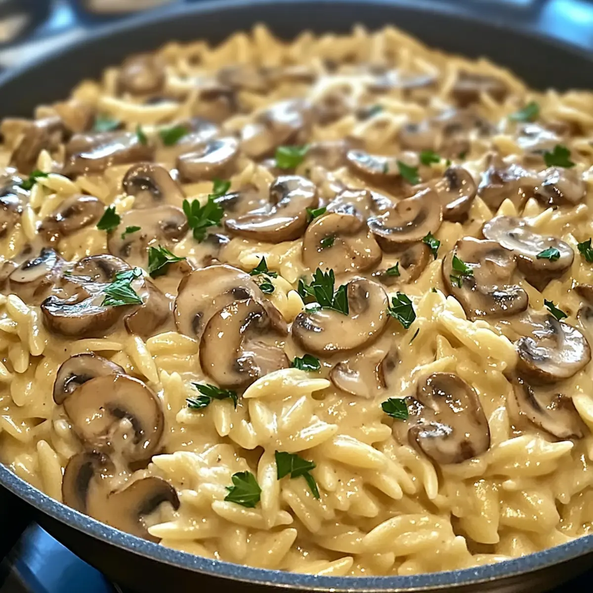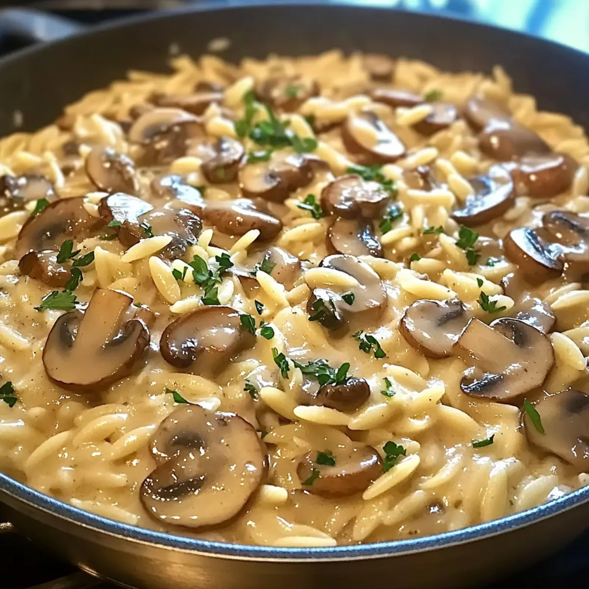 Facebook Twitter Pinterest LinkedInThe aroma of sautéed garlic and mushrooms wafting through my kitchen always brings back fond memories of cozy family dinners. Today, I’m thrilled to share my go-to recipe for One-Pot Creamy Mushroom Orzo, a dish that has become a comforting staple in our home. In just 30 minutes, you can whip up a creamy and delicious meal that is not only vegetarian but also incredibly easy to prepare. Imagine cutting down your cleanup time while creating a delightful dinner that everyone will love! This recipe is perfect for those bustling weeknights when you want a homemade touch without the fuss. Ready to dive into a bowl of comforting goodness? Let’s get cooking! Why is One-Pot Creamy Mushroom Orzo a Must-Try? Ease and Convenience: This recipe is designed for simplicity, allowing you to create a delicious meal in just 30 minutes with minimal cleanup. Rich, Creamy Texture: The combination of heavy cream and Parmesan cheese gives this orzo a luxurious feel that’s hard to resist. Versatile and Flavorful: The rich umami of mushrooms pairs beautifully with various vegetables. You can even customize it with spinach or peas for added nutrition. Perfect for Busy Weeknights: It’s the ultimate solution for quick dinners, so you can spend more time at the table and less time in the kitchen. Crowd-Pleasing Delight: Whether you’re serving the family or guests, this dish is sure to impress and keep everyone coming back for more, just like my Cajun Sausage Pasta or Chicken Alfredo Pasta. One-Pot Creamy Mushroom Orzo Ingredients For the Base Olive Oil – Perfect for sautéing; can be swapped with canola or avocado oil if needed. Onion – Adds sweetness and depth; leeks are a great milder substitute. Garlic – Infuses the dish with aromatic flavor; use garlic powder if you’re out of fresh. Mushrooms – Provides umami and texture; zucchini or bell peppers can be used as alternatives. For the Pasta Orzo Pasta – The main carbohydrate; ditalini or small shells work well as substitutes. Vegetable Broth – Essential for moisture and flavor; chicken broth is a good option for non-vegetarians. For the Creaminess Heavy Cream – Adds a rich, velvety texture; coconut milk can be a dairy-free alternative. Parmesan Cheese – Enhances savoriness; nutritional yeast is a fantastic vegan substitution. Seasoning and Garnish Salt and Pepper – Essential for flavor; always adjust to your taste. Fresh Parsley – Adds a pop of color and freshness; chives or basil can offer a different twist. With these ingredients gathered, you’re ready to create a delightful dish of One-Pot Creamy Mushroom Orzo that the whole family will enjoy! Step‑by‑Step Instructions for One-Pot Creamy Mushroom Orzo Step 1: Heat the Oil In a large pot, heat 2 tablespoons of olive oil over medium heat until it shimmers, signaling it’s ready. This should take about 1-2 minutes. Using a sturdy spoon, you’ll be ready to sauté, so keep it handy for the next steps in creating your comforting One-Pot Creamy Mushroom Orzo. Step 2: Sauté the Aromatics Add 1 diced onion and 2 minced garlic cloves to the pot. Sauté for 3-4 minutes, stirring occasionally, until the onion becomes translucent and fragrant. This step is crucial for building the aromatic base of your dish, setting the stage for the rich flavors that will follow. Step 3: Cook the Mushrooms Next, introduce 1 cup of sliced mushrooms to the pot, stirring well. Cook for about 5 minutes, until the mushrooms have softened and released their moisture, which enriches the savory flavor of your One-Pot Creamy Mushroom Orzo. The mixture should start to look irresistible! Step 4: Add the Orzo Stir in 1 cup of orzo pasta, ensuring it is evenly coated with the sautéed mixture. Pour in 2 cups of vegetable broth, bringing everything to a gentle boil. This process should take about 2-3 minutes, and the bubbling broth is a sign that it’s time to continue creating that creamy goodness. Step 5: Simmer the Orzo Once it reaches a boil, reduce the heat to low, cover the pot, and let it simmer for about 10 minutes. Stir occasionally to prevent sticking, until the orzo is tender and has absorbed most of the broth. You’ll know it’s done when the pasta is al dente and the dish is thickening nicely. Step 6: Incorporate the Cream Remove the pot from heat and gradually stir in 1 cup of heavy cream and ½ cup of grated Parmesan cheese. This will give your One-Pot Creamy Mushroom Orzo its signature creamy texture. Mix until everything is well combined and luscious, creating that delectable richness everyone will love. Step 7: Season and Serve Finally, season with salt and pepper to taste, adjusting as needed. For a fresh touch, garnish with chopped fresh parsley before serving. This comforting dish is best enjoyed warm, so scoop it into bowls and delight in the creamy, savory flavors of your homemade One-Pot Creamy Mushroom Orzo. One-Pot Creamy Mushroom Orzo Variations Customize your One-Pot Creamy Mushroom Orzo with these exciting twists to suit your taste and dietary needs! Dairy-Free: Substitute heavy cream with coconut milk for a rich and creamy vegan alternative. Your dish will still be luscious and satisfying! Extra Veggies: Add 1 cup of fresh spinach or frozen peas in the last few minutes of cooking. This will boost the nutritional value while adding a pop of color. Spicy Kick: Toss in some diced jalapeños when sautéing the onions for a fiery flavor that elevates the dish. This simple tweak can change everything! Different Grains: Switch out the orzo for quinoa or farro for a nutty flavor and a delightful change in texture. These grains align perfectly with the creaminess of the dish. Umami Explosion: Incorporate miso paste or tamari during cooking for an extra depth of flavor. This umami boost will transform your dish into a gourmet experience! Cheese Alternatives: Use vegan cream cheese and nutritional yeast instead of Parmesan for a creamy vegan version. This